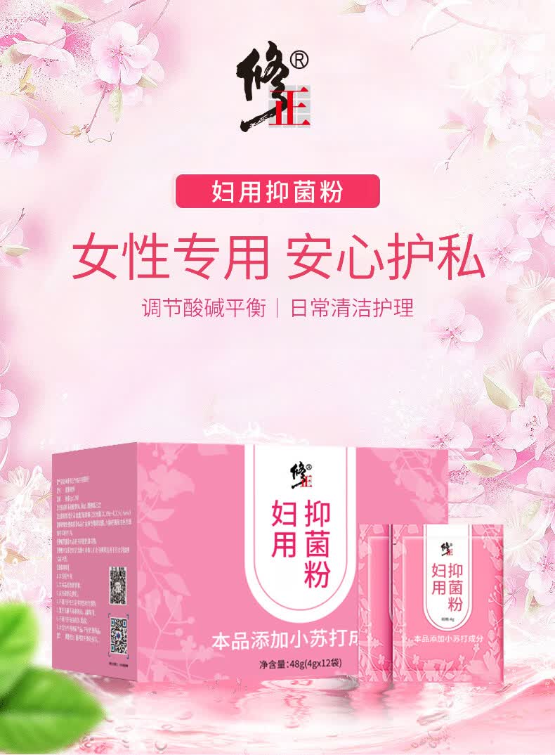 修正妇用抑菌粉【妇科】冲洗坐浴瘙痒异味妇用小苏打抑菌粉12袋/盒 2盒【妇用小苏打抑菌粉】 12袋/盒