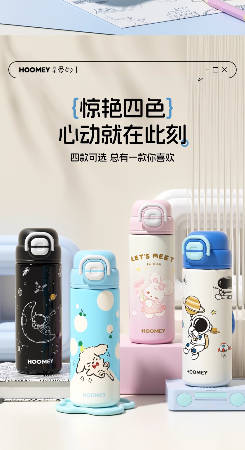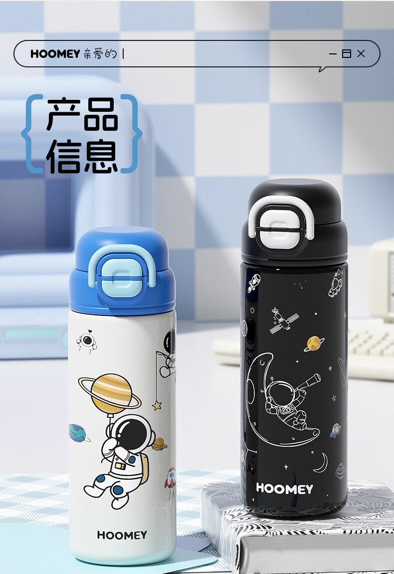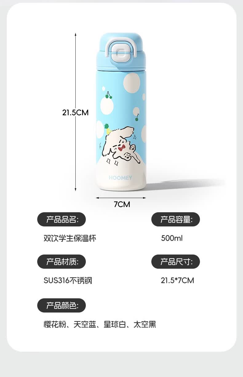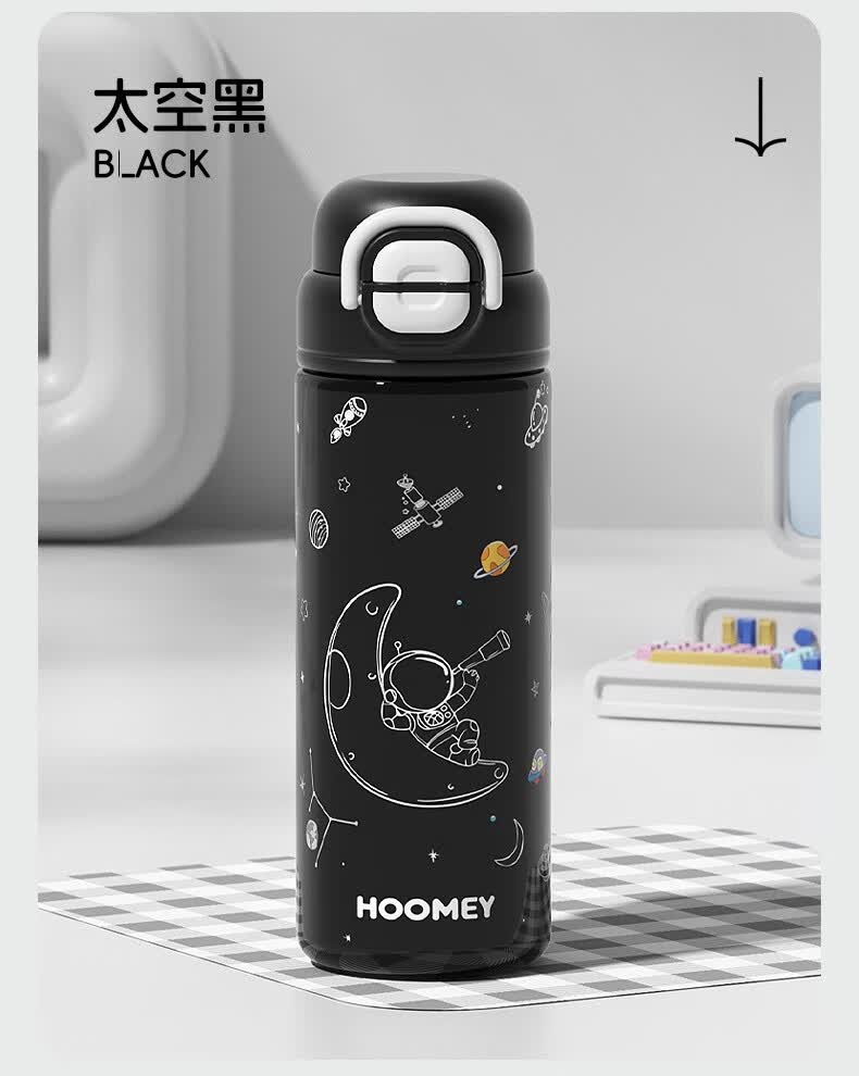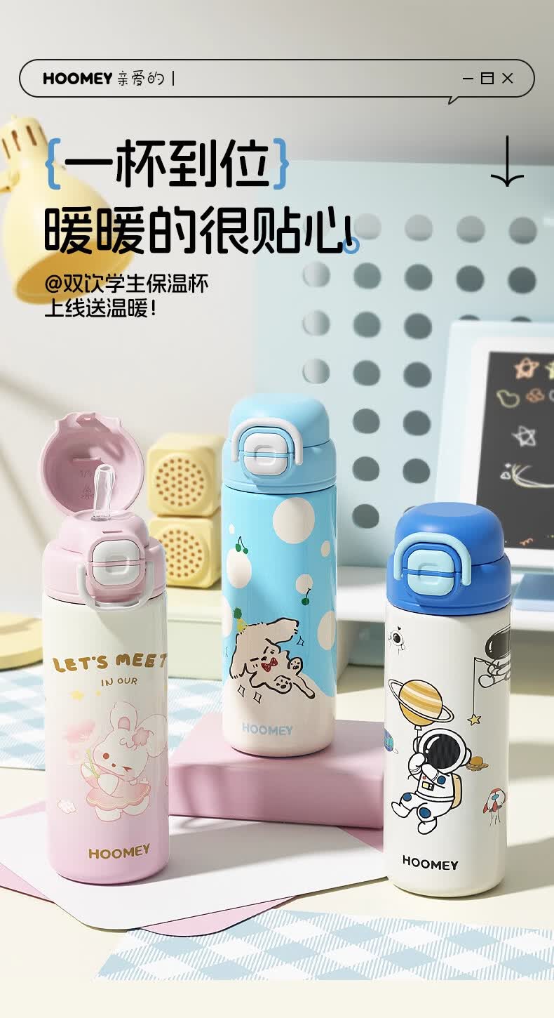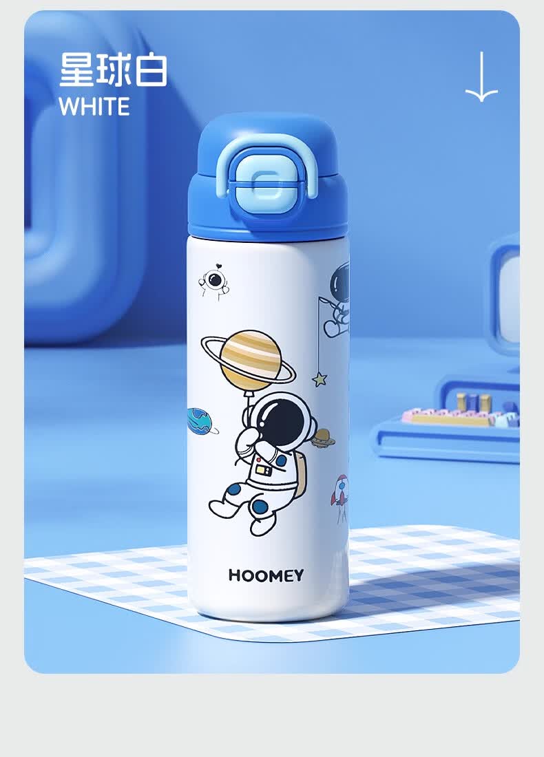 HOOMEY儿童保温杯小学生上学专用水杯男孩童2025新款吸管杯子水壶 【316不锈钢+提绳+吸管】星球白500ml