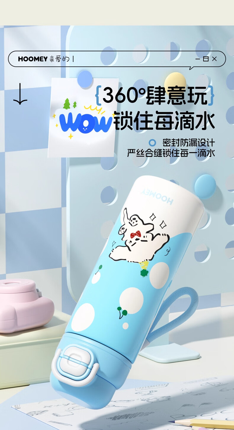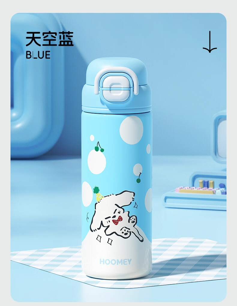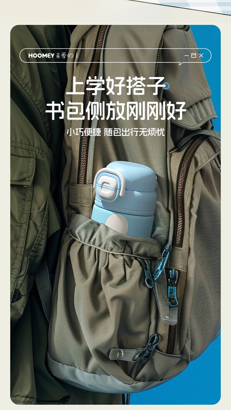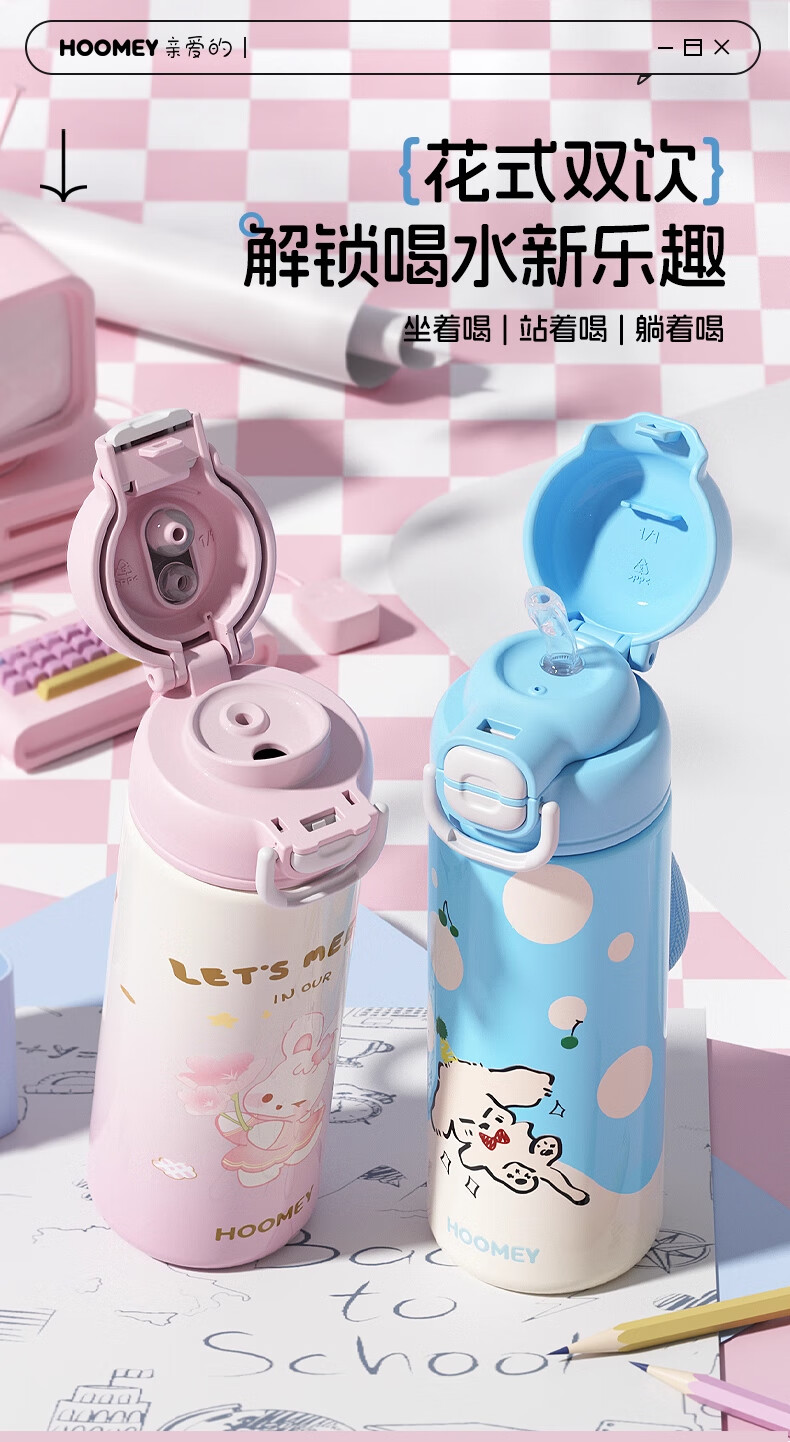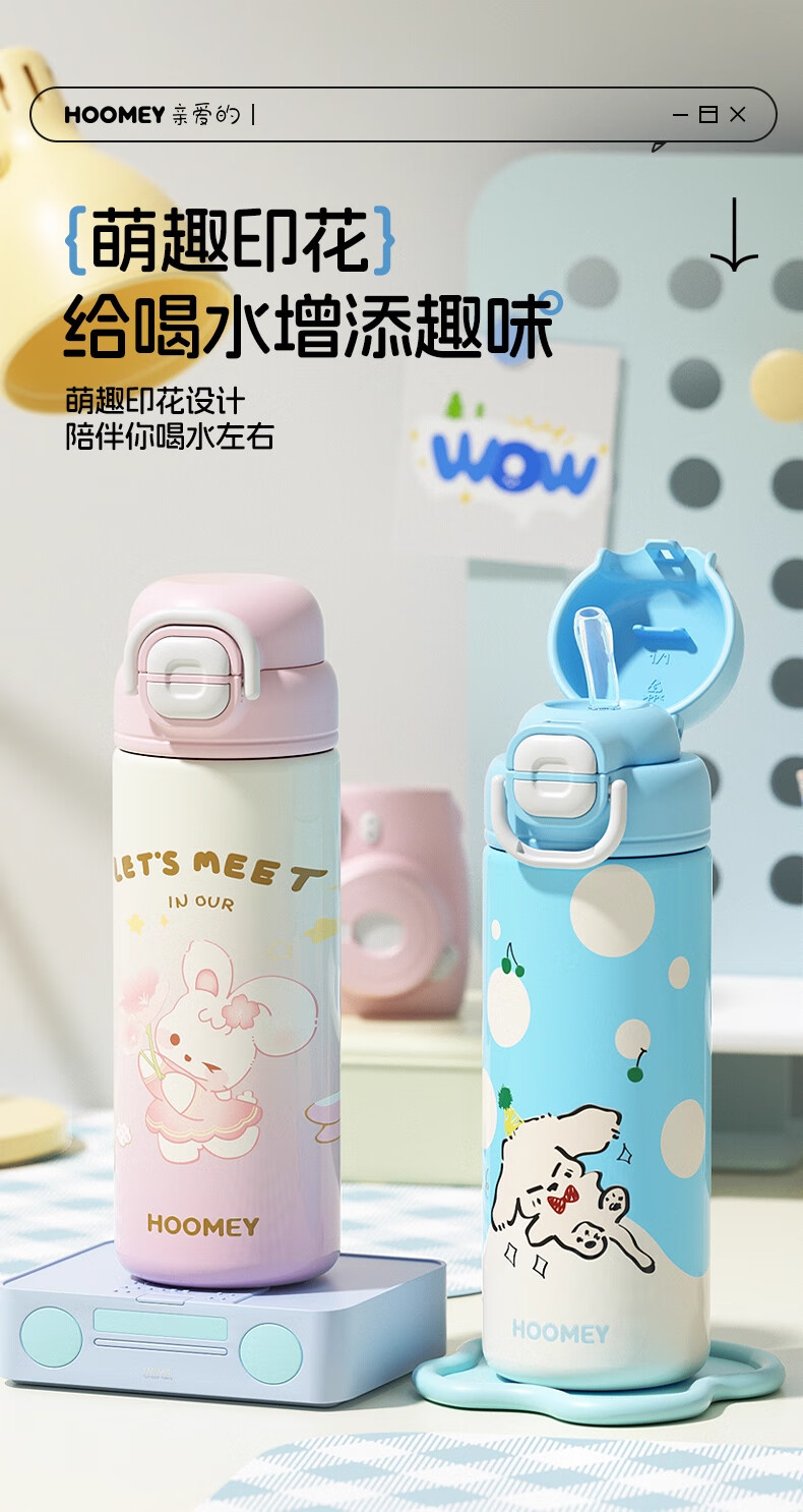 HOOMEY儿童保温杯小学生上学专用水杯男孩童2025新款吸管杯子水壶 【316不锈钢+提绳+吸管】星球白500ml