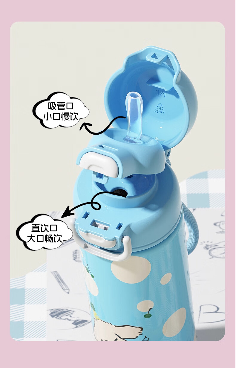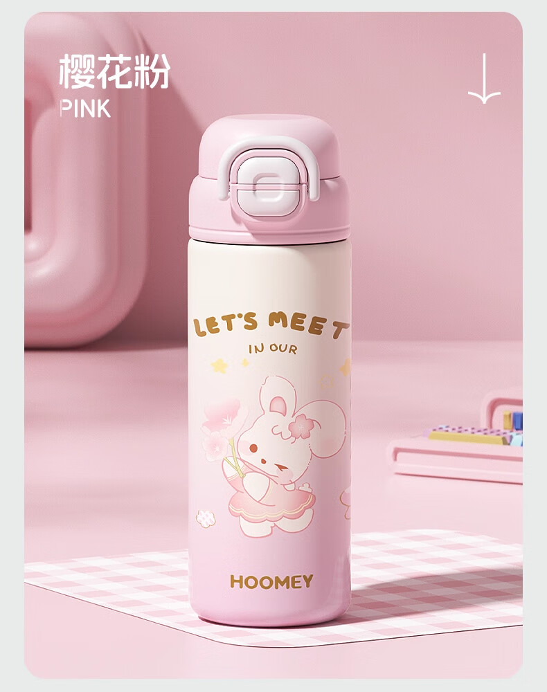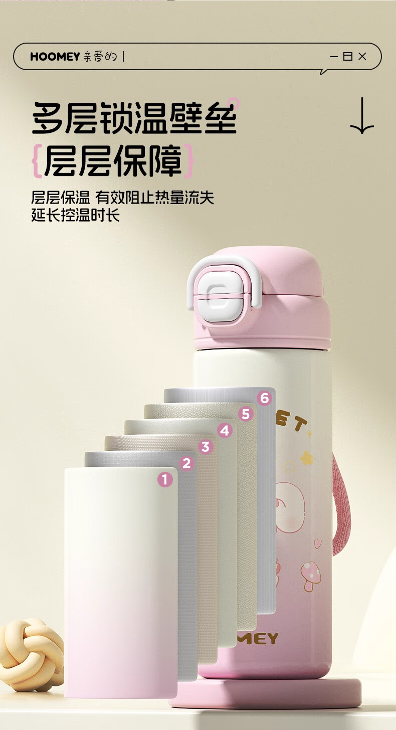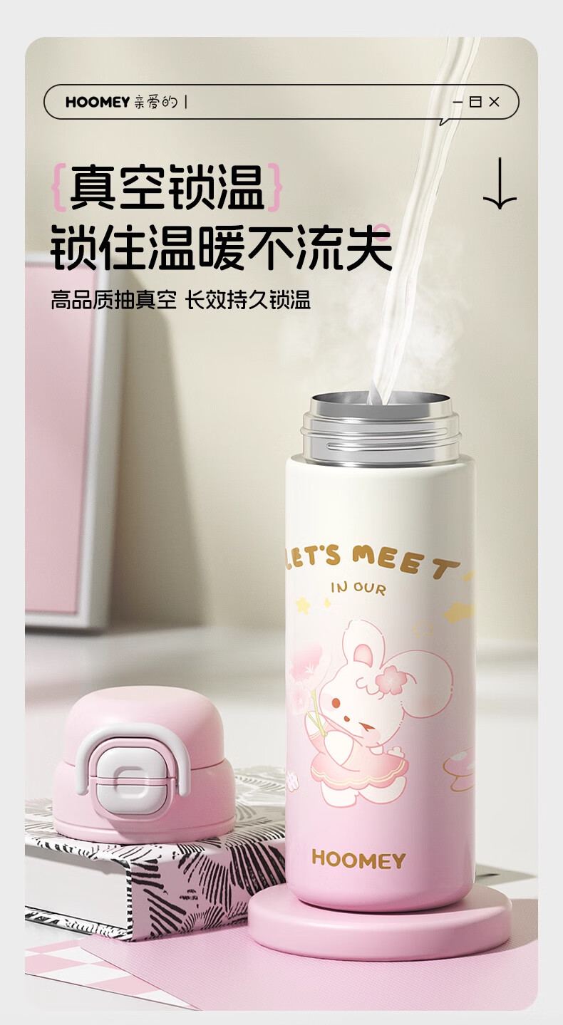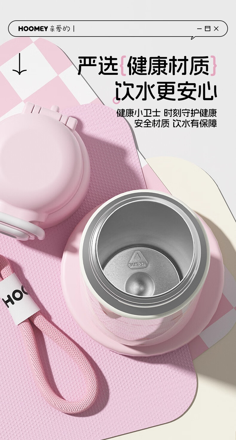 HOOMEY儿童保温杯小学生上学专用水杯男孩童2025新款吸管杯子水壶 【316不锈钢+提绳+吸管】星球白500ml