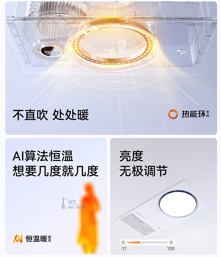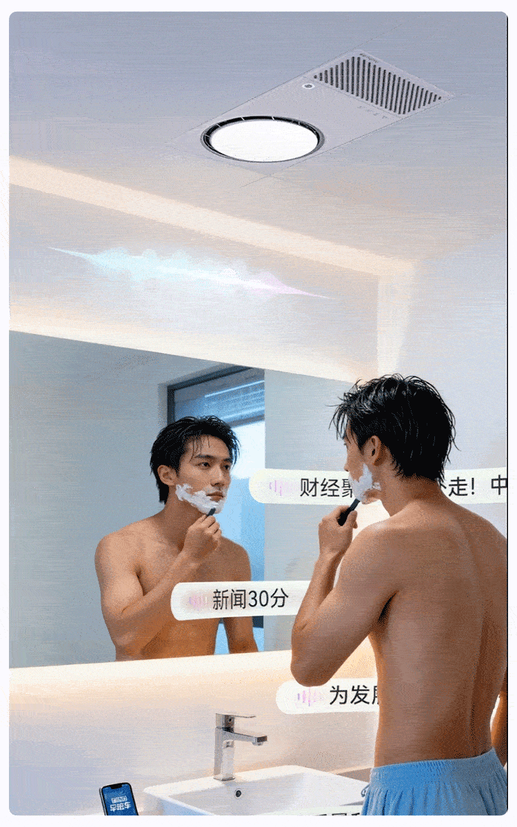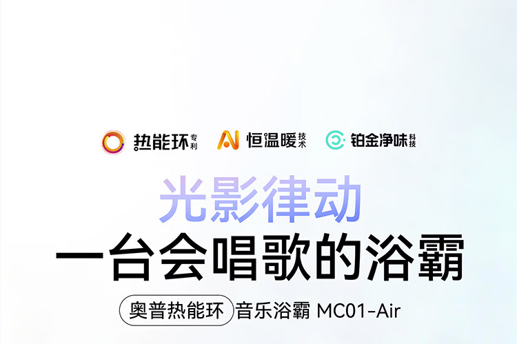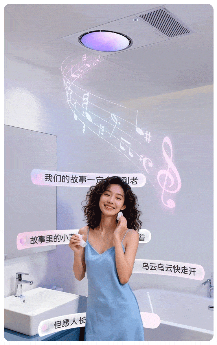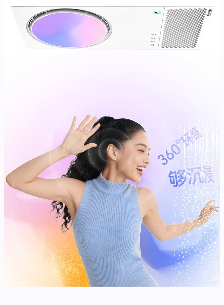 奥普热能环音乐浴霸Q360暖风照明排气一体五合一AI智能控制恒温除臭