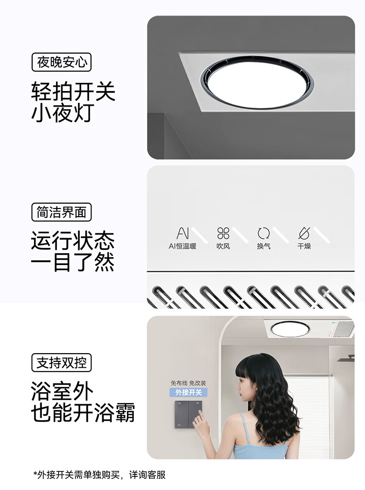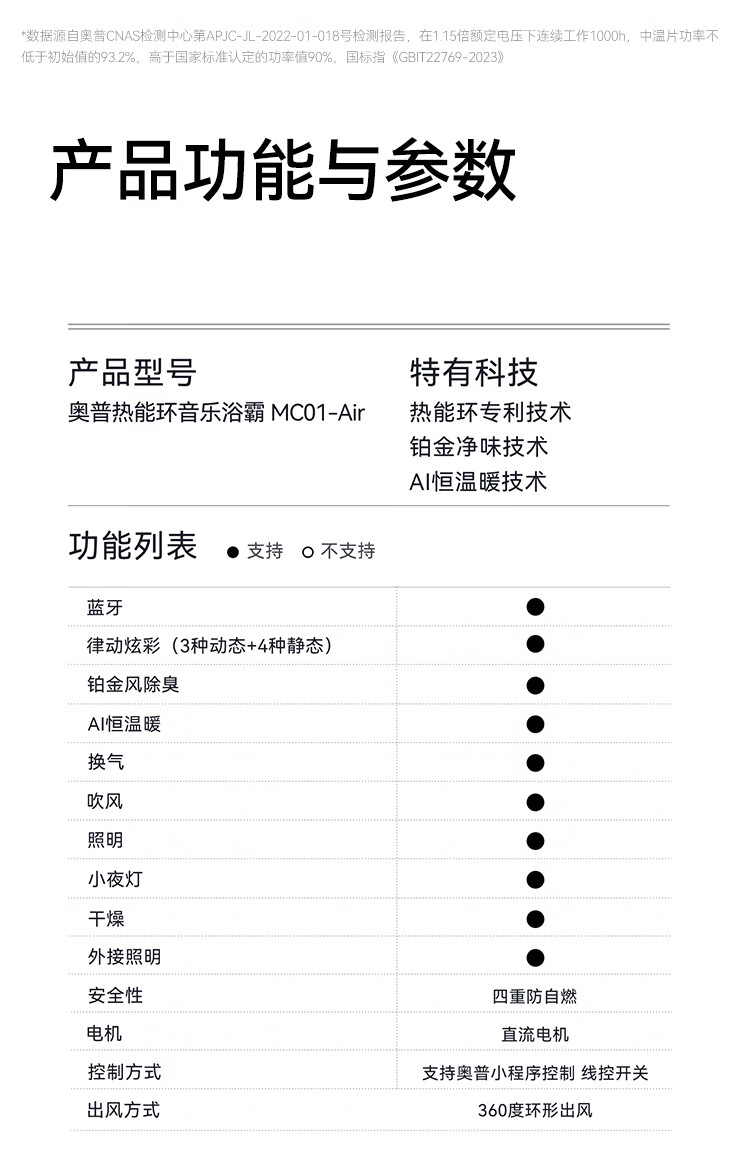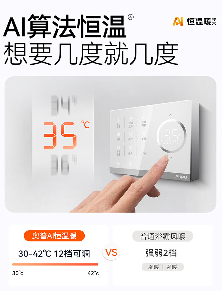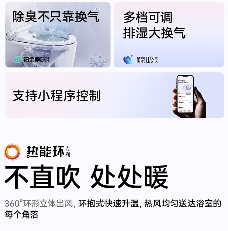 奥普热能环音乐浴霸Q360暖风照明排气一体五合一AI智能控制恒温除臭