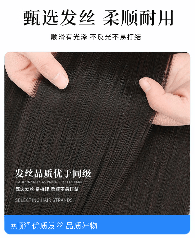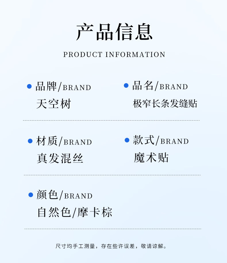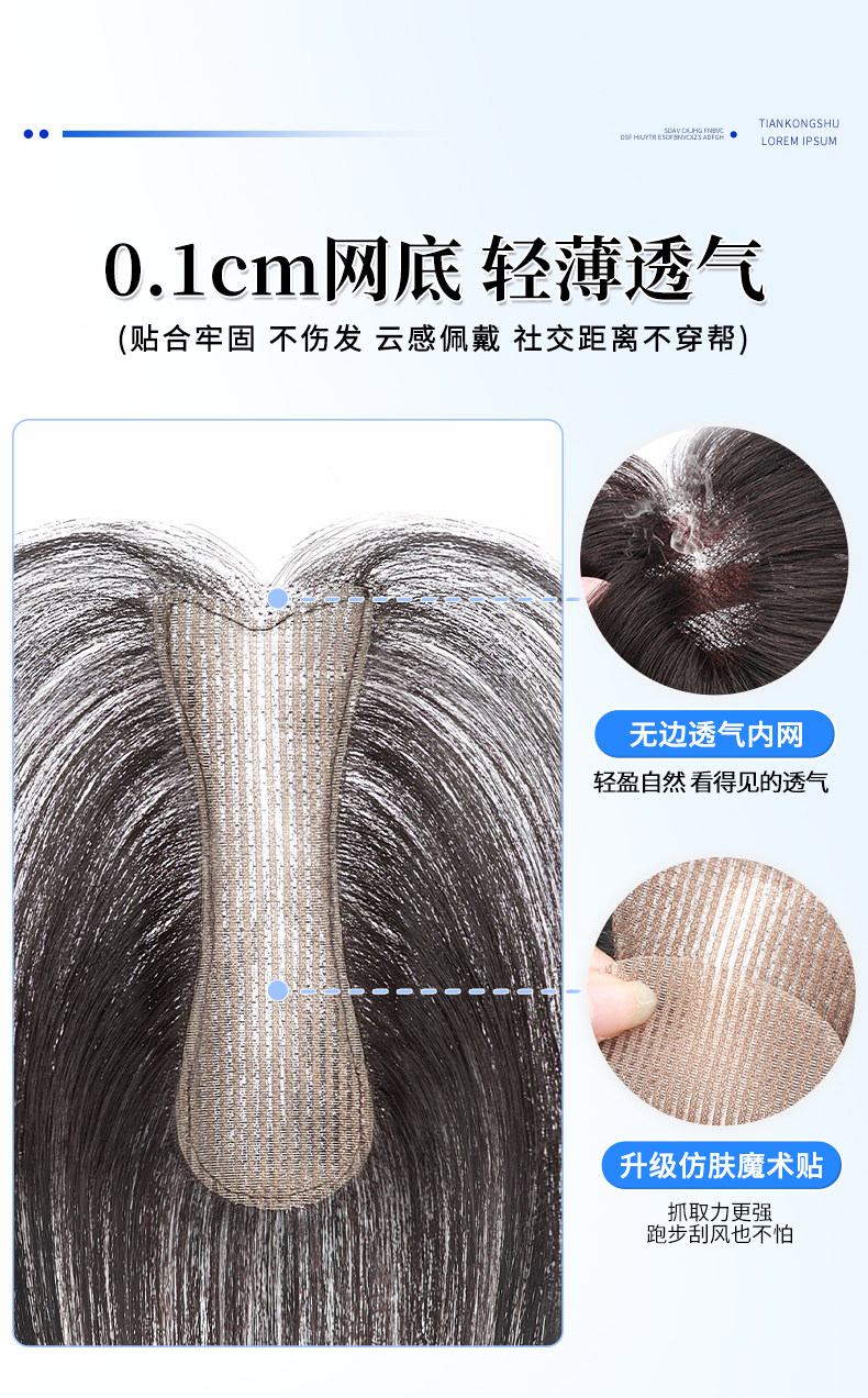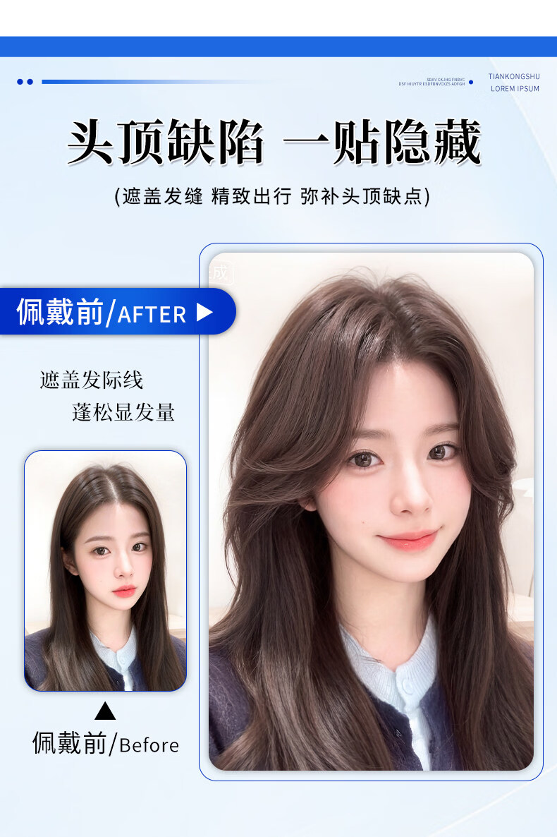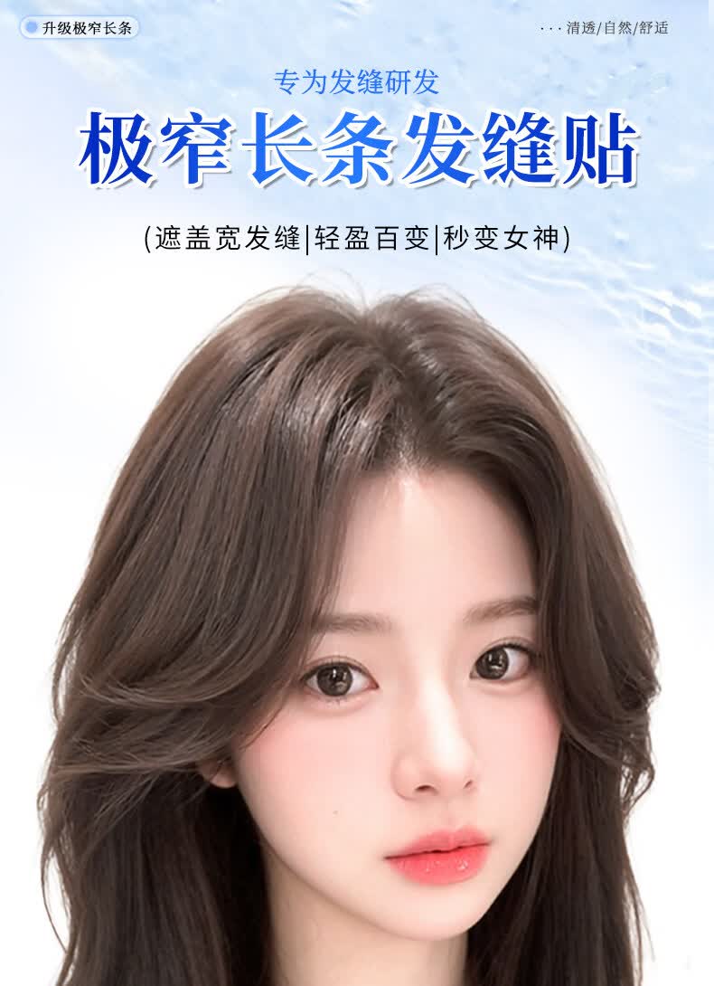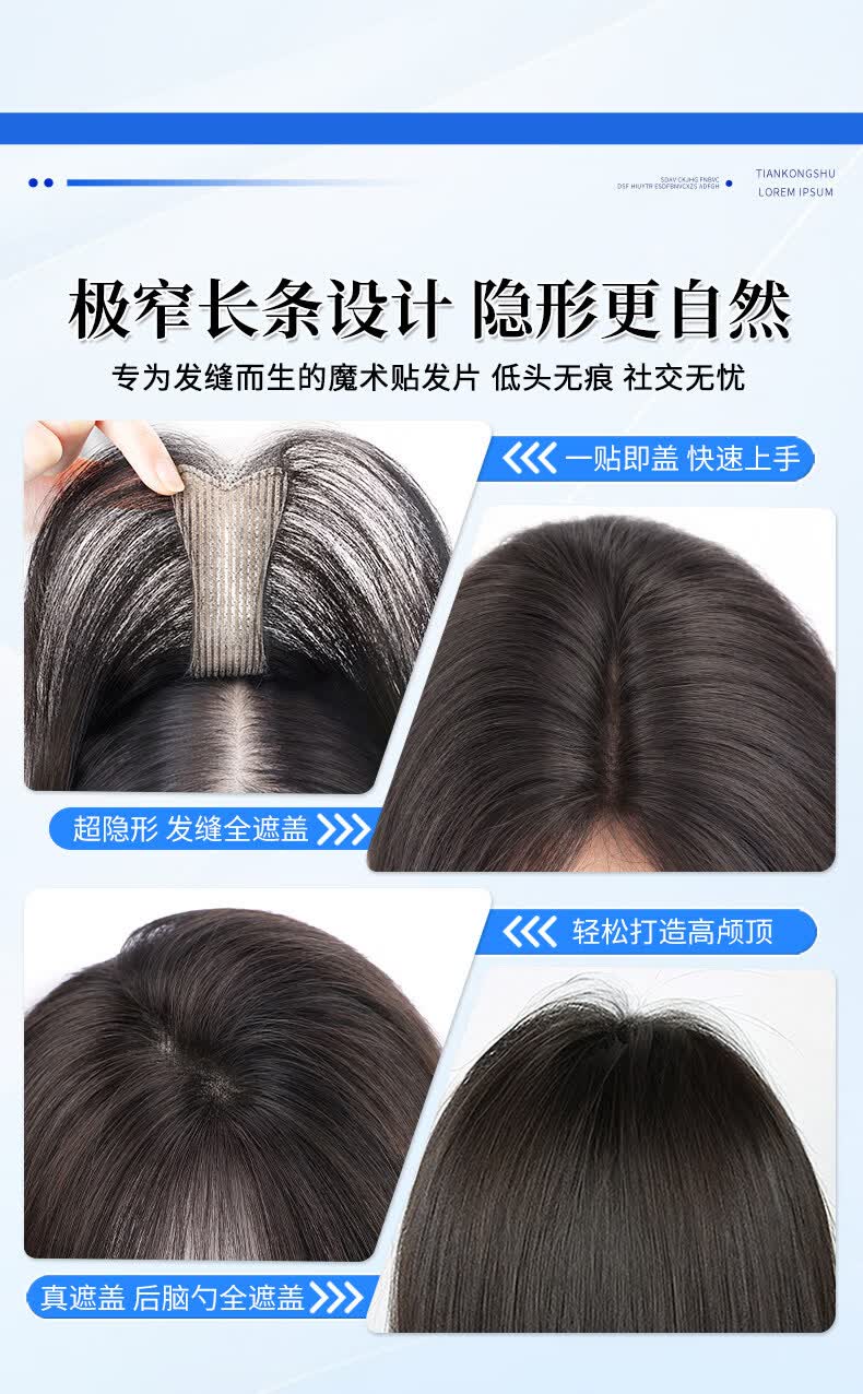 天空树【新款长条发缝贴】无需发卡假发女片头顶仿真发遮白发魔术贴补发 极细隐形发缝贴-八字款【14*4自然色】30CM