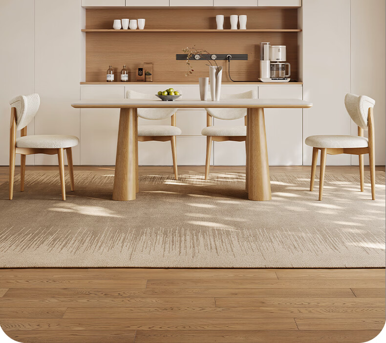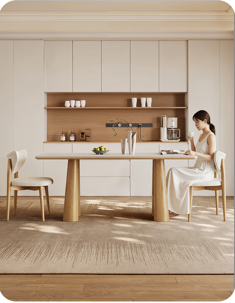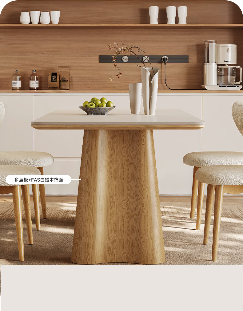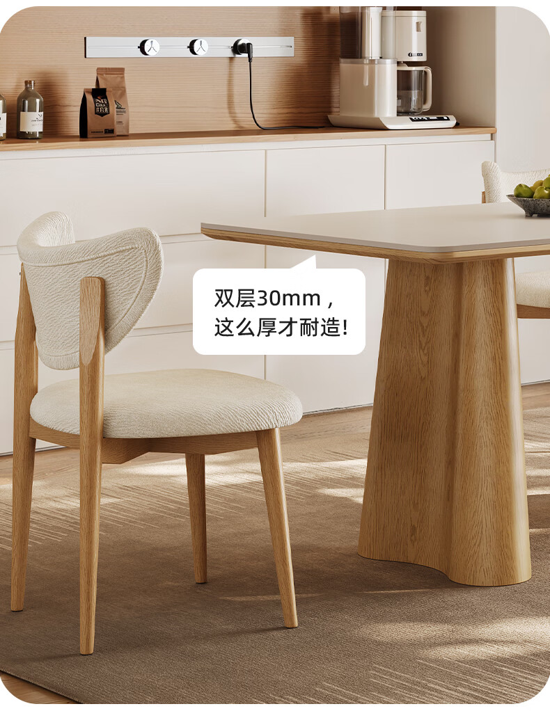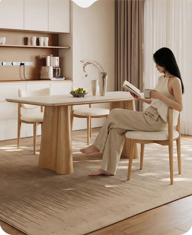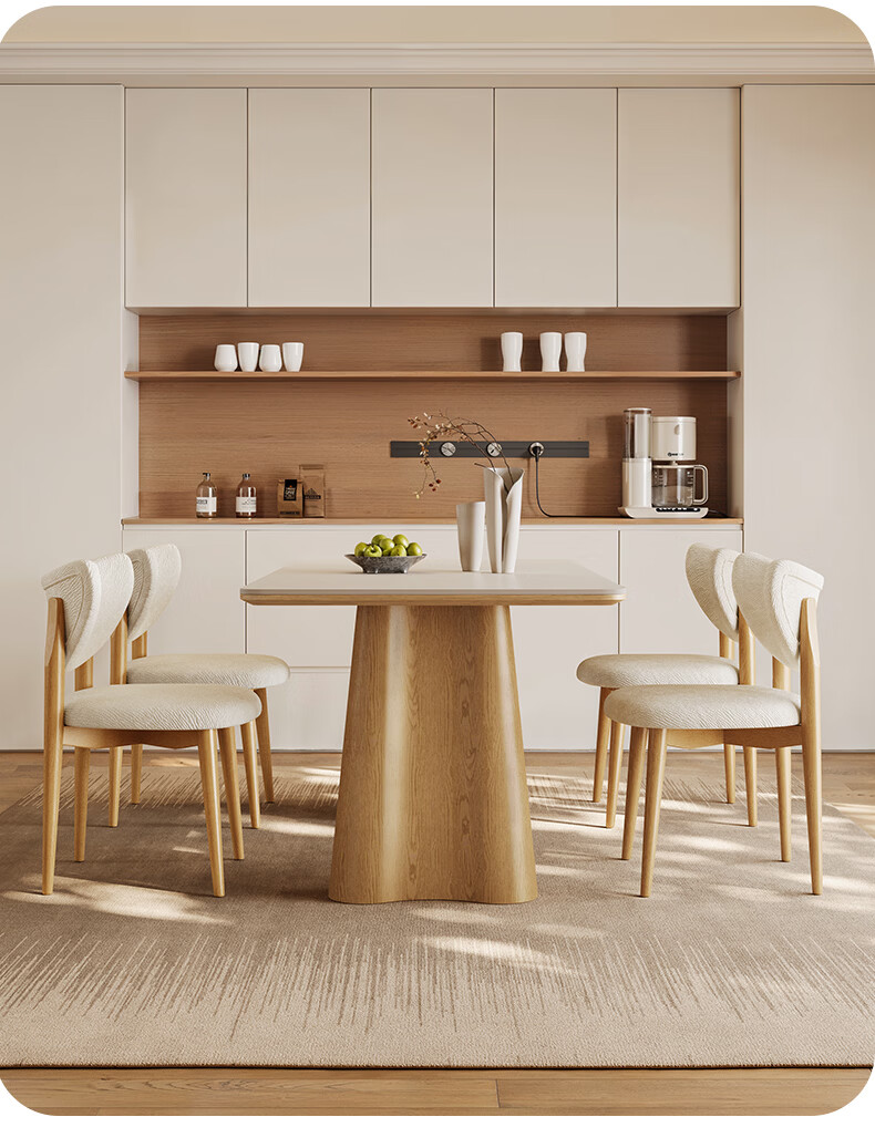 贾斯珀原木风餐桌家用小户型日式长桌奶油北欧实木岩板餐桌 1.4米+4椅(原木色云棕餐桌)