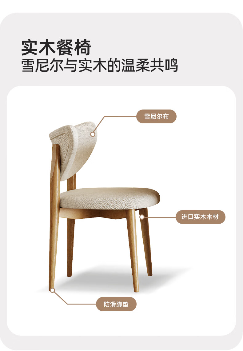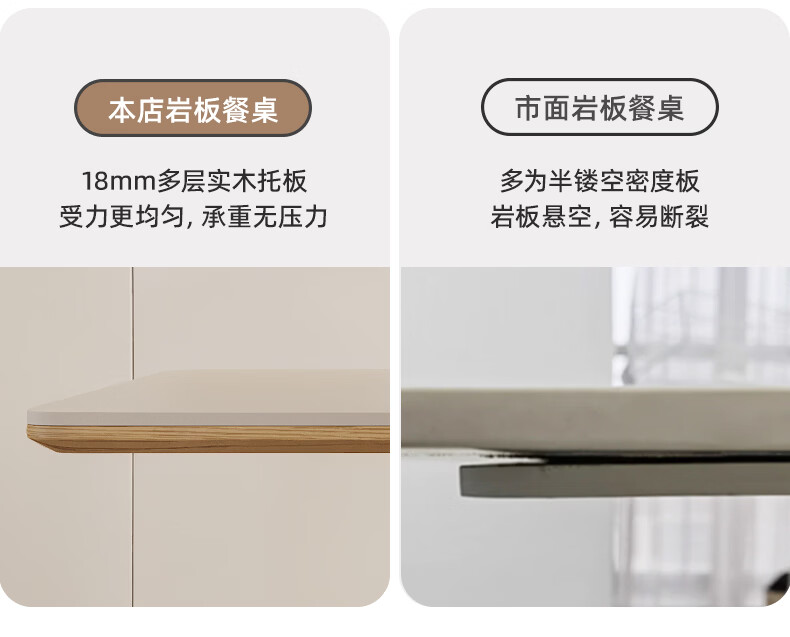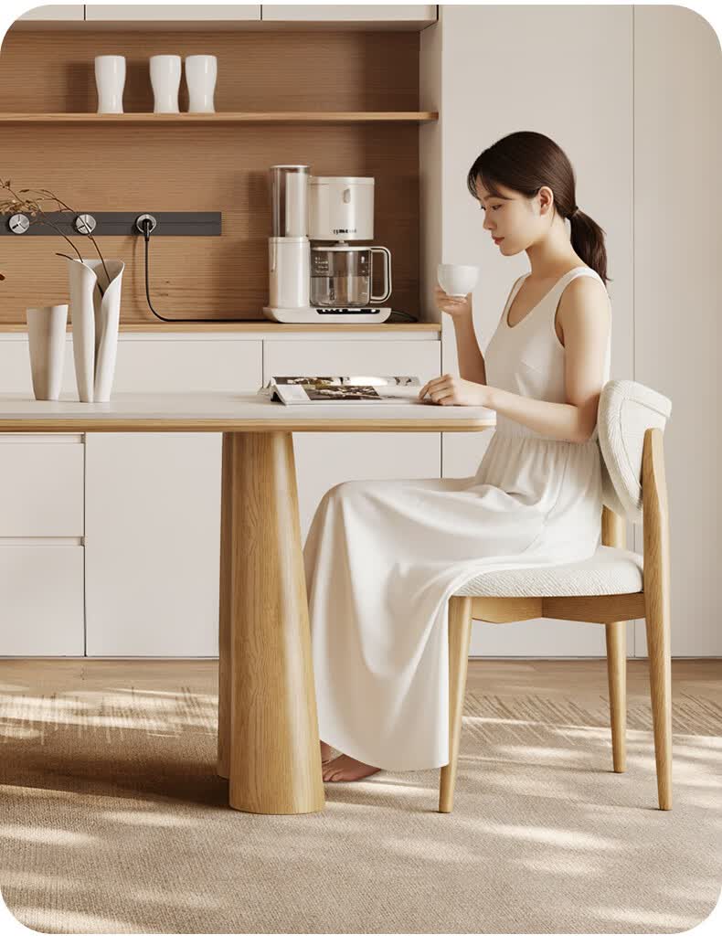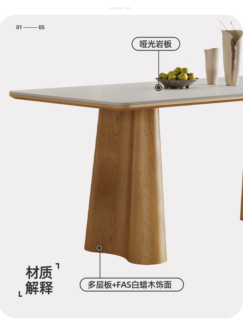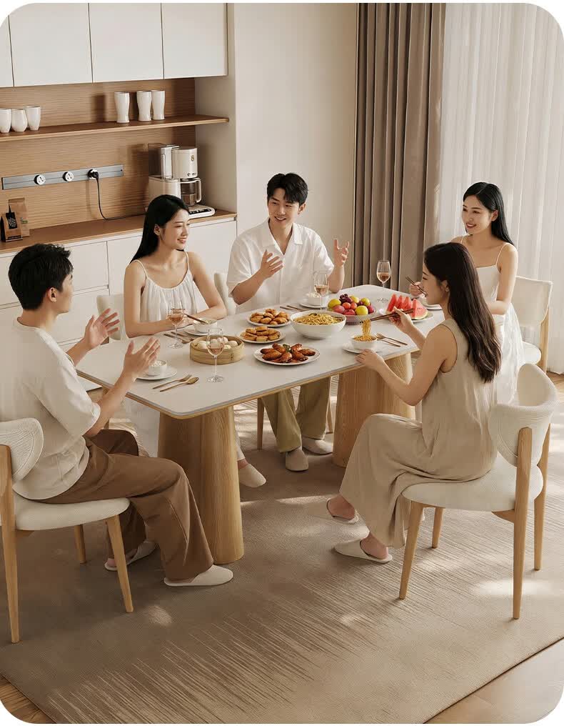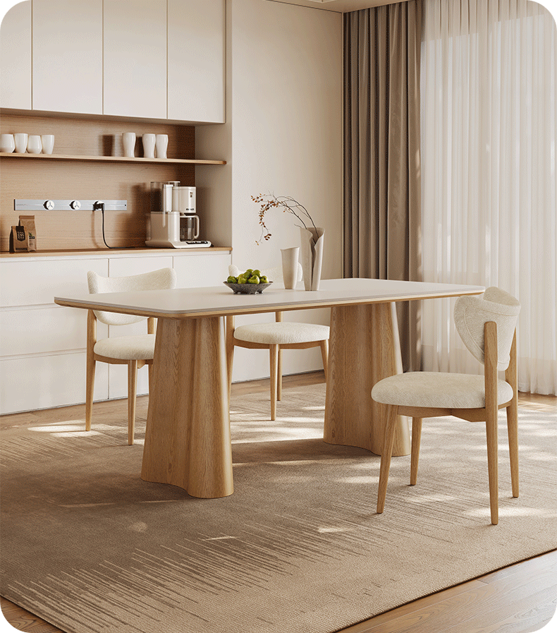 贾斯珀原木风餐桌家用小户型日式长桌奶油北欧实木岩板餐桌 1.4米+4椅(原木色云棕餐桌)
