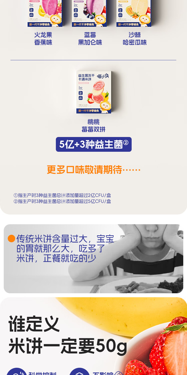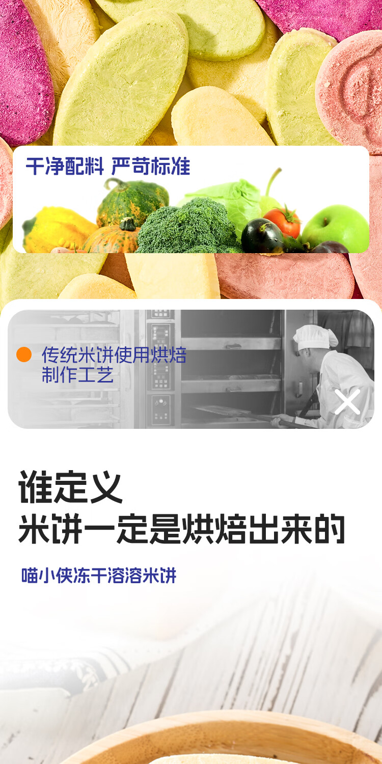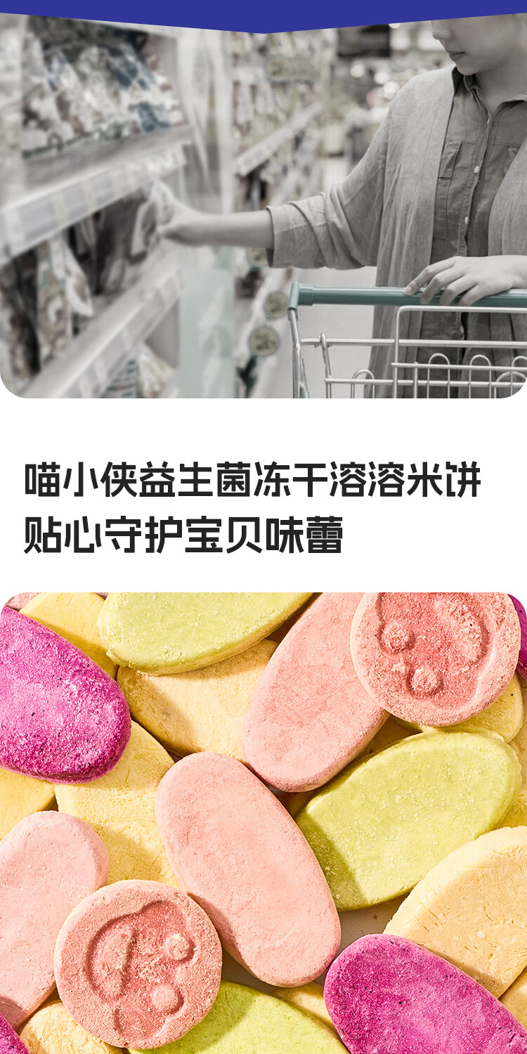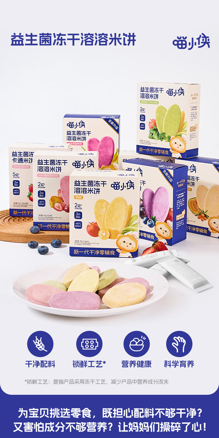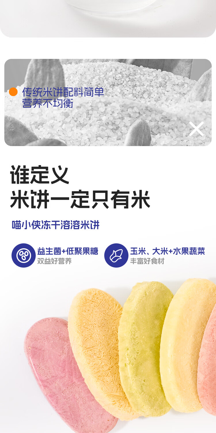 喵小侠益生菌冻干米饼无添加盐宝宝益生菌饼干零食,送婴儿辅食谱 【混搭3盒】草莓1盒+蔬菜味1盒+原味1盒