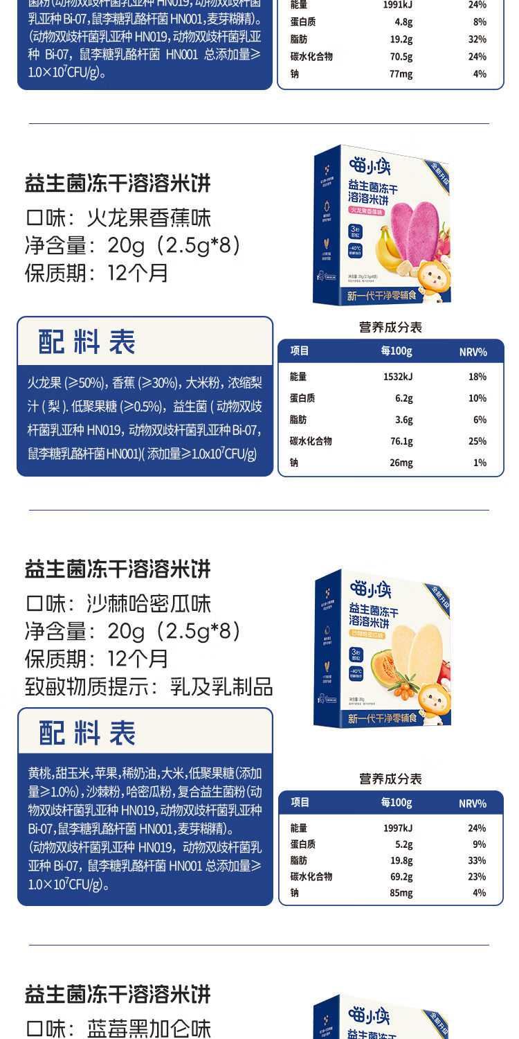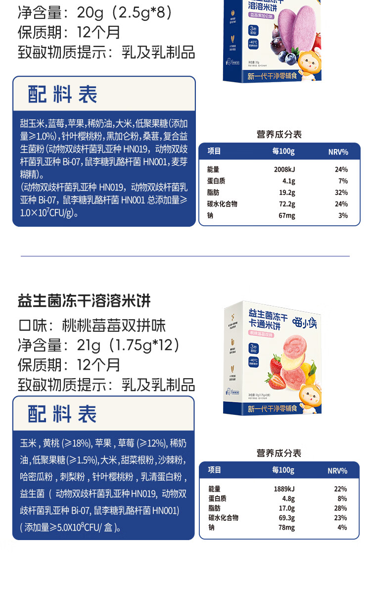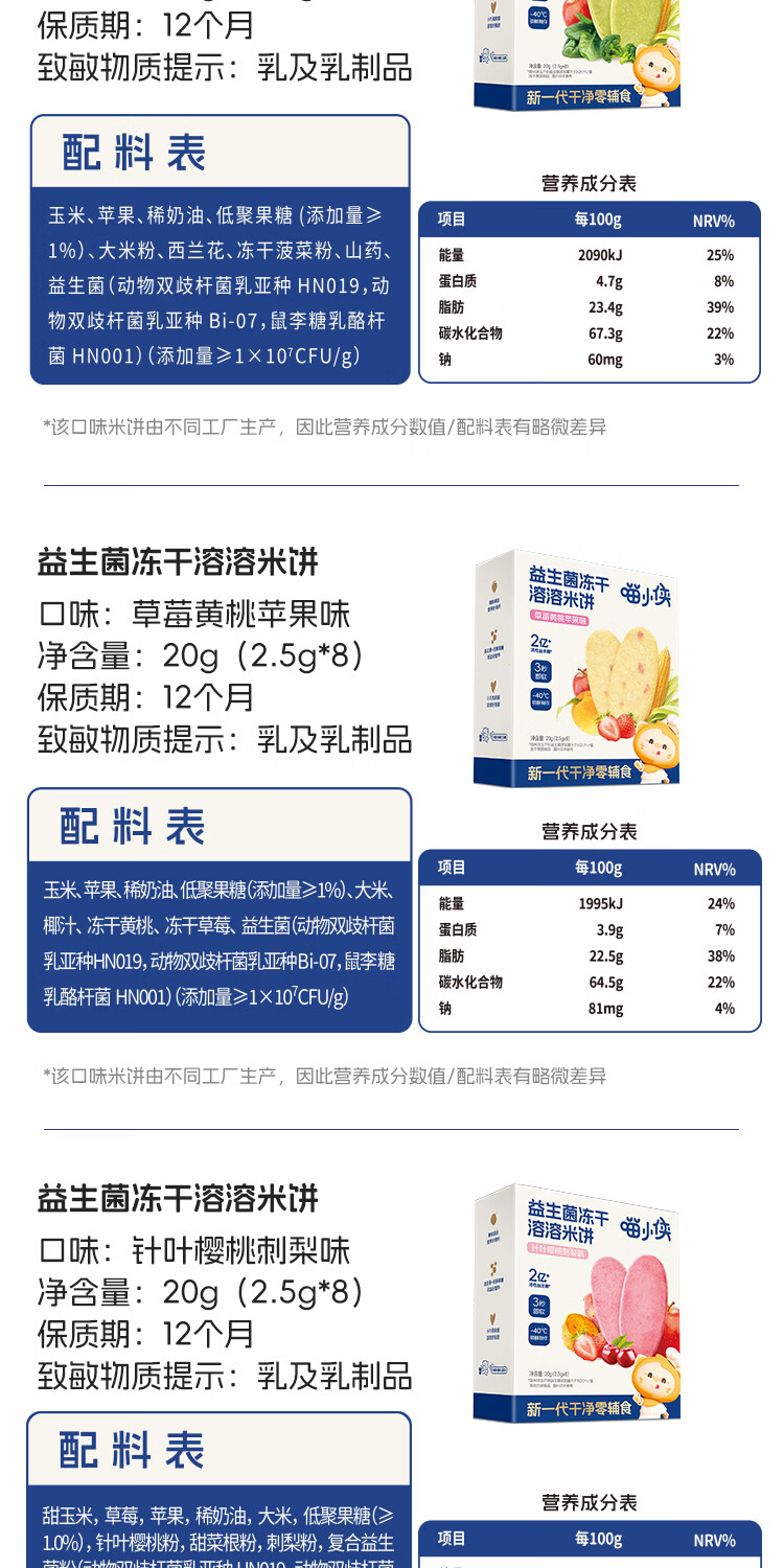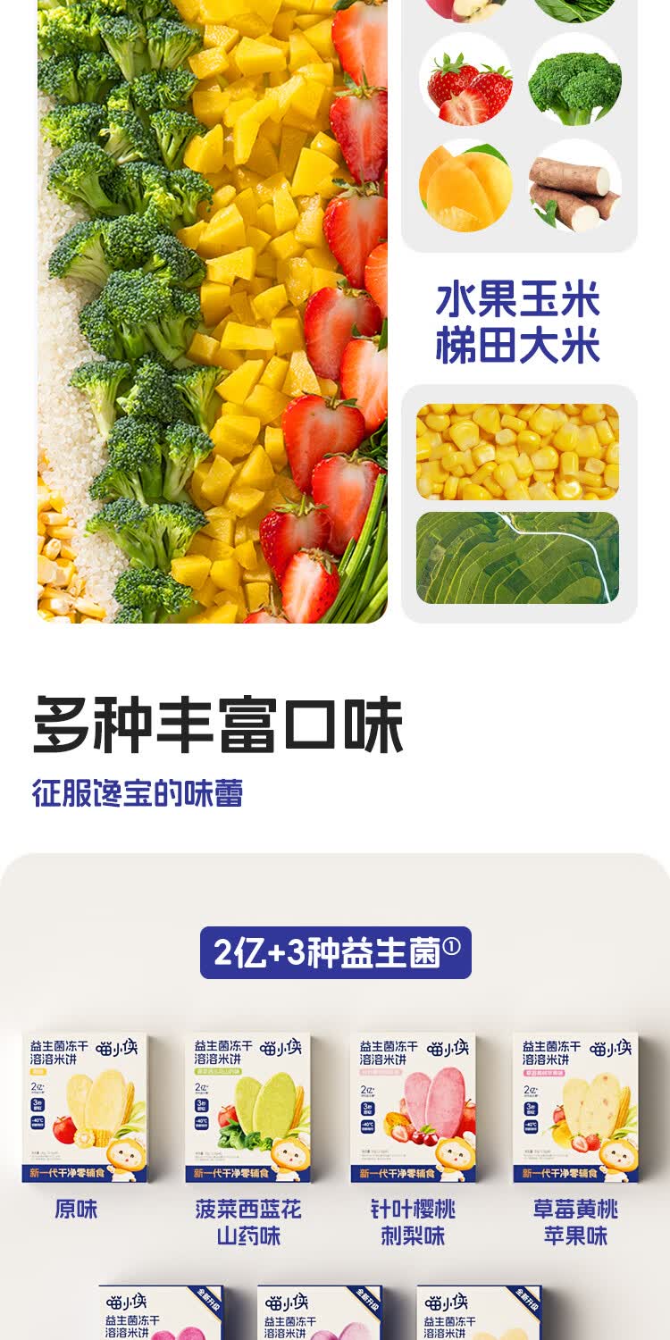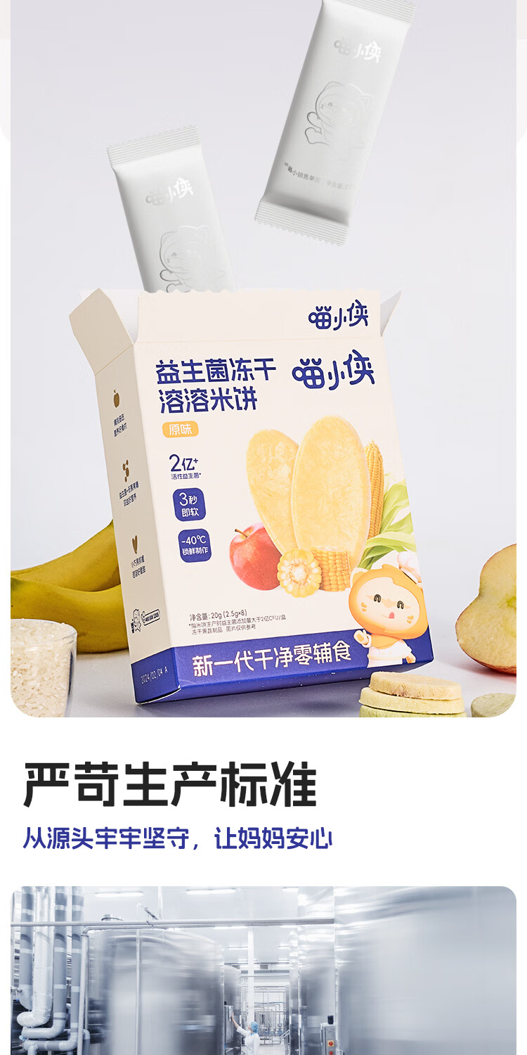 喵小侠益生菌冻干米饼无添加盐宝宝益生菌饼干零食,送婴儿辅食谱 【混搭3盒】草莓1盒+蔬菜味1盒+原味1盒