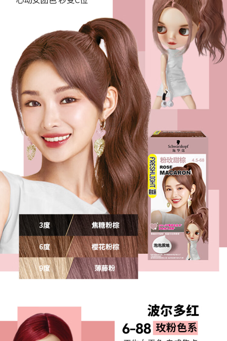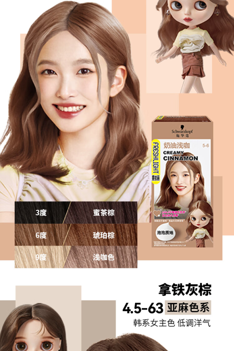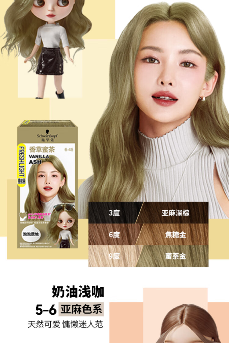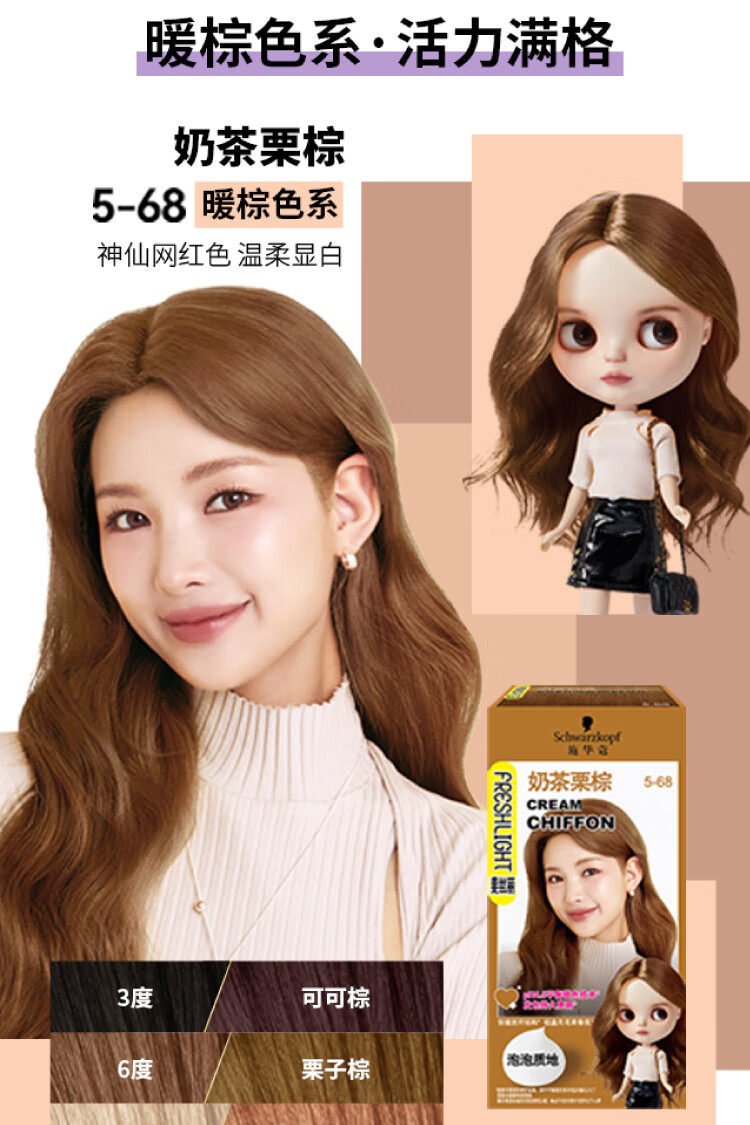 施华蔻(Schwarzkopf)裴丝丽泡泡染发乳110ml(6-45香草蜜茶)【临期清仓】