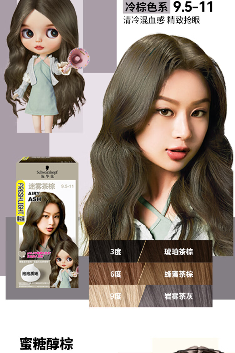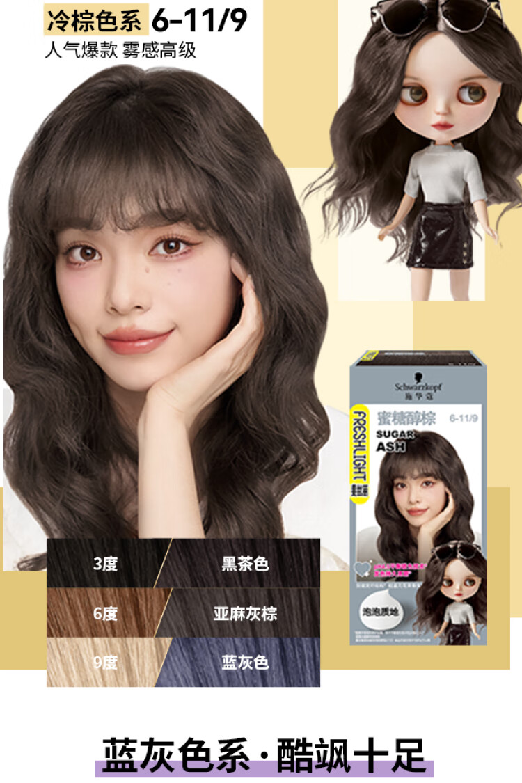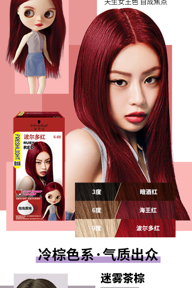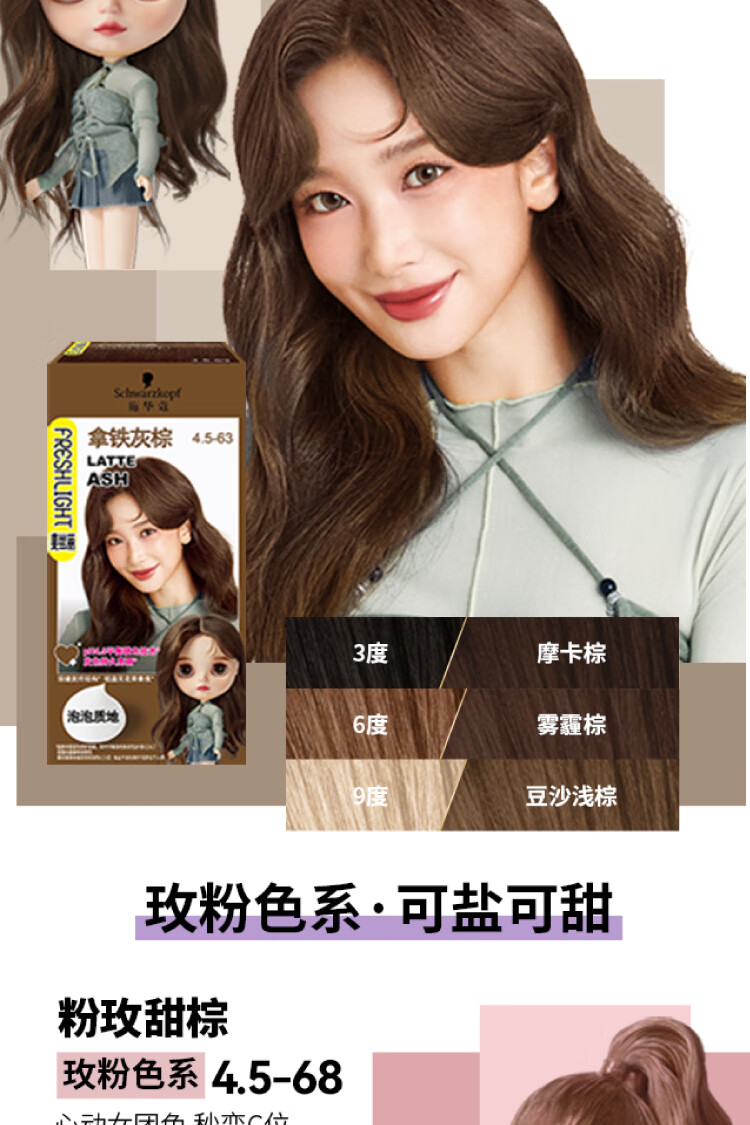 施华蔻(Schwarzkopf)裴丝丽泡泡染发乳110ml(6-45香草蜜茶)【临期清仓】