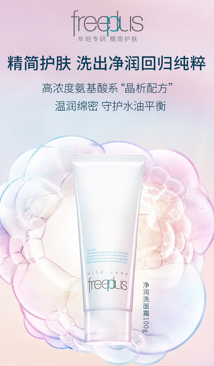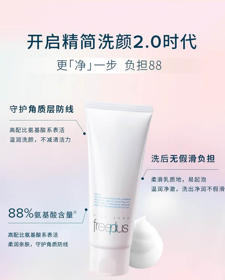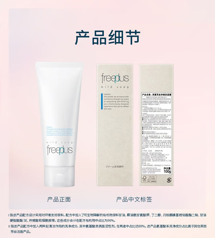 芙丽芳丝(Freeplus)氨基酸洗面奶保湿补水控油深层清洁毛孔温和不刺激敏感肌可用男女 囤货100g*2支装
