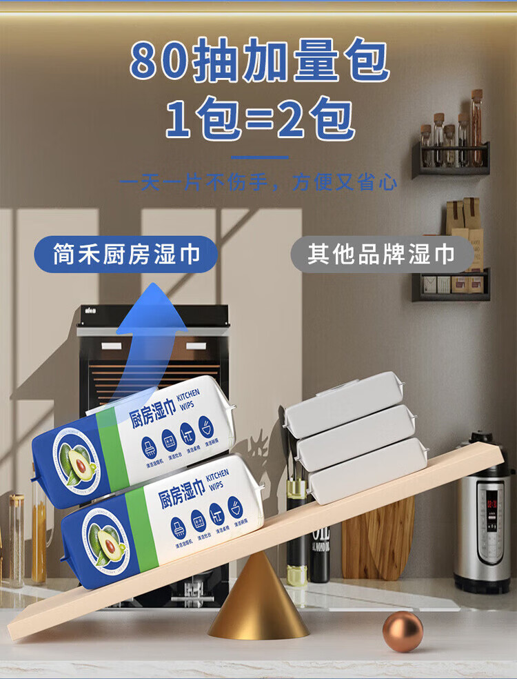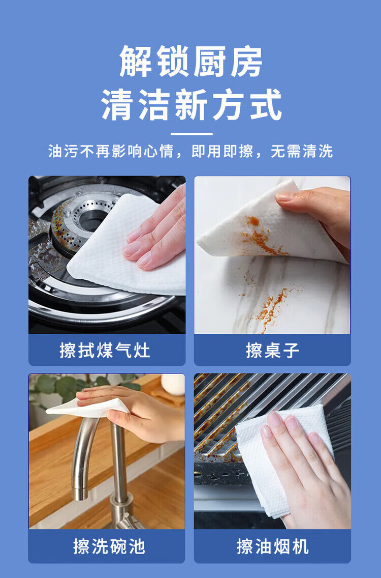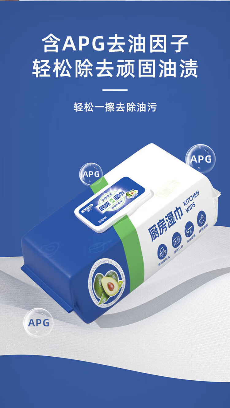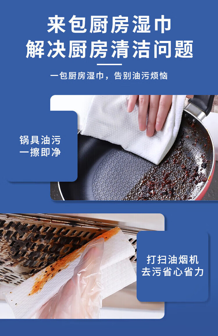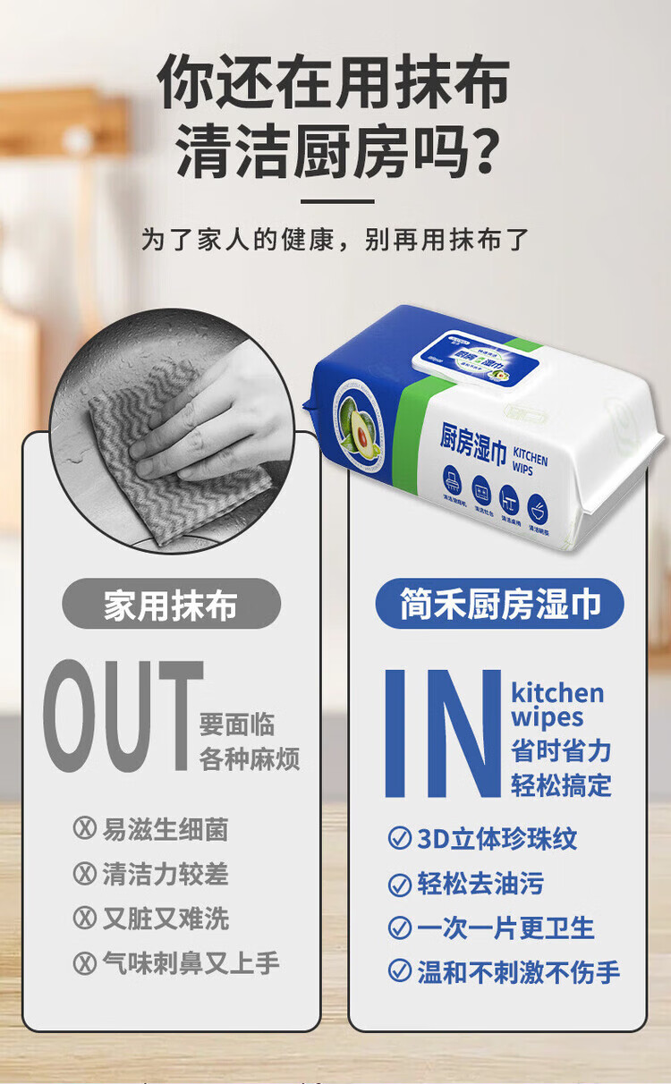 洋臣厨房清洁湿纸巾一次性去油污抹布加大加厚可水洗懒人抹布80抽 3大包【牛油果+去油+去污】