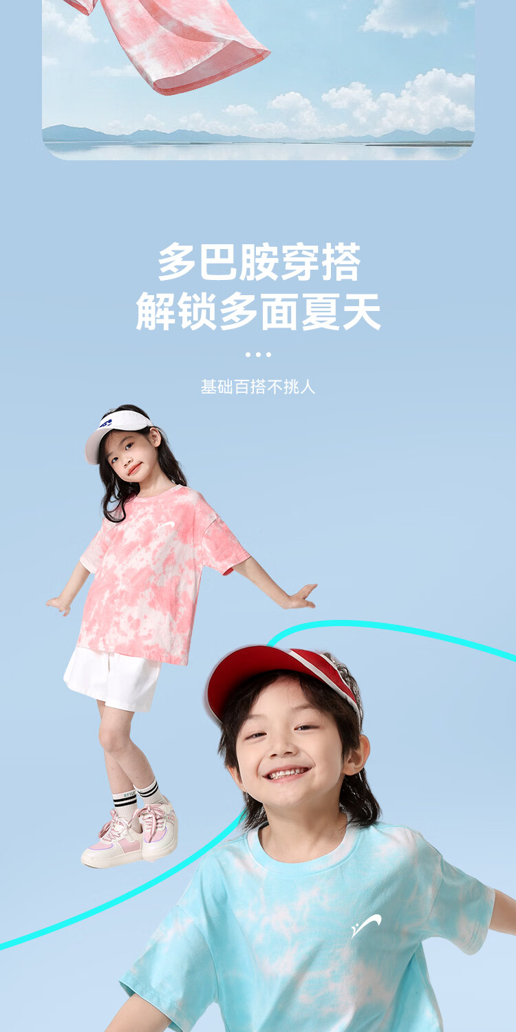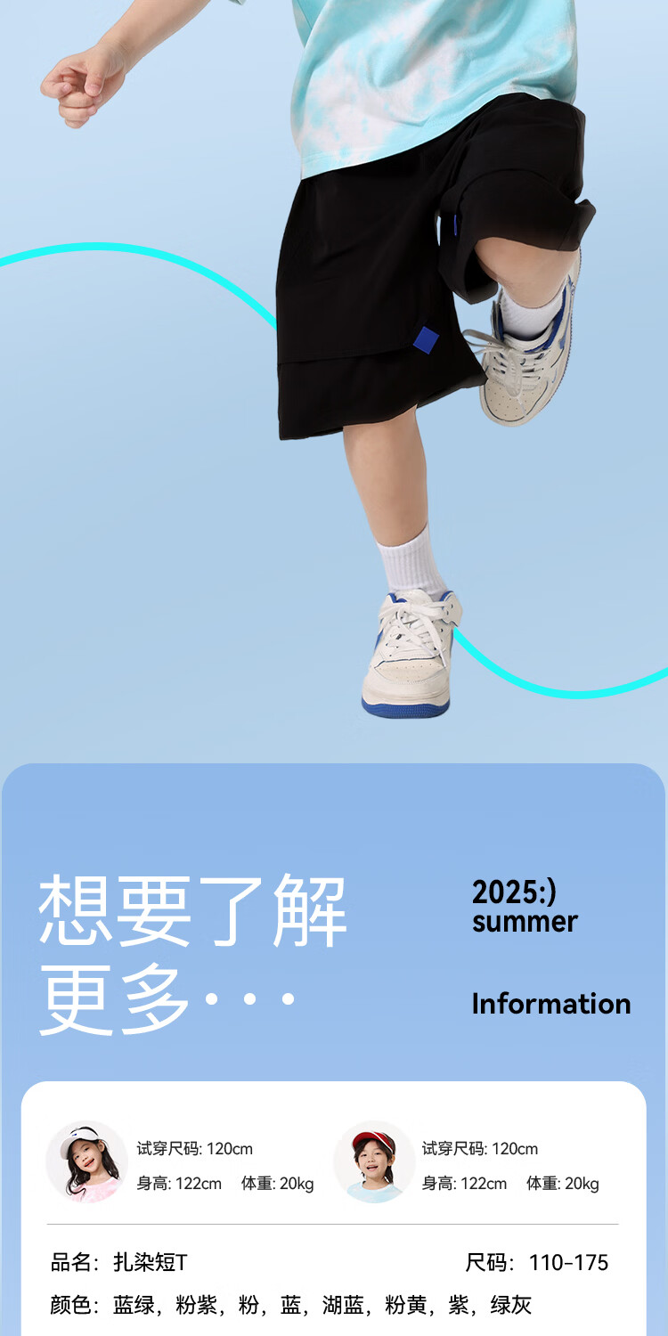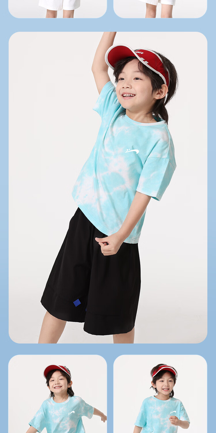 贵人鸟童装男童短袖t恤中大童时尚扎染运动服儿童夏季纯棉两件装 白/G中国黑标-湖蓝/G黑绿线稿 110