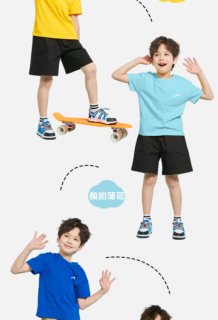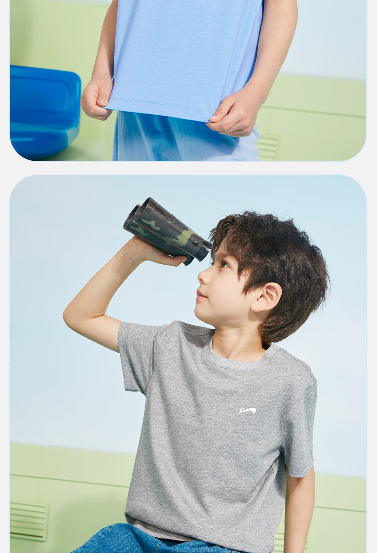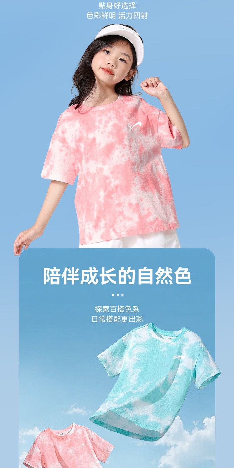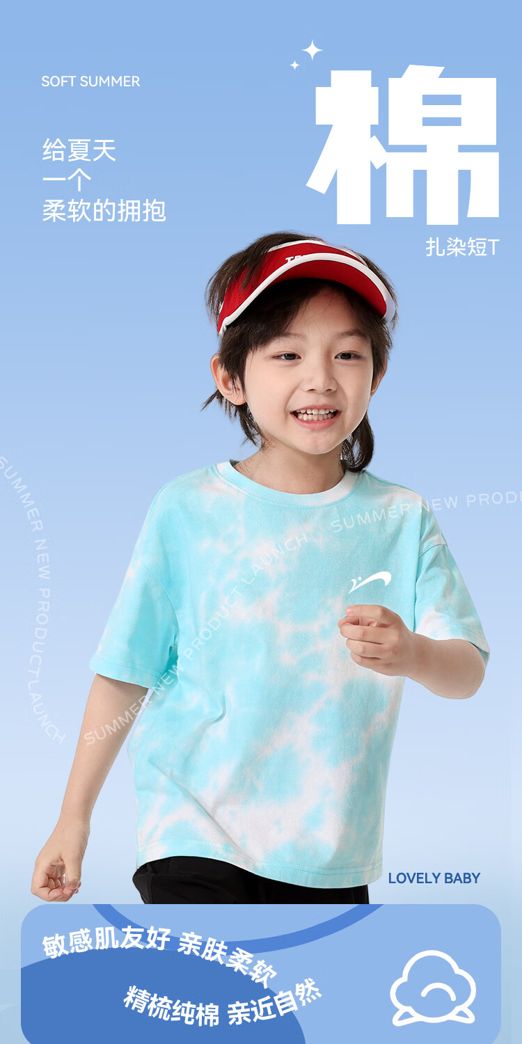 贵人鸟童装男童短袖t恤中大童时尚扎染运动服儿童夏季纯棉两件装 白/G中国黑标-湖蓝/G黑绿线稿 110