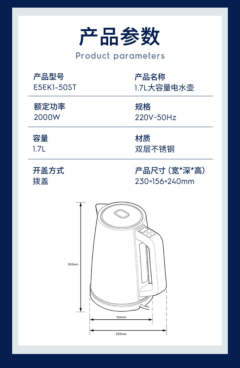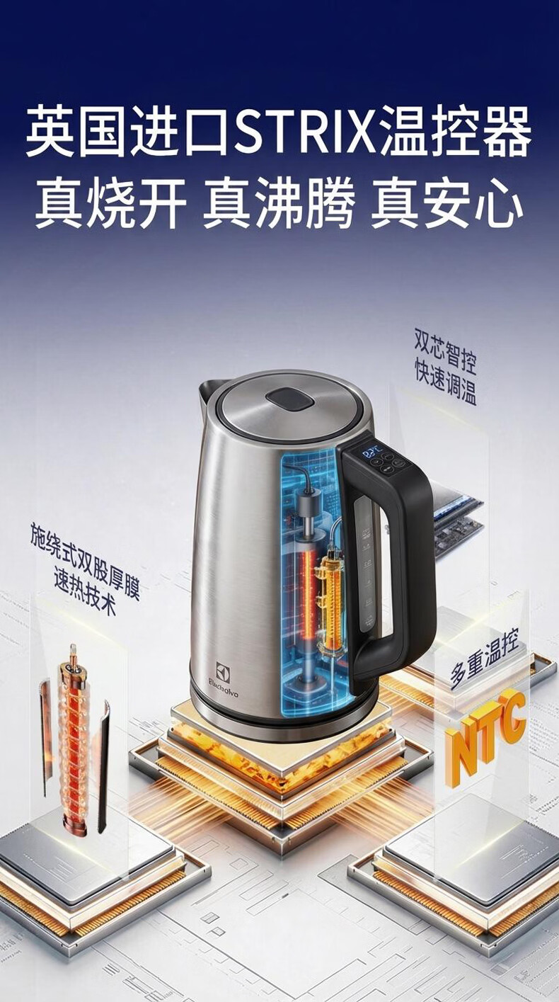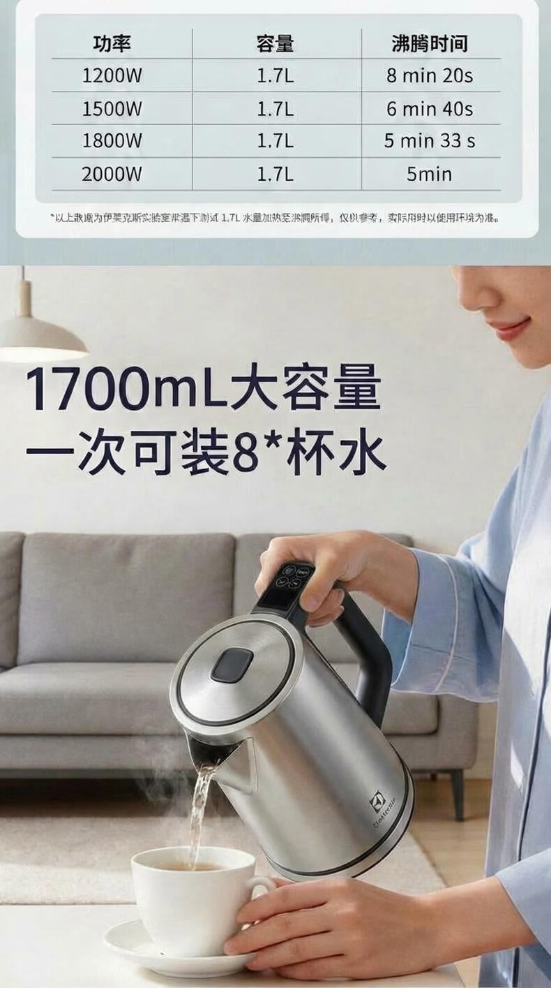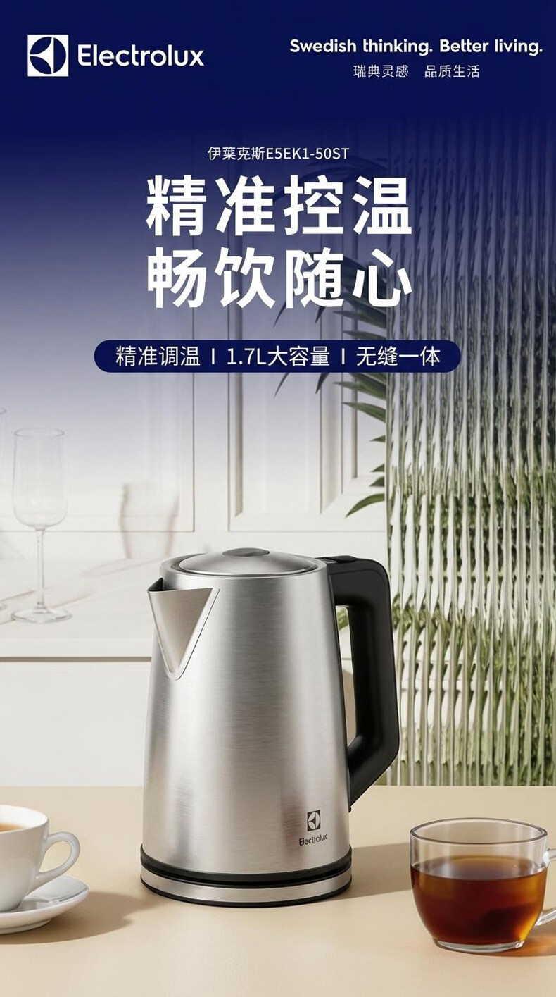 伊莱克斯(Electrolux)电热水壶烧水壶自动断电保温一体恒温热水壶1.7L大容量智能多段控温办公室家用2026年最新款 1.7L 【多段控温】2000W大功率速热