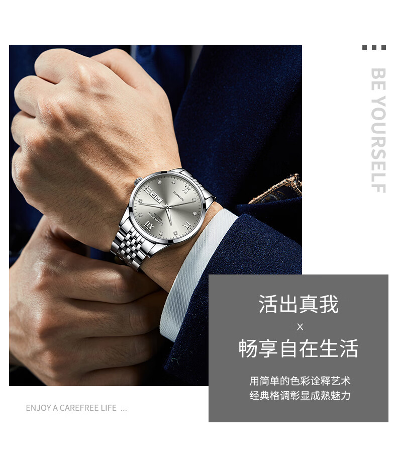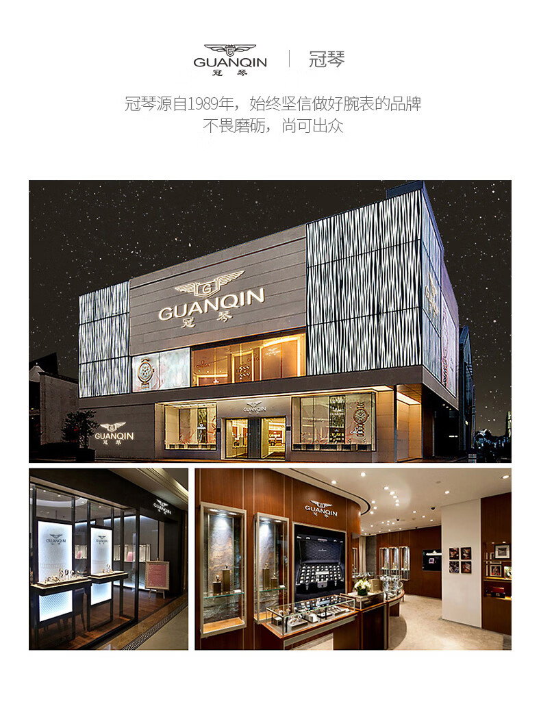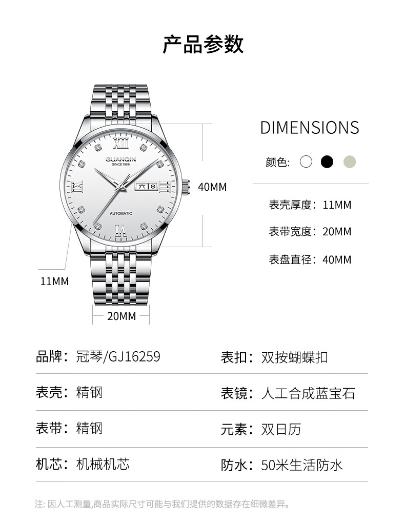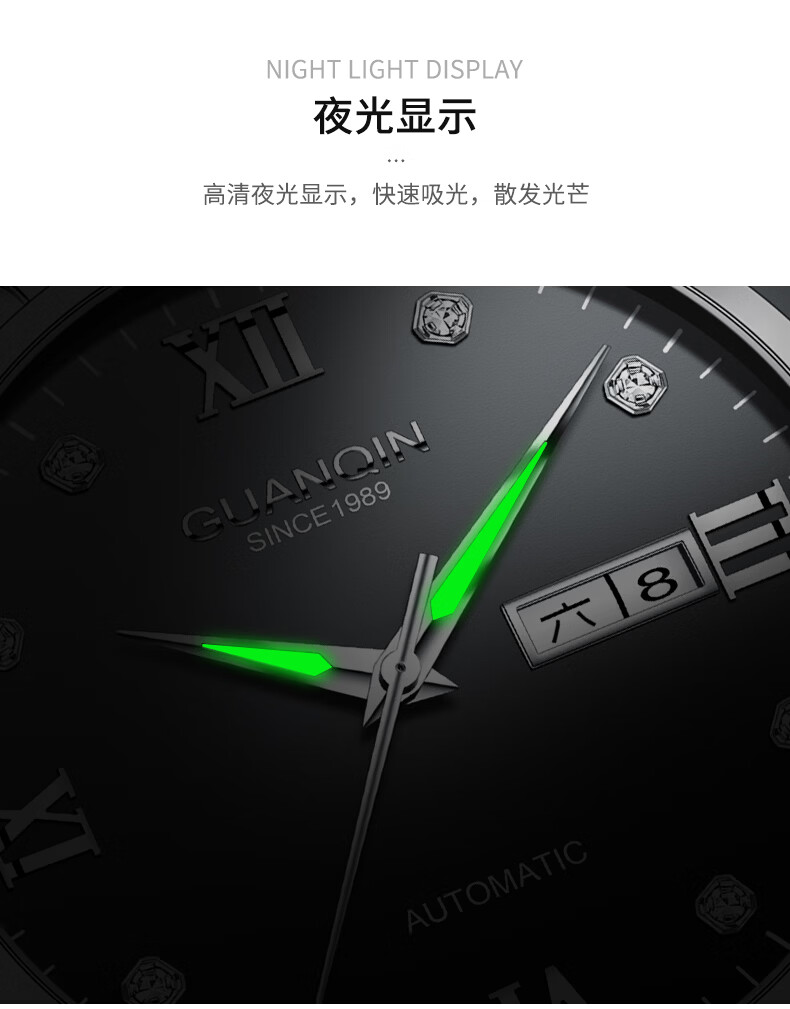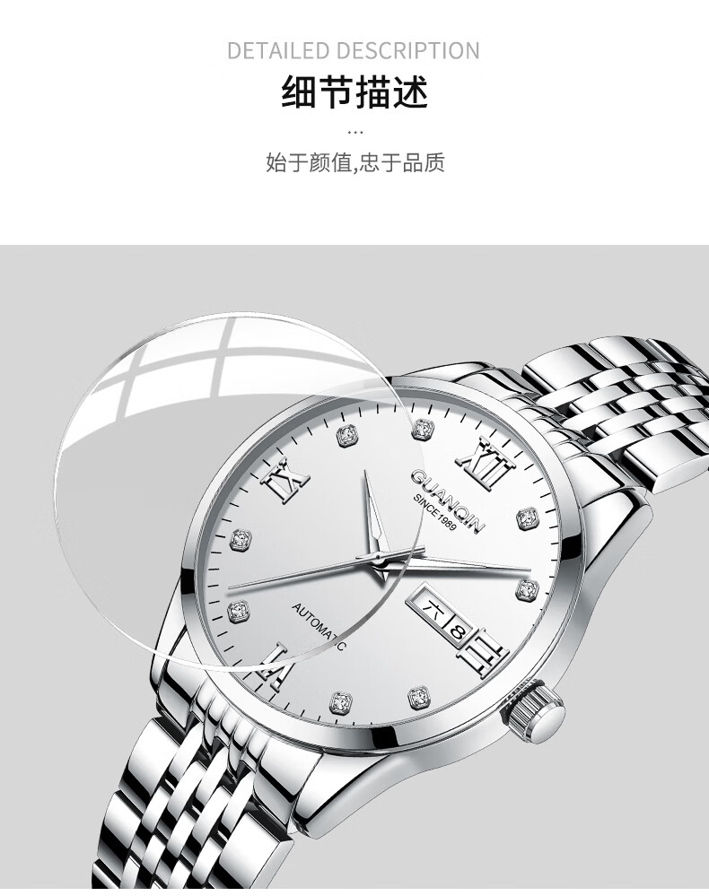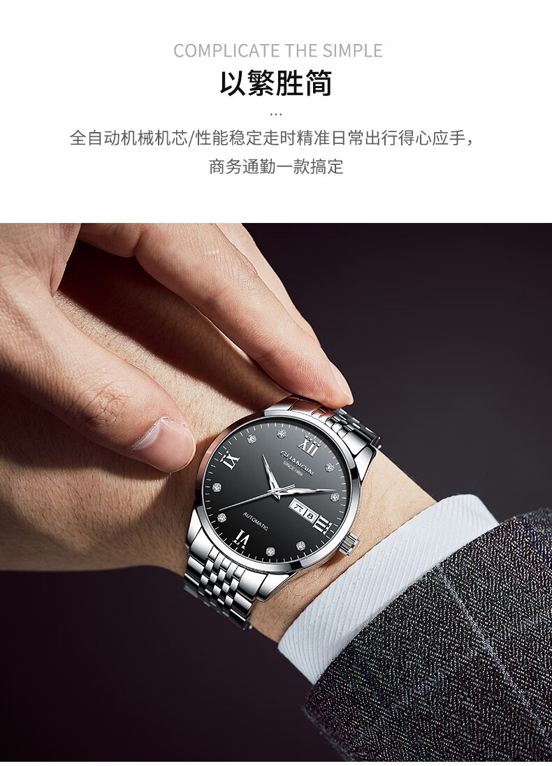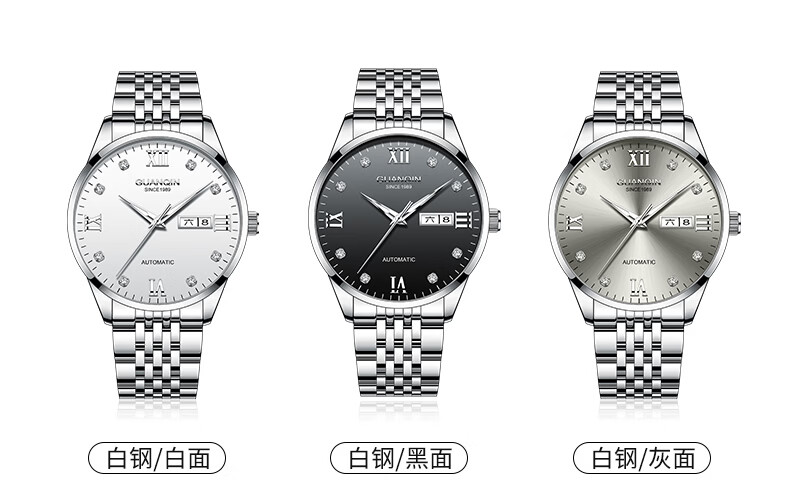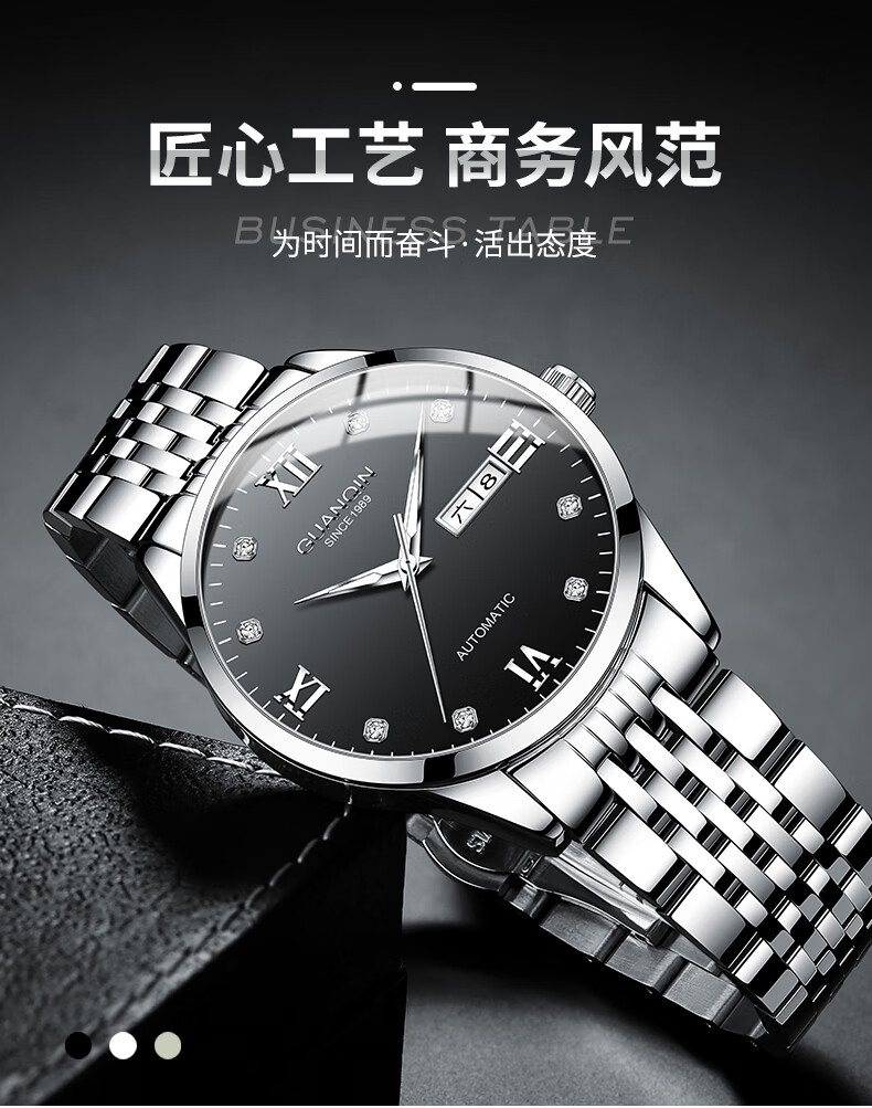 冠琴(GUANQIN)瑞士认证手表男款全自动机械表高档商务男表夜光防水休闲男士名表 银壳白面-瑞士认证-终生质保-礼盒包装