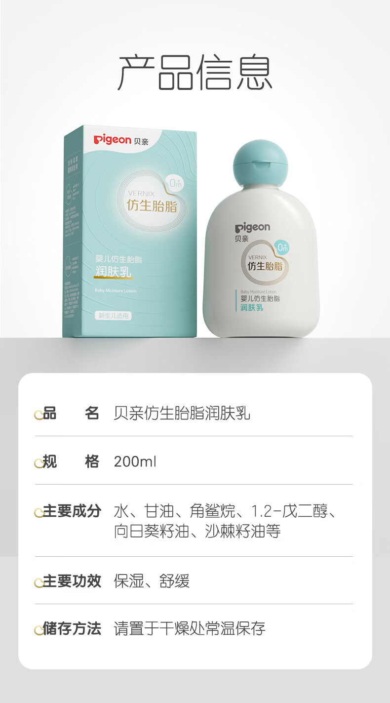 贝亲(Pigeon)仿生胎脂 婴儿身体乳 保湿补水 宝宝身体乳 润肤乳200ml