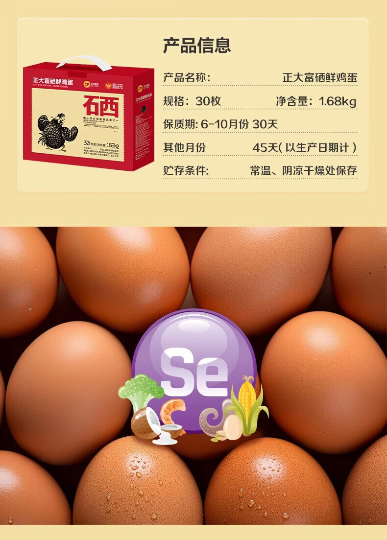 正大营养蛋白 富含硒元素 早餐食材 健康轻食 礼盒装 富硒鸡蛋30枚 1.68kg