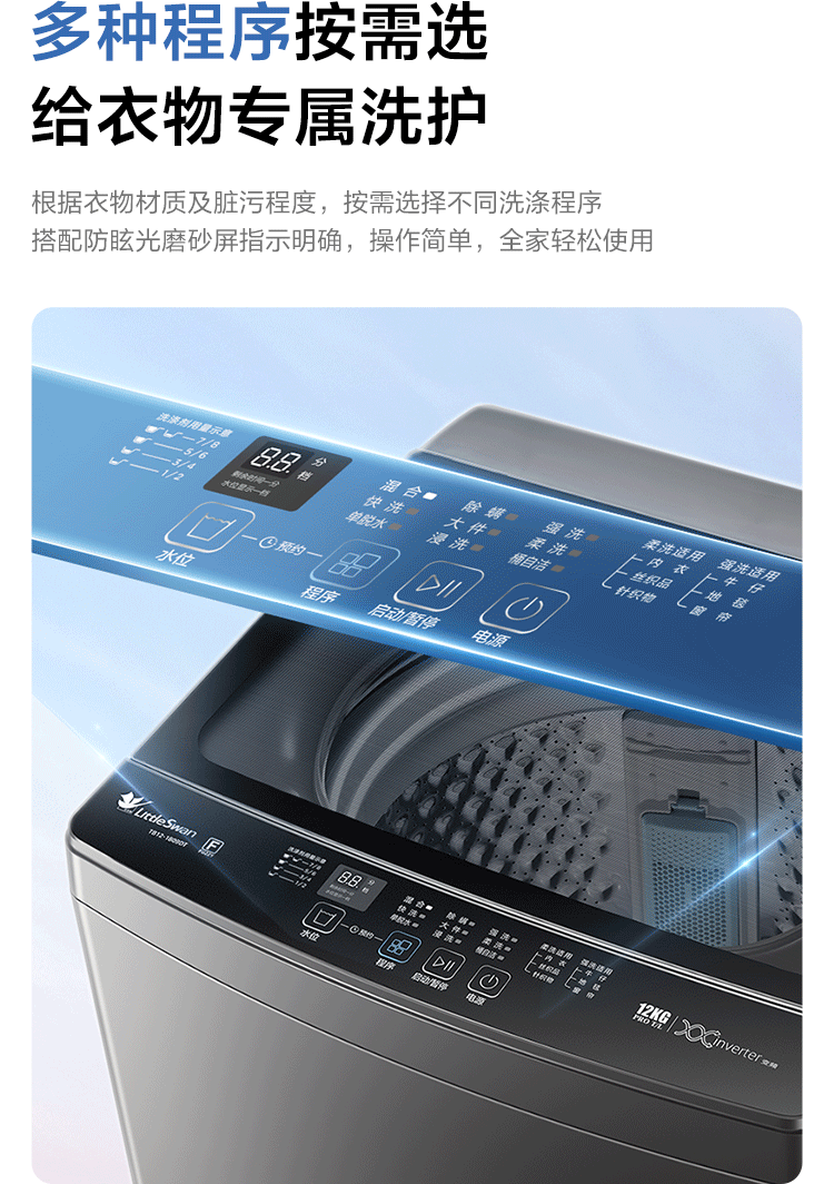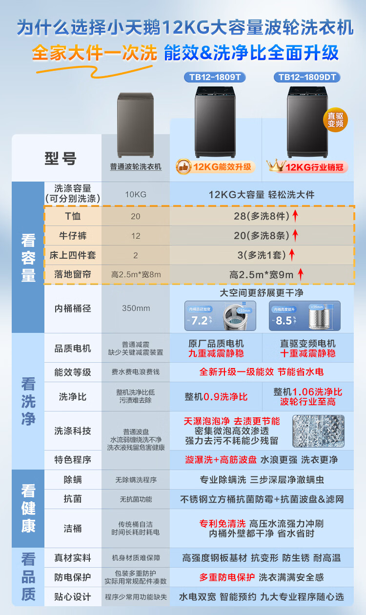 小天鹅(LittleSwan)波轮洗衣机全自动家用 12KG大容量 直驱变频 TB12-1809DT 以旧换新 国家补贴 京东自营 一级能效