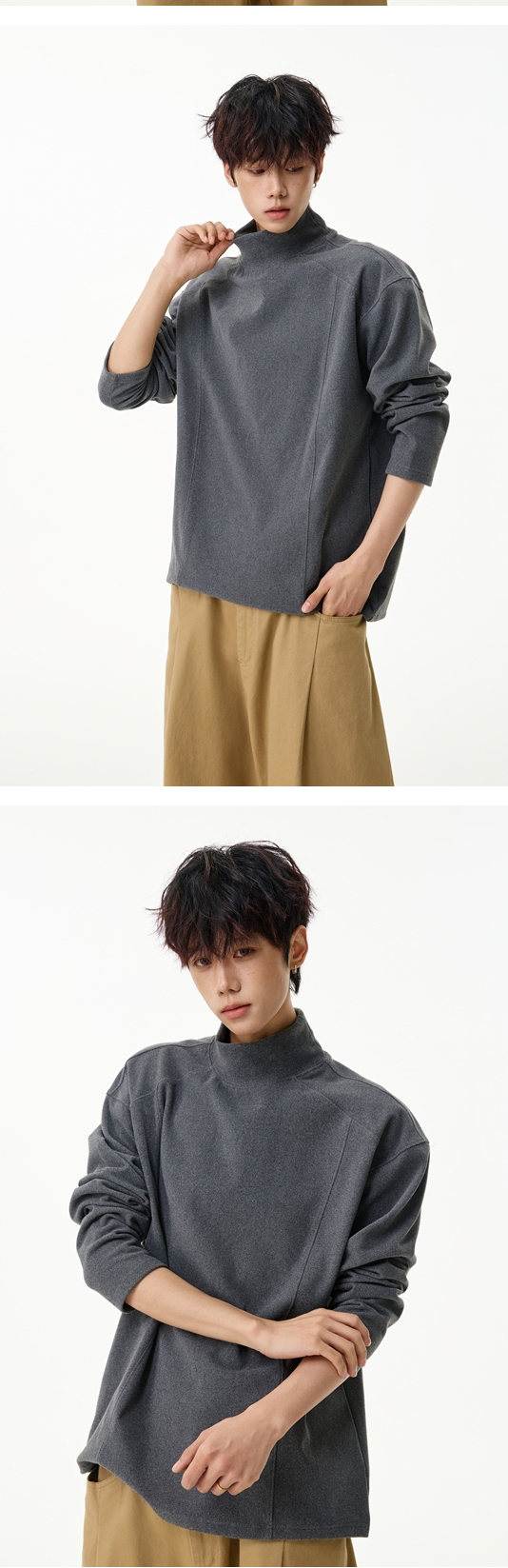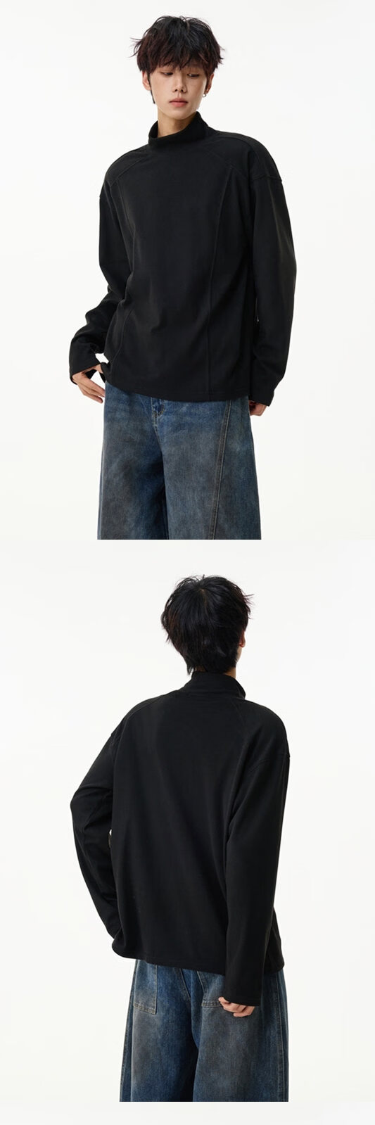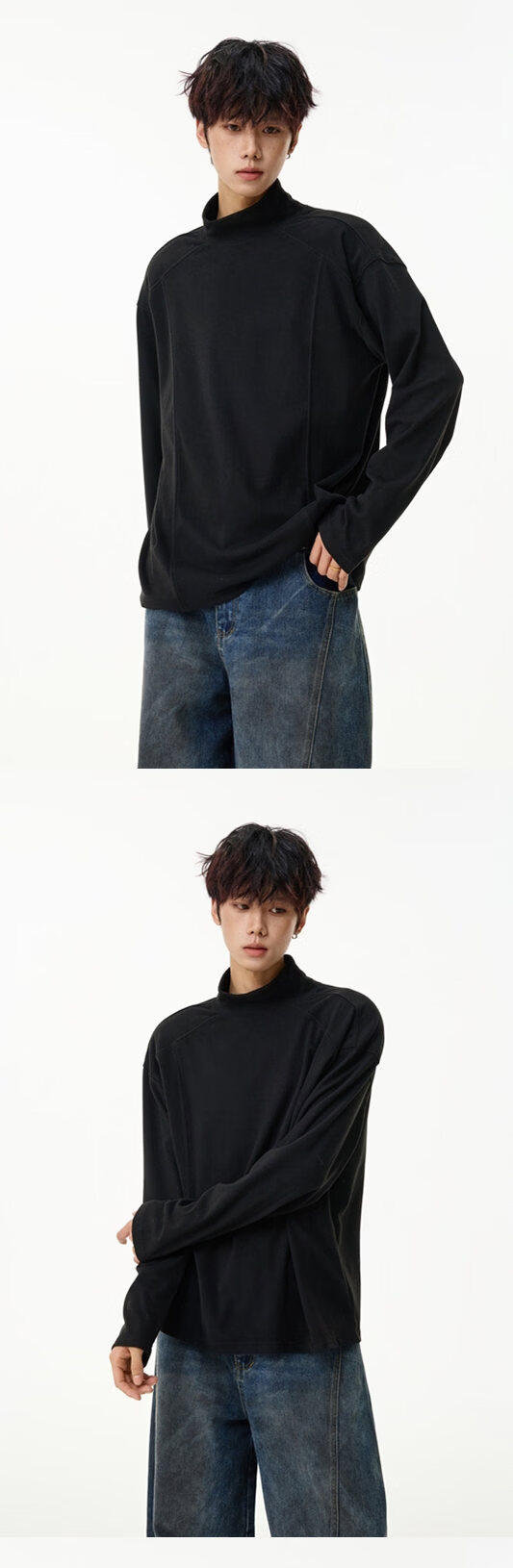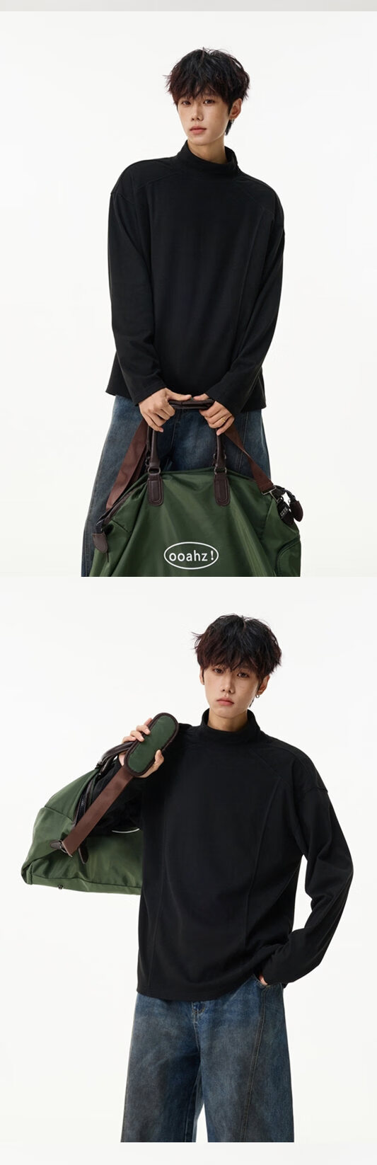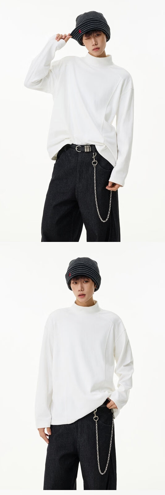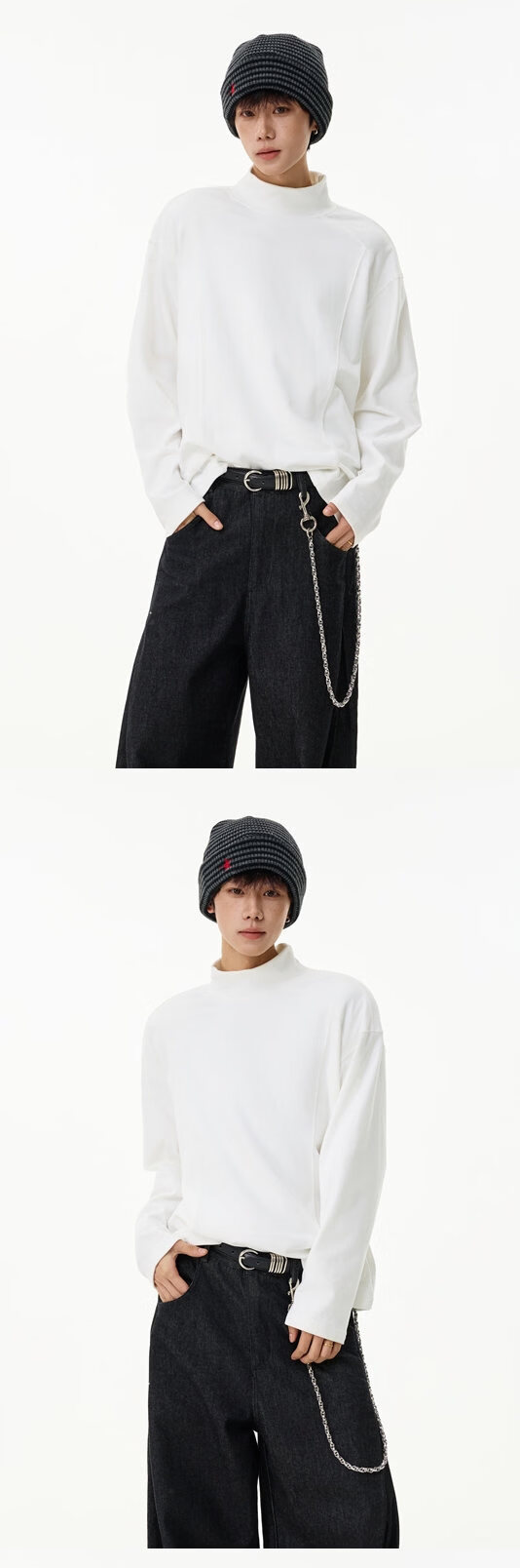 NEW OR MODE灰色高领德绒长袖t恤男女春季美式复古休闲内搭T恤宽松运动打底衫 灰色【高品质】 M 【建议90-110斤】