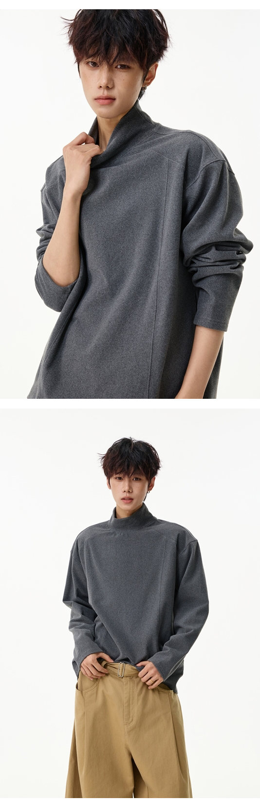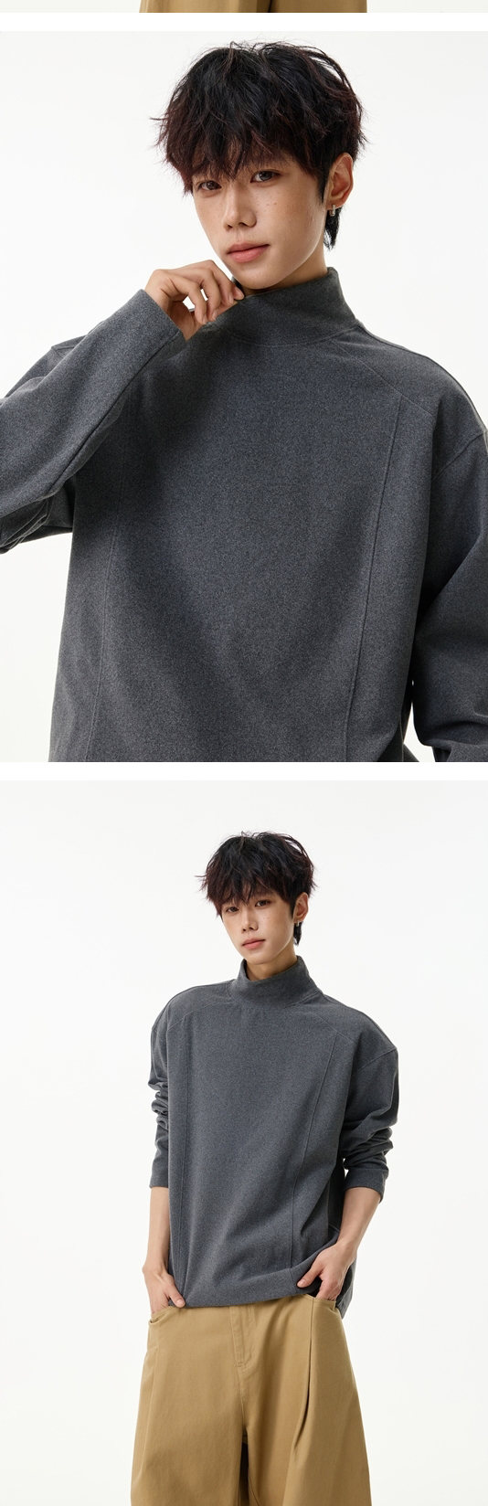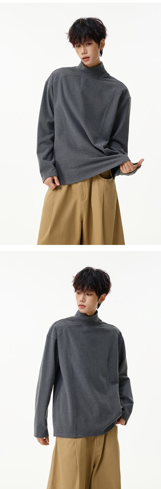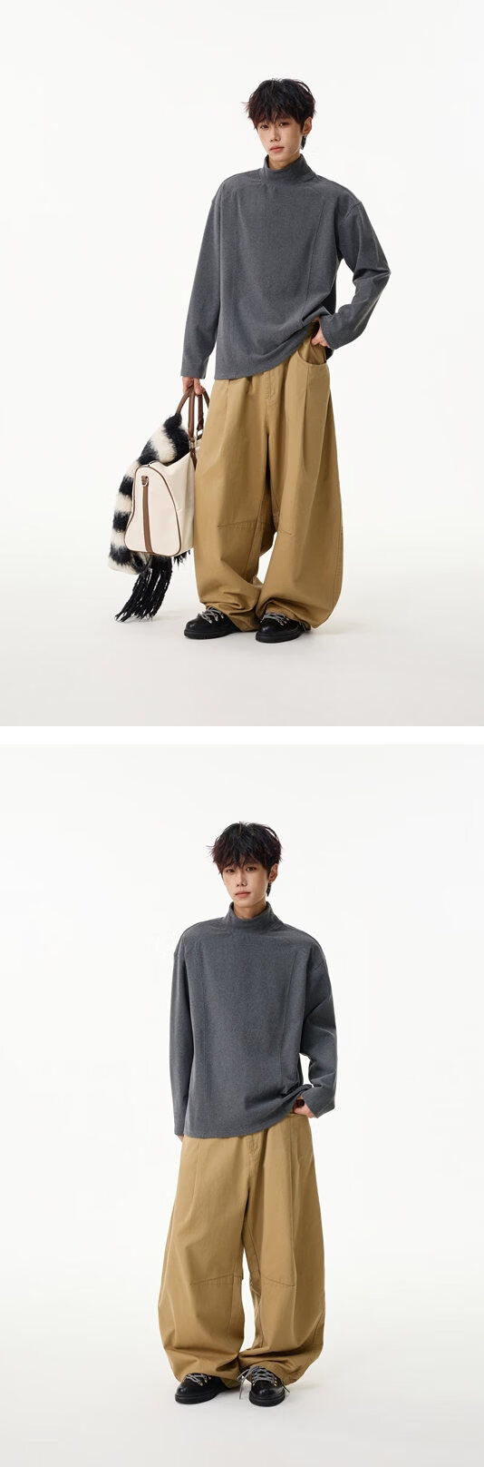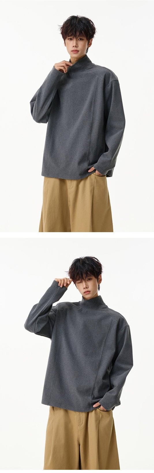 NEW OR MODE灰色高领德绒长袖t恤男女春季美式复古休闲内搭T恤宽松运动打底衫 灰色【高品质】 M 【建议90-110斤】