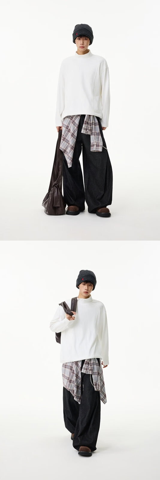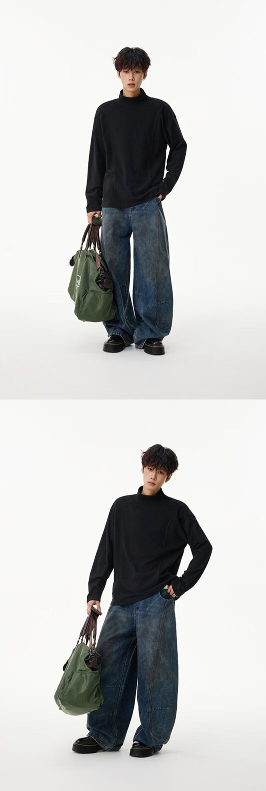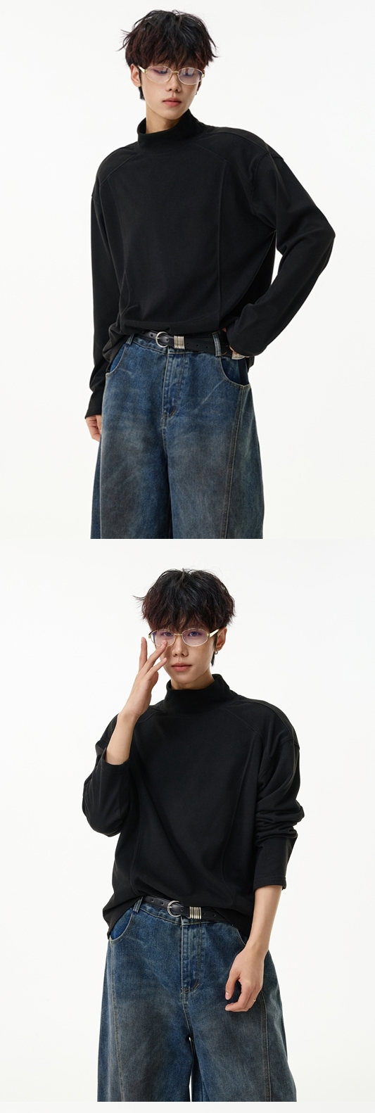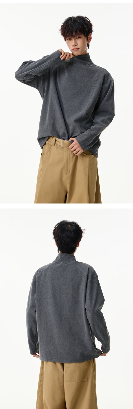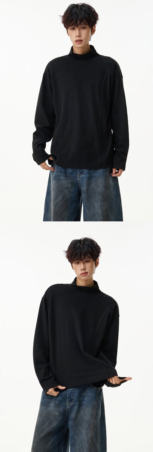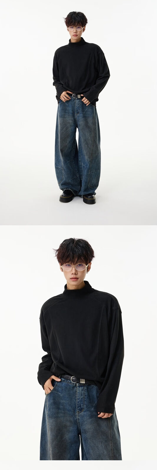 NEW OR MODE灰色高领德绒长袖t恤男女春季美式复古休闲内搭T恤宽松运动打底衫 灰色【高品质】 M 【建议90-110斤】