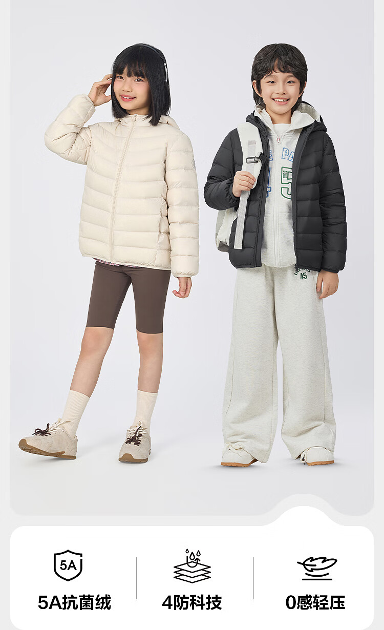 波司登26春季男女童轻薄羽绒服时尚百搭立领连帽四防外套T260135540
