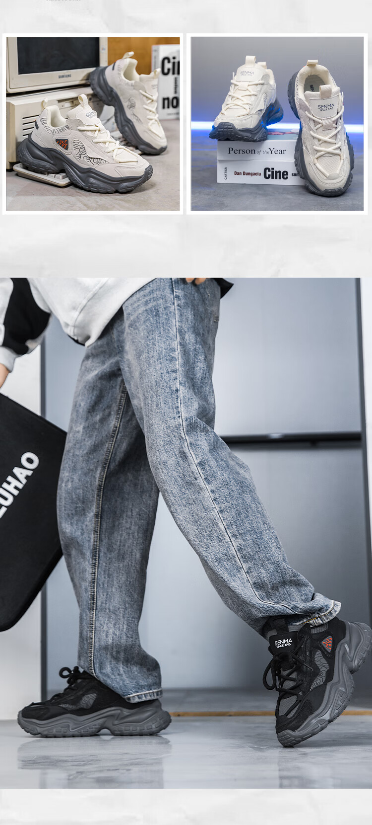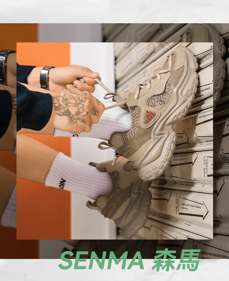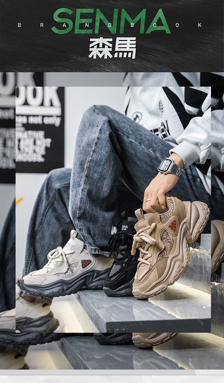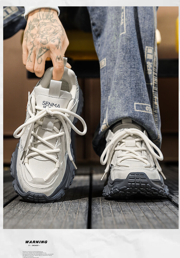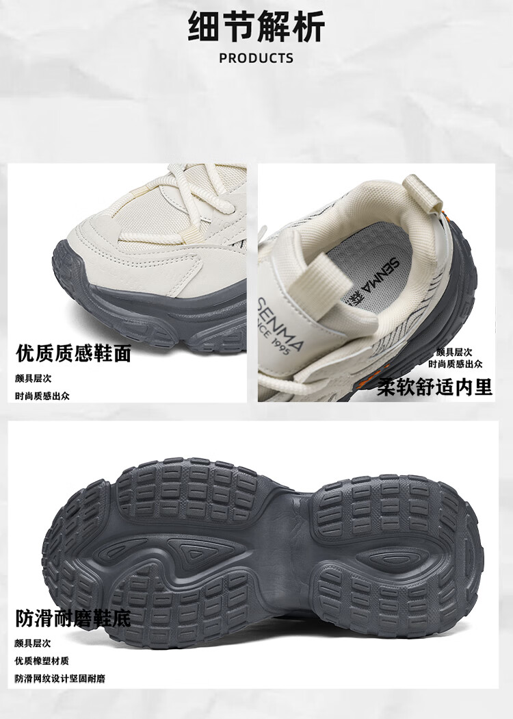 森馬男鞋2026春季潮牌百搭防滑耐磨登山鞋青少年运动厚底休闲老爹潮鞋 米灰【基础款】 39 标准码数/现货秒发