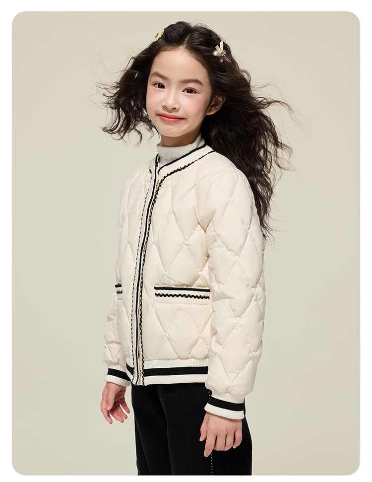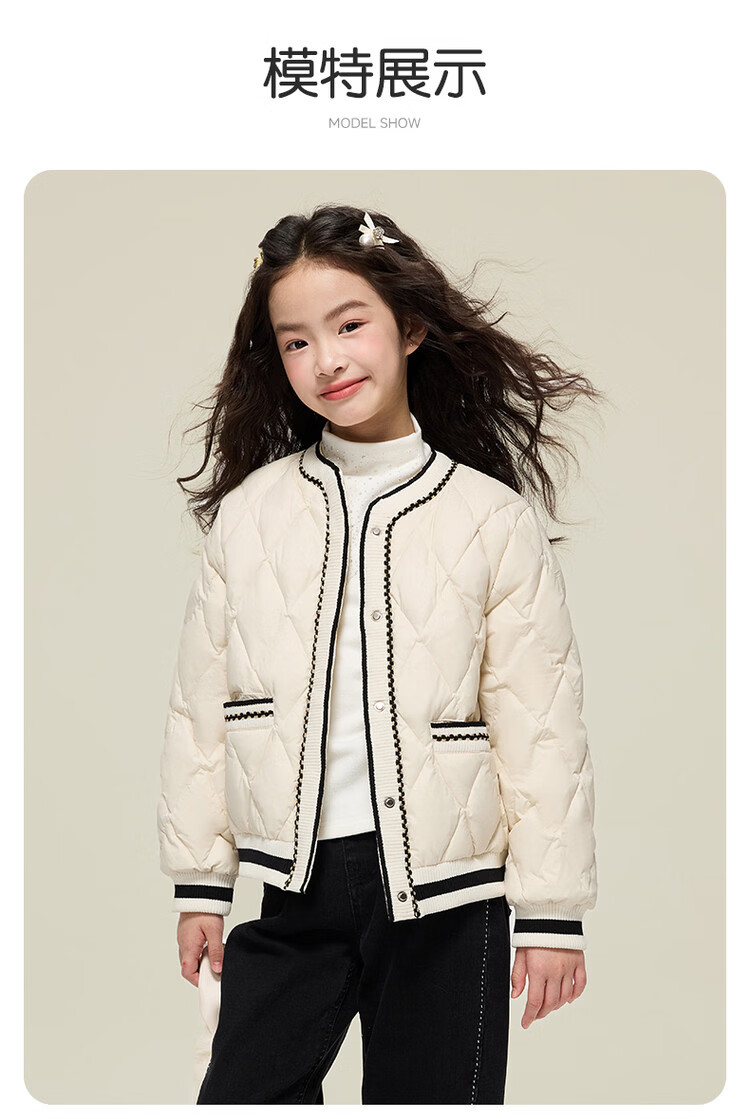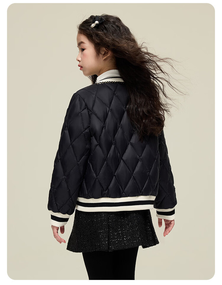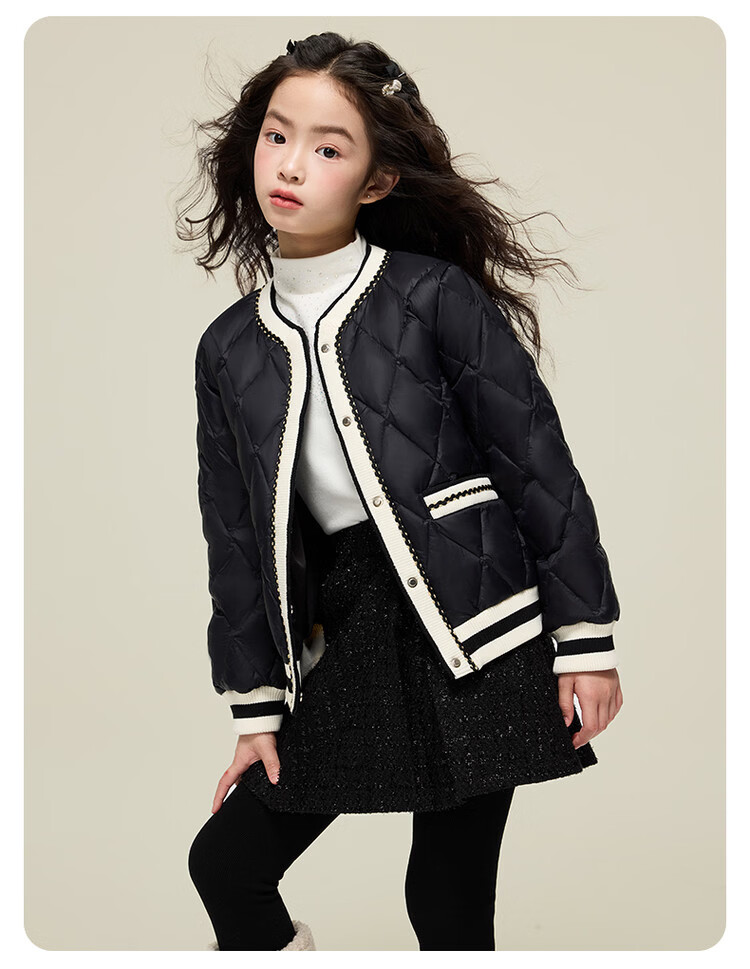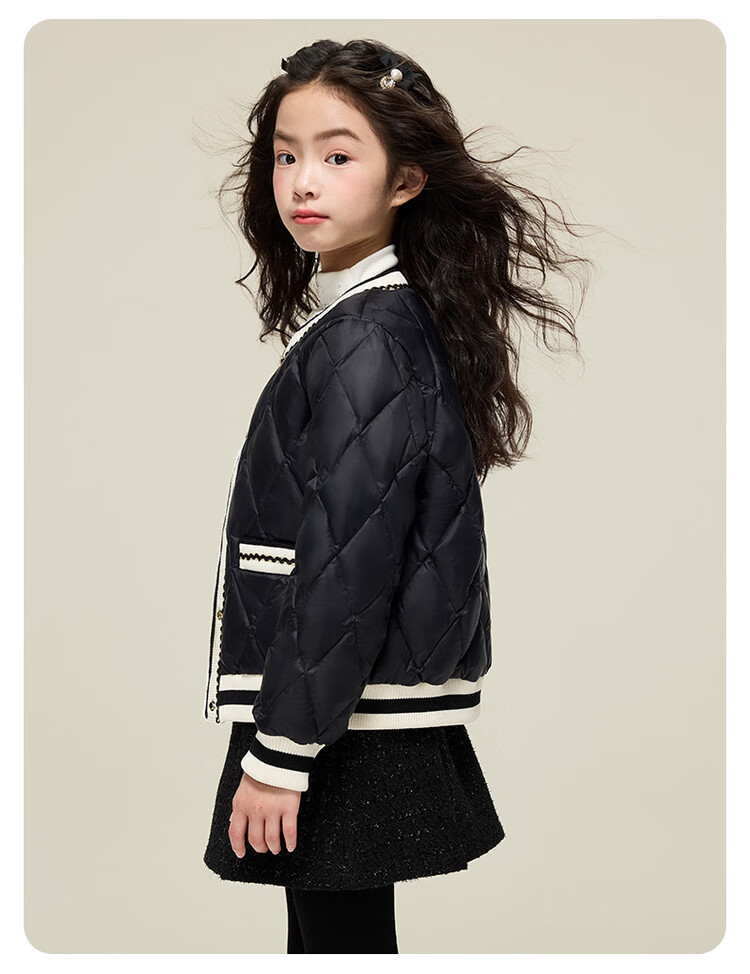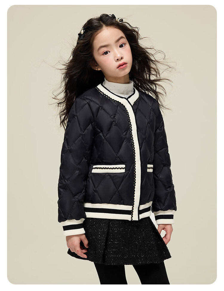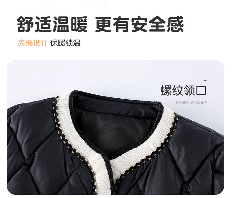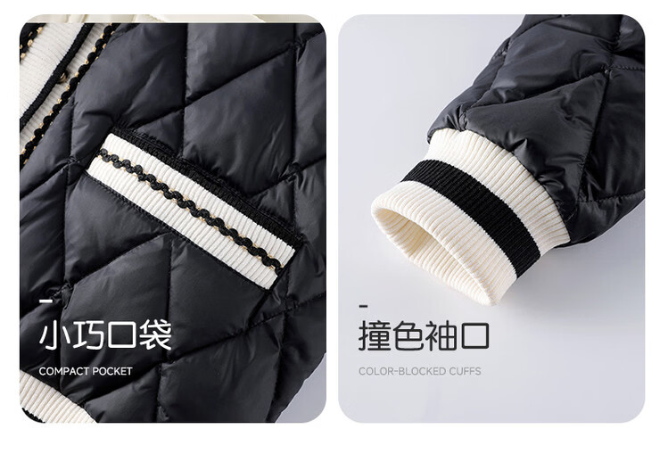 媛媛公主女童韩系小香风棉服秋冬新品中大童撞色百搭棉衣儿童保暖校服外套 黑色 110