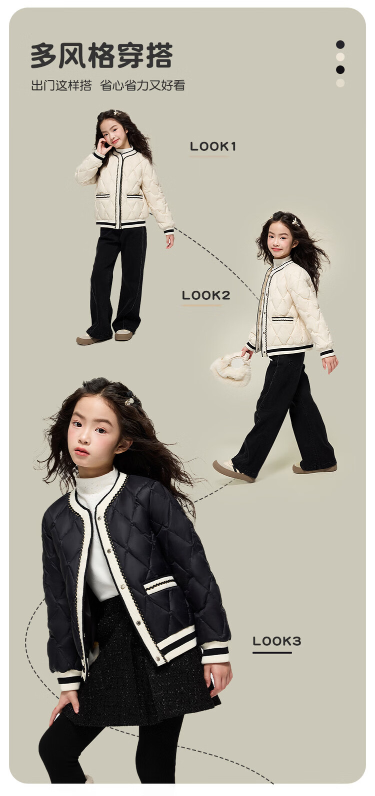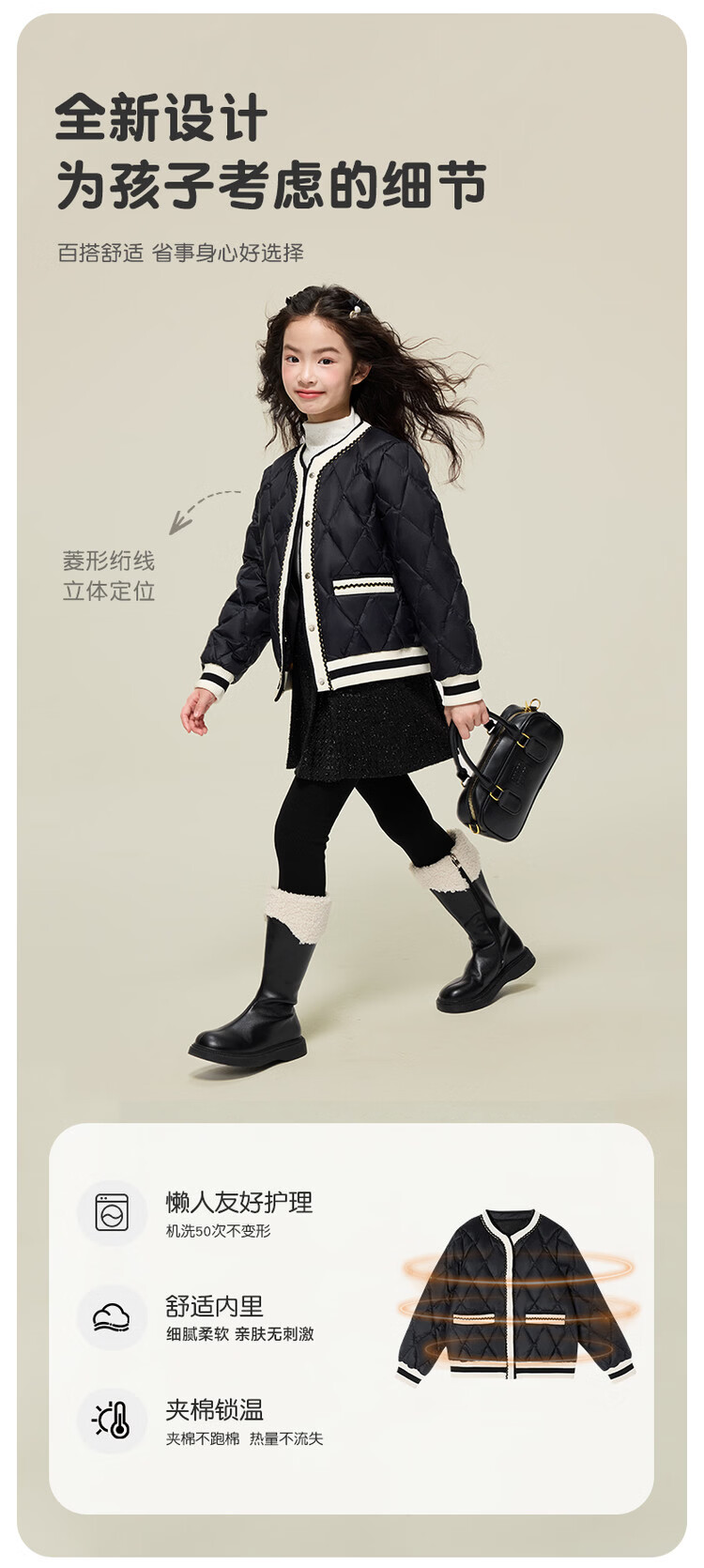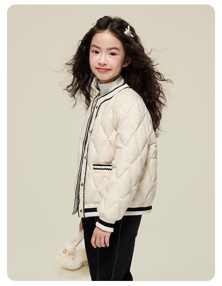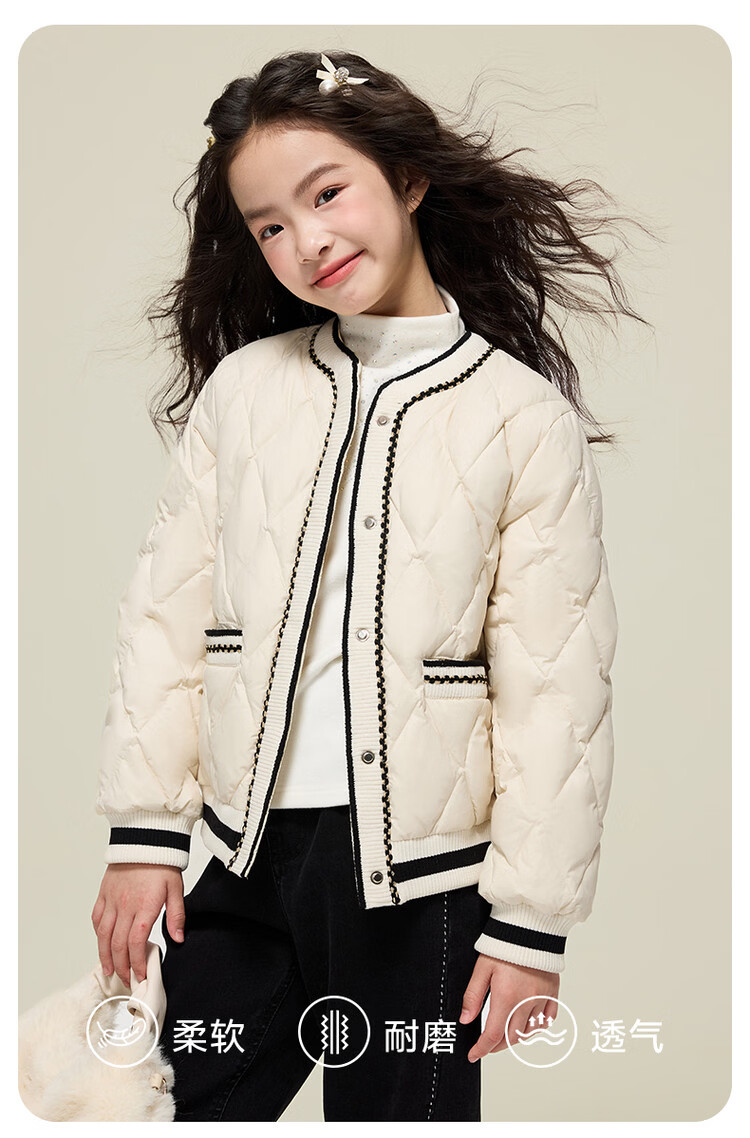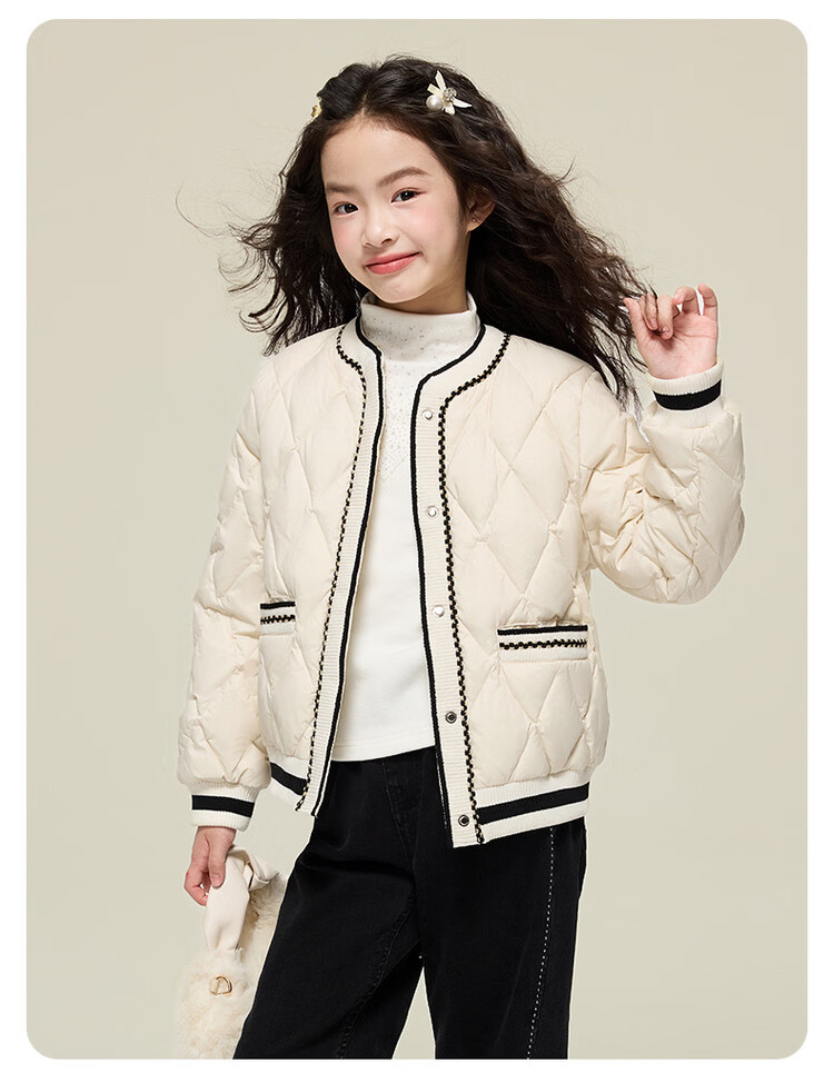 媛媛公主女童韩系小香风棉服秋冬新品中大童撞色百搭棉衣儿童保暖校服外套 黑色 110