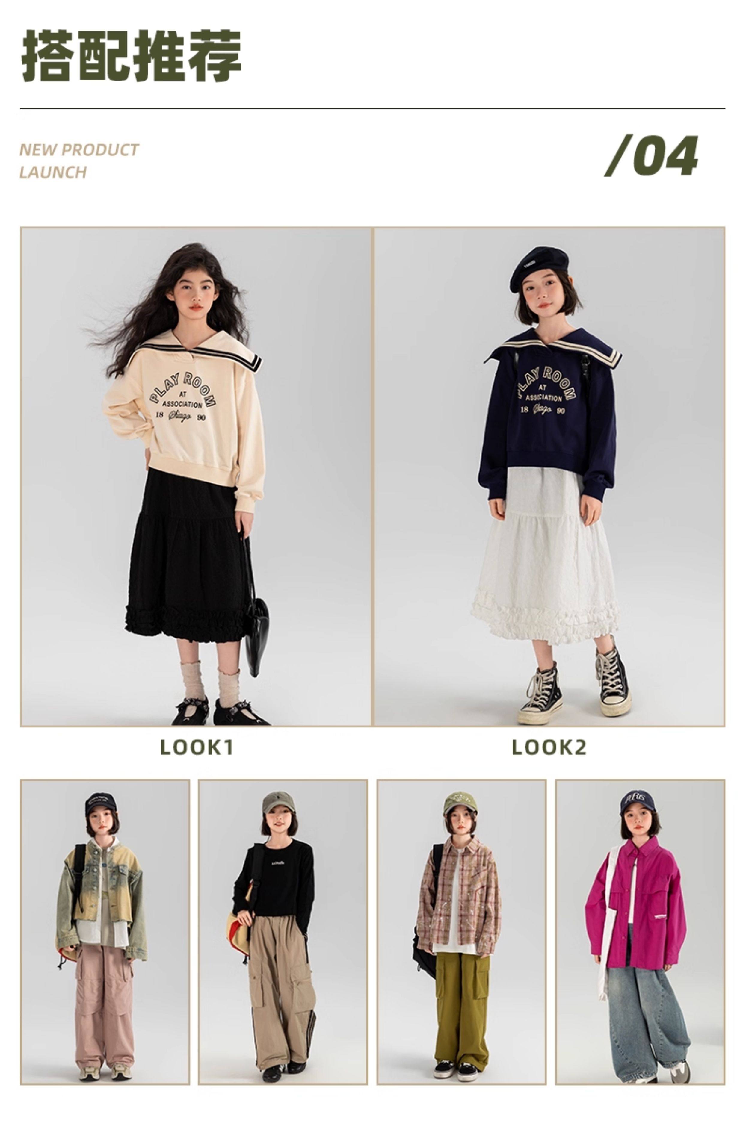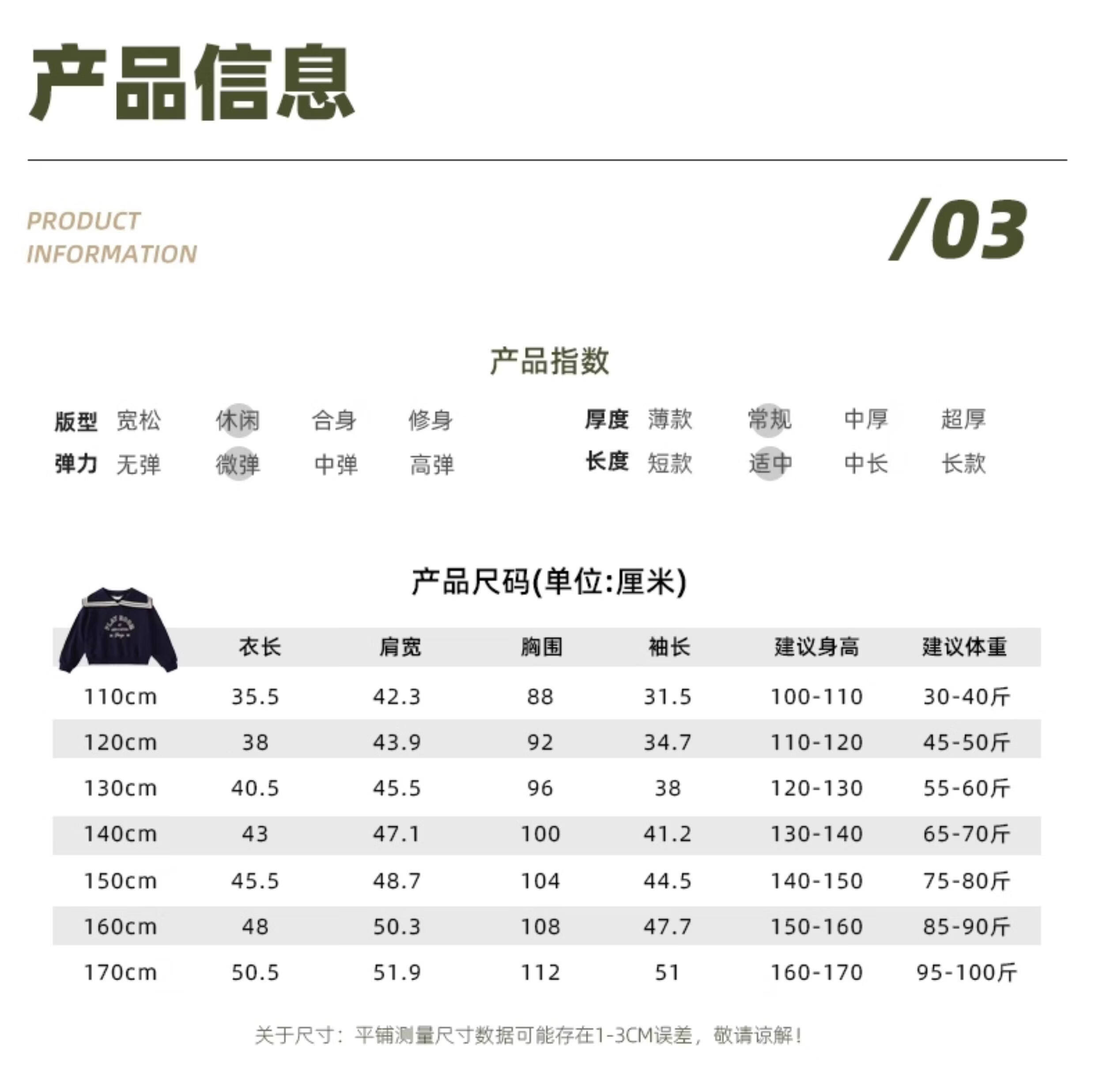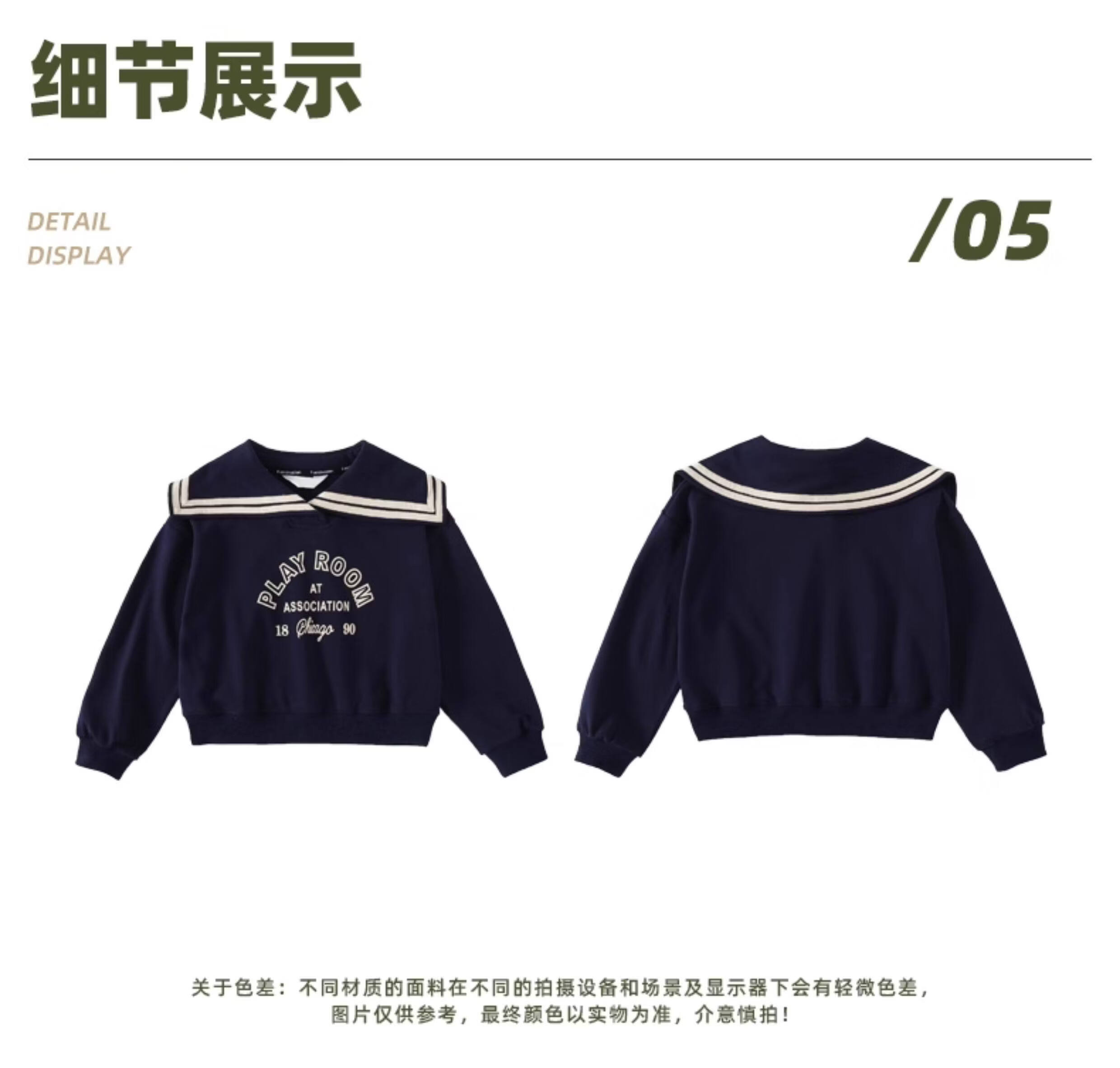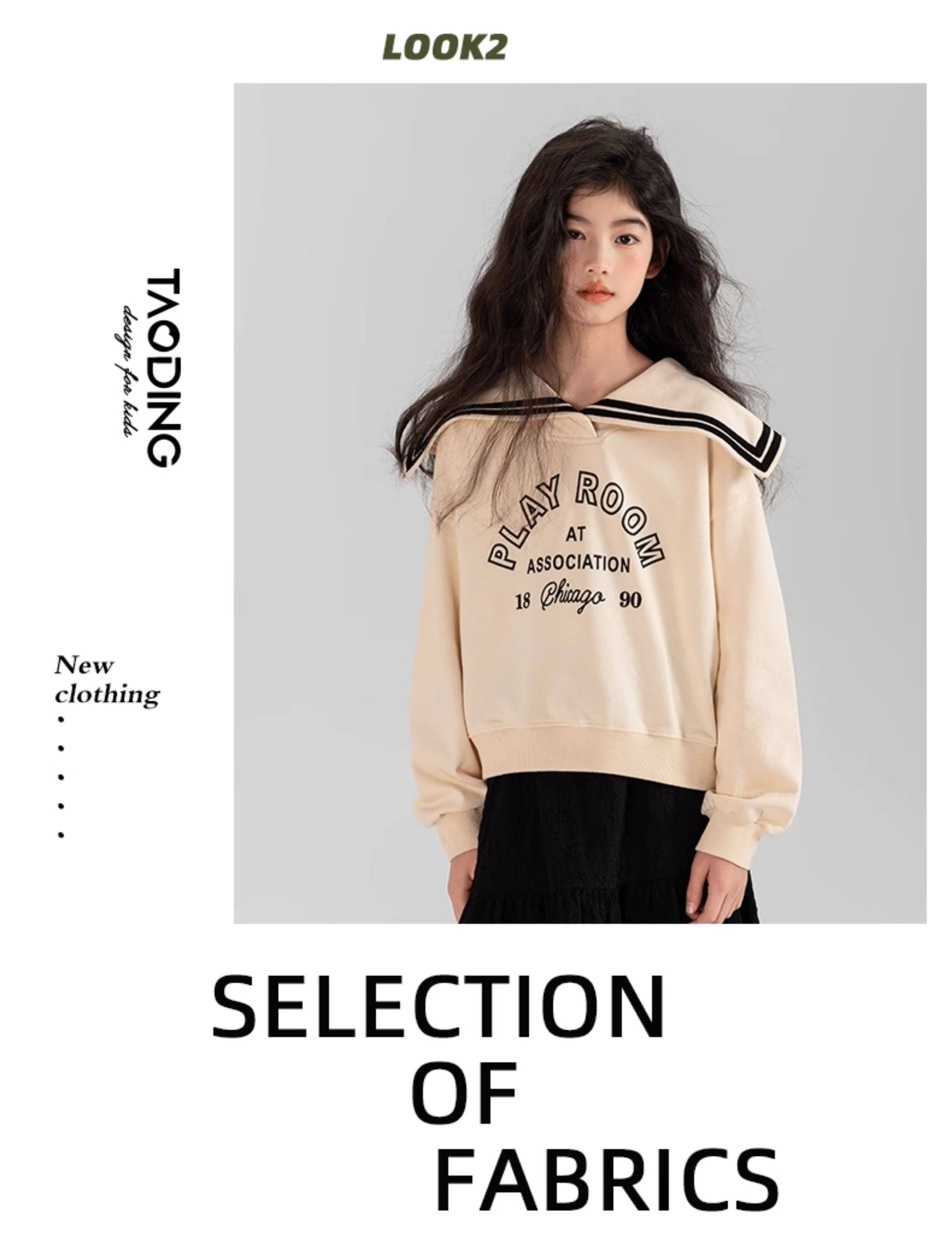 淘町女童卫衣春秋装新款中大童法式海军领学院风字母印花ins上衣 藏青色 130