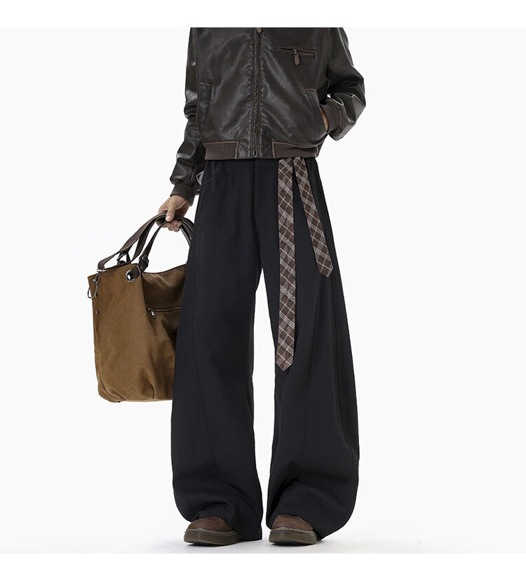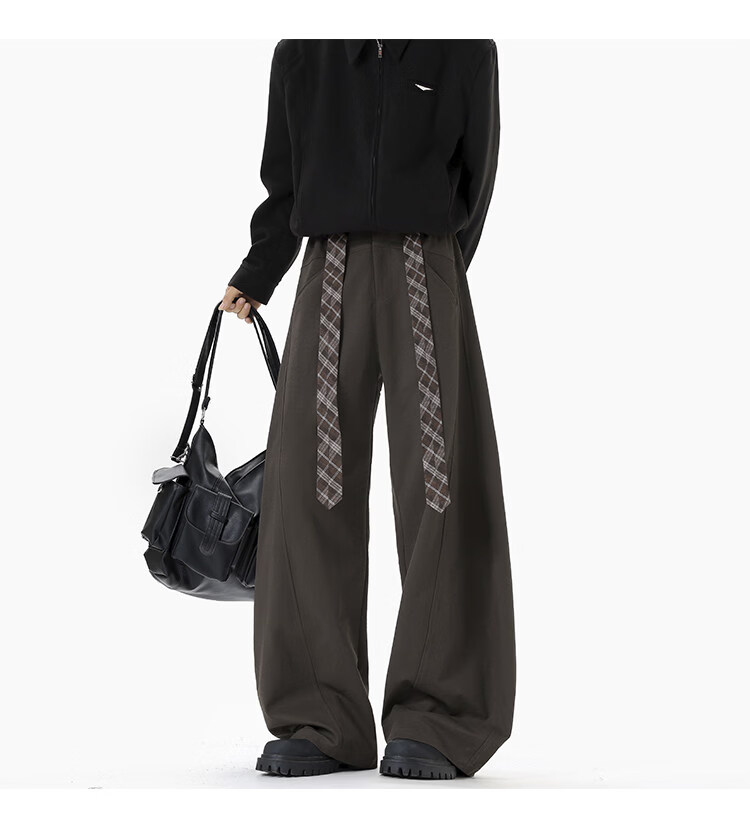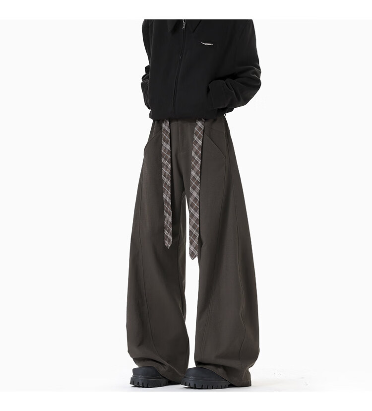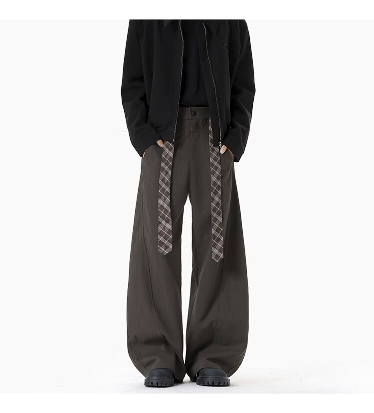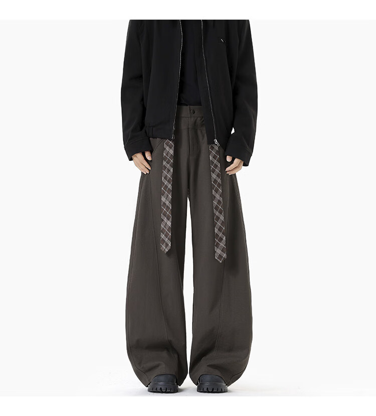 NEW OR MODE老钱风复古格纹腰带弯刀西裤男春秋季新款高级感宽松阔腿休闲裤子 深棕色【高品质】 M 【建议90-110斤】