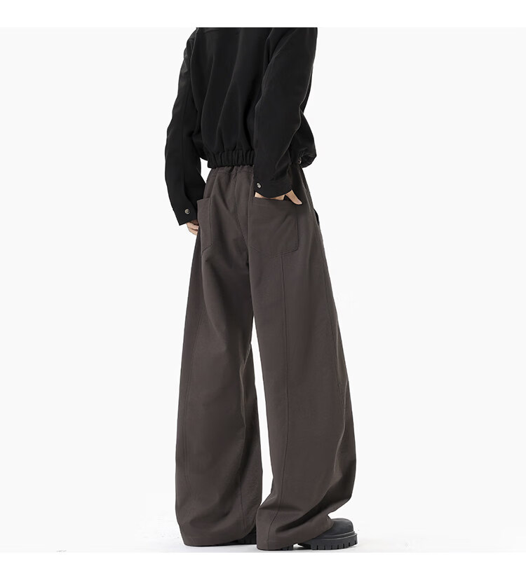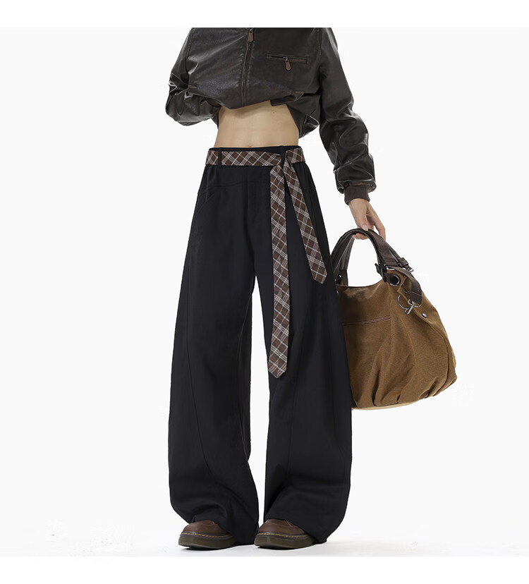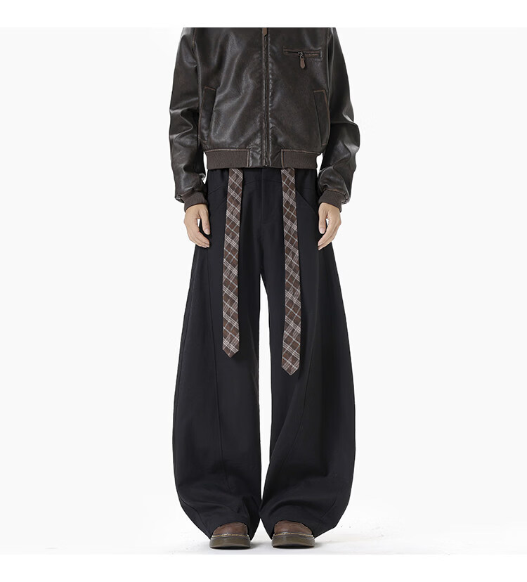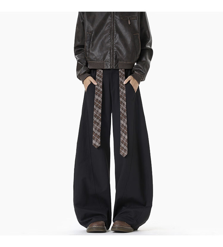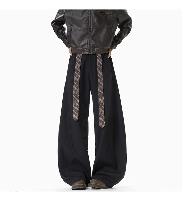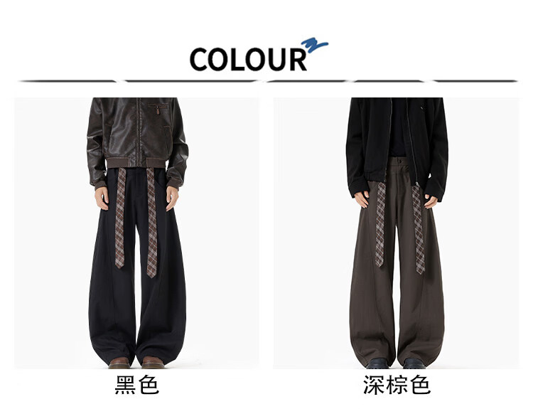 NEW OR MODE老钱风复古格纹腰带弯刀西裤男春秋季新款高级感宽松阔腿休闲裤子 深棕色【高品质】 M 【建议90-110斤】
