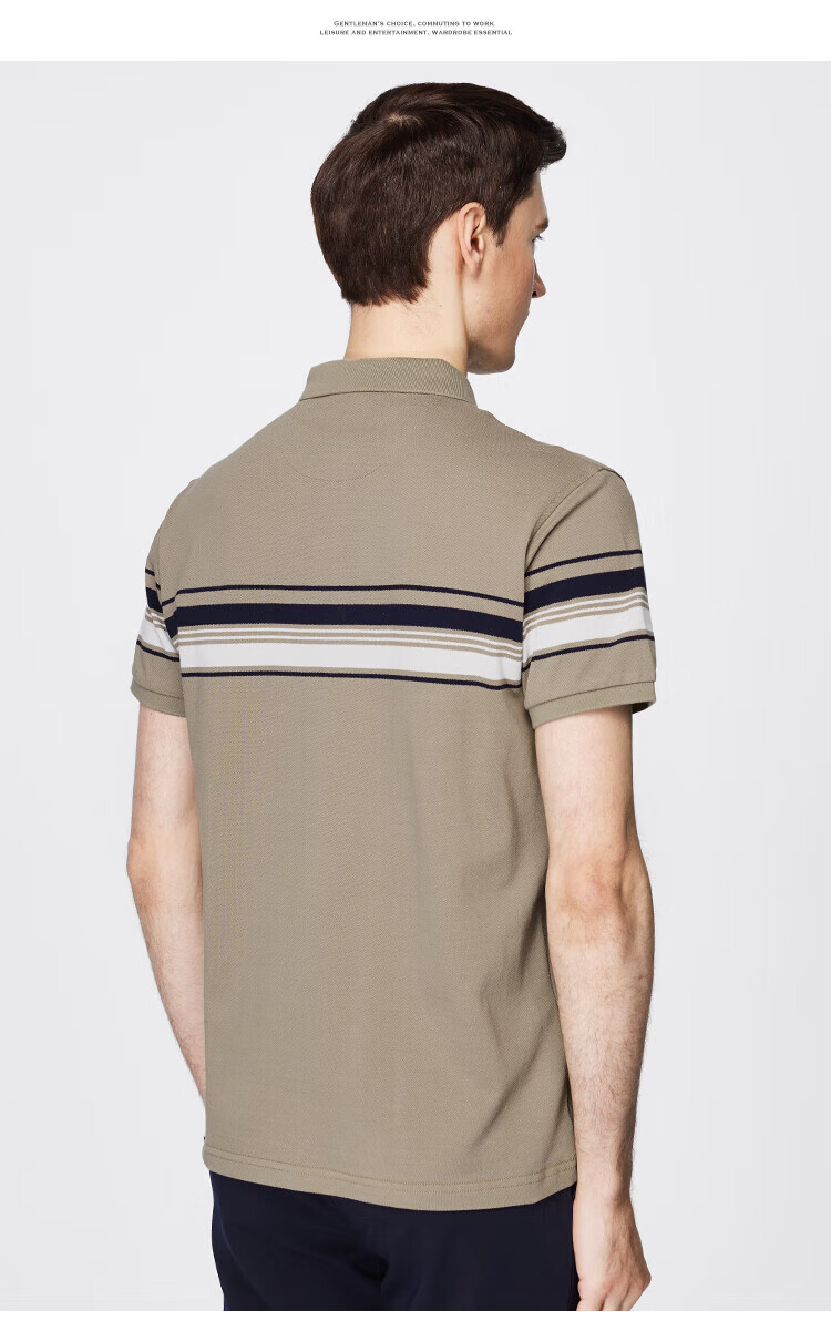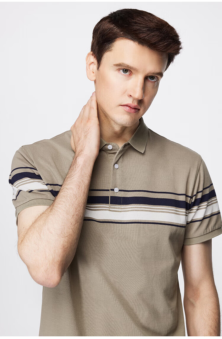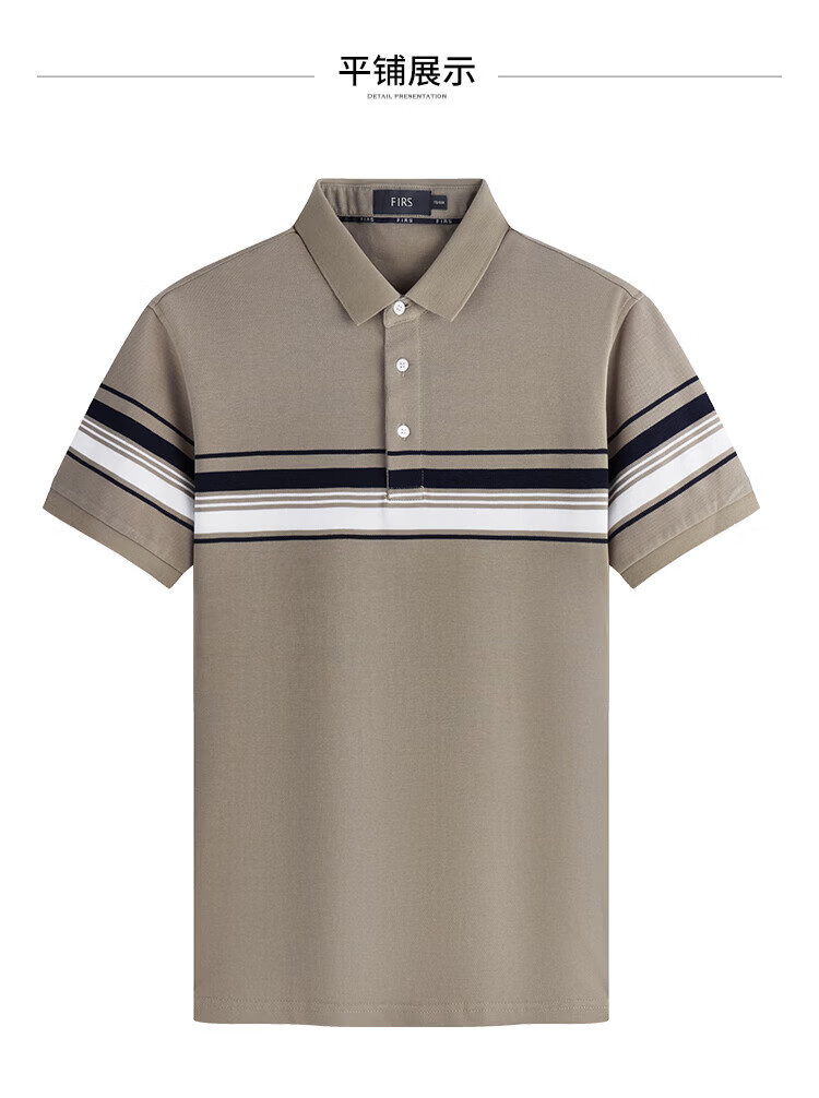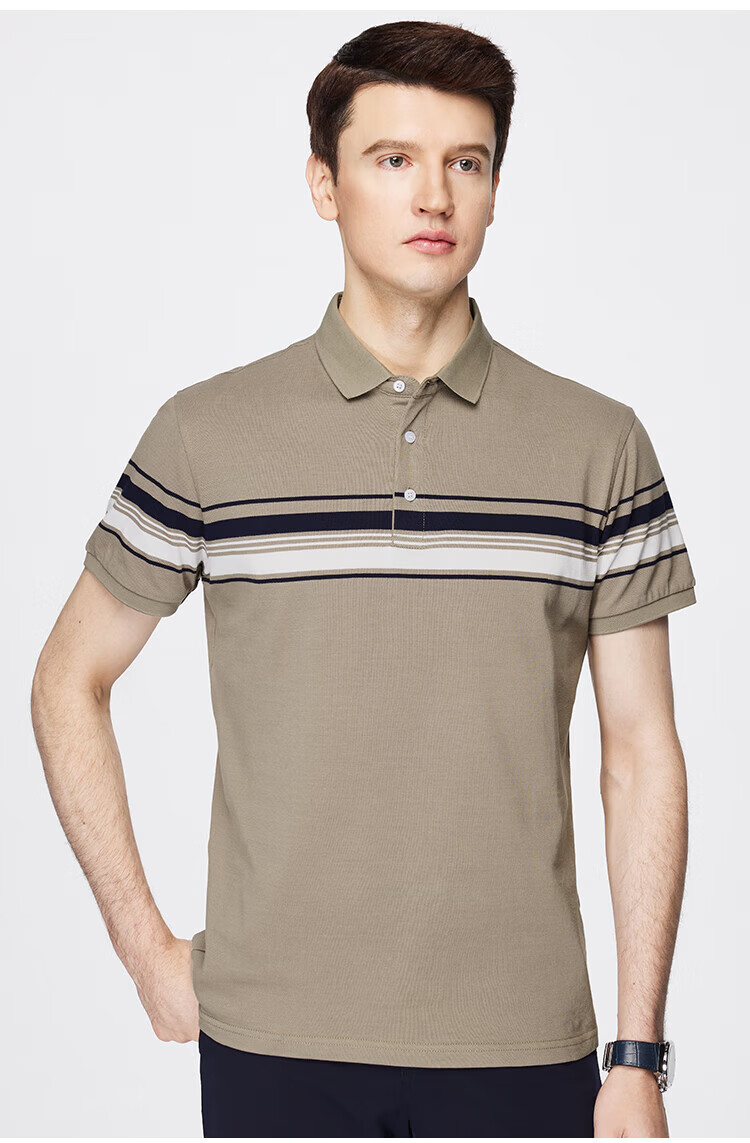 杉杉(FIRS)【纯棉色织】短袖T恤男撞色条纹POLO领商务休闲透气亲肤弹力上衣 灰绿 M (170/88A)