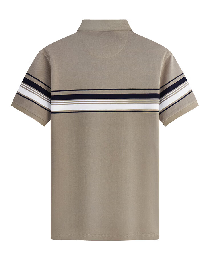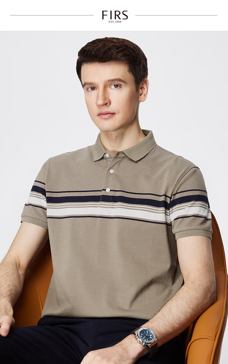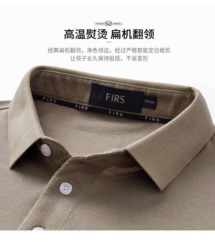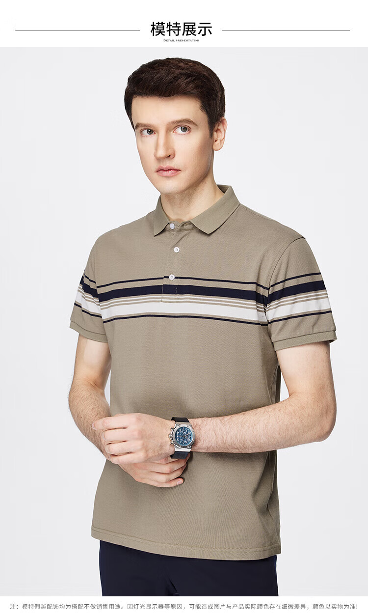 杉杉(FIRS)【纯棉色织】短袖T恤男撞色条纹POLO领商务休闲透气亲肤弹力上衣 灰绿 M (170/88A)