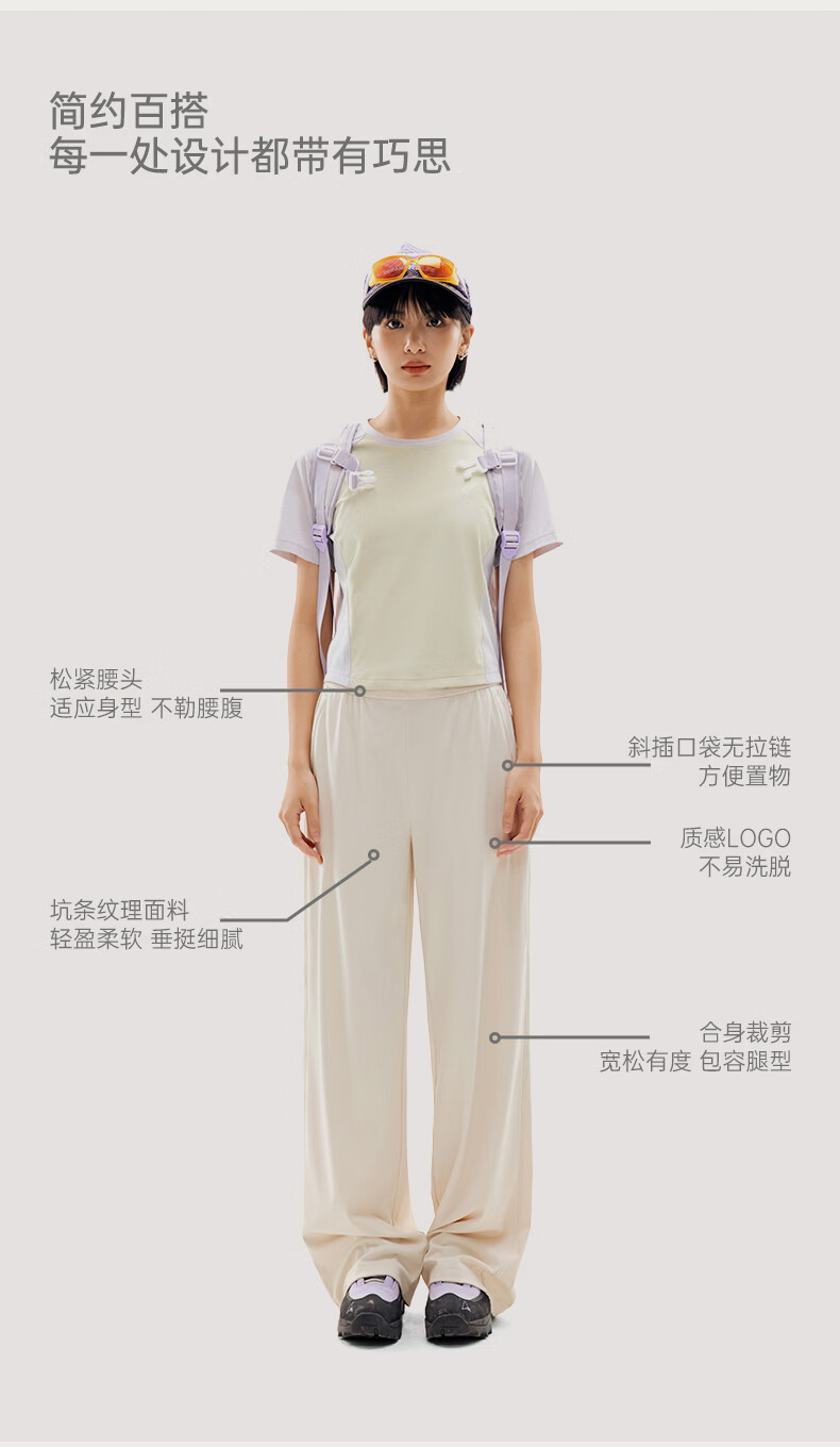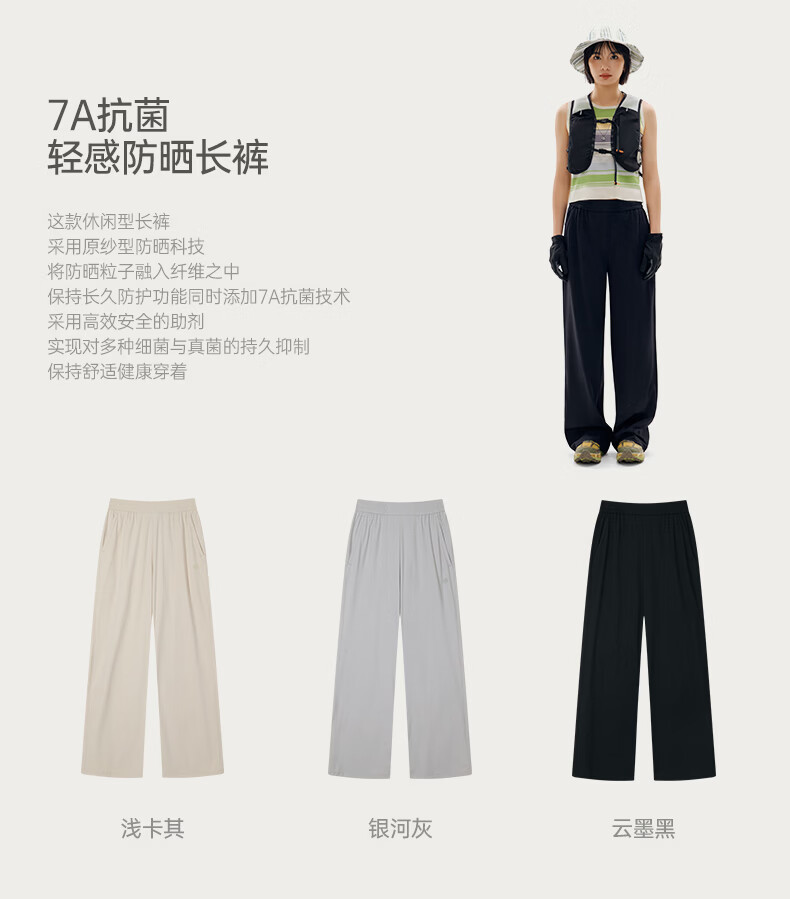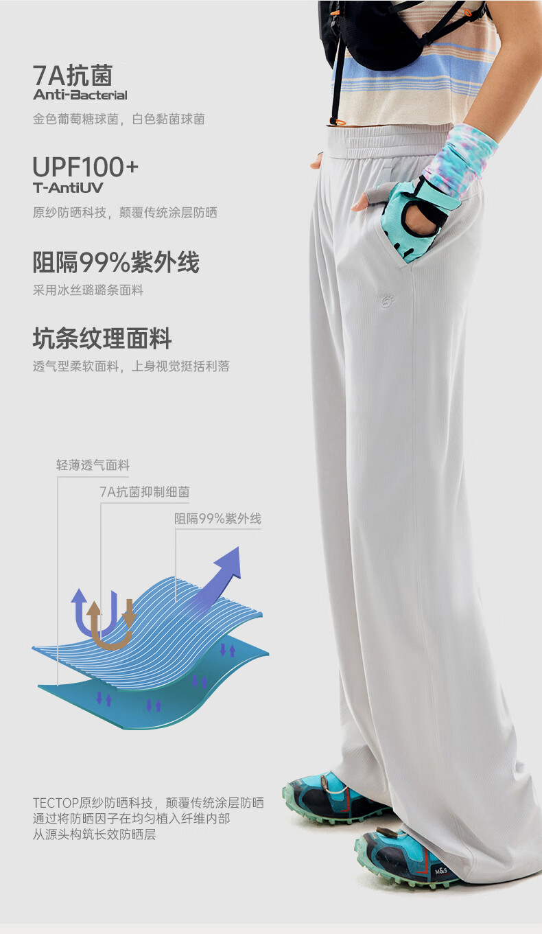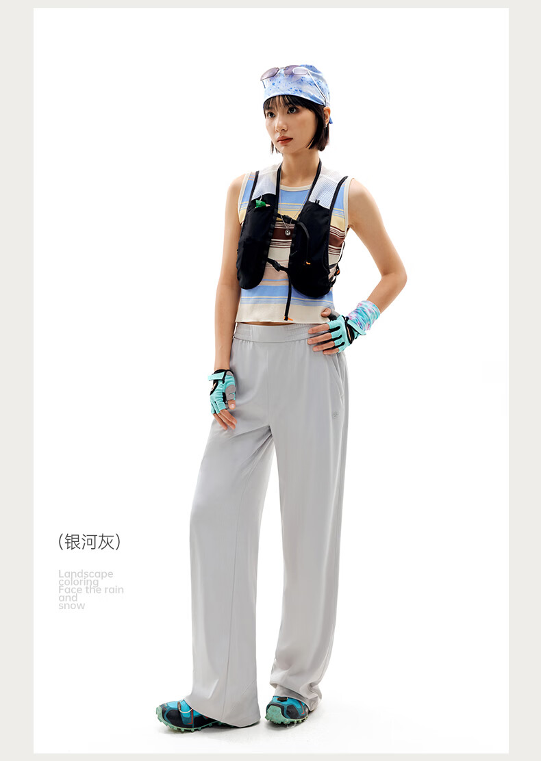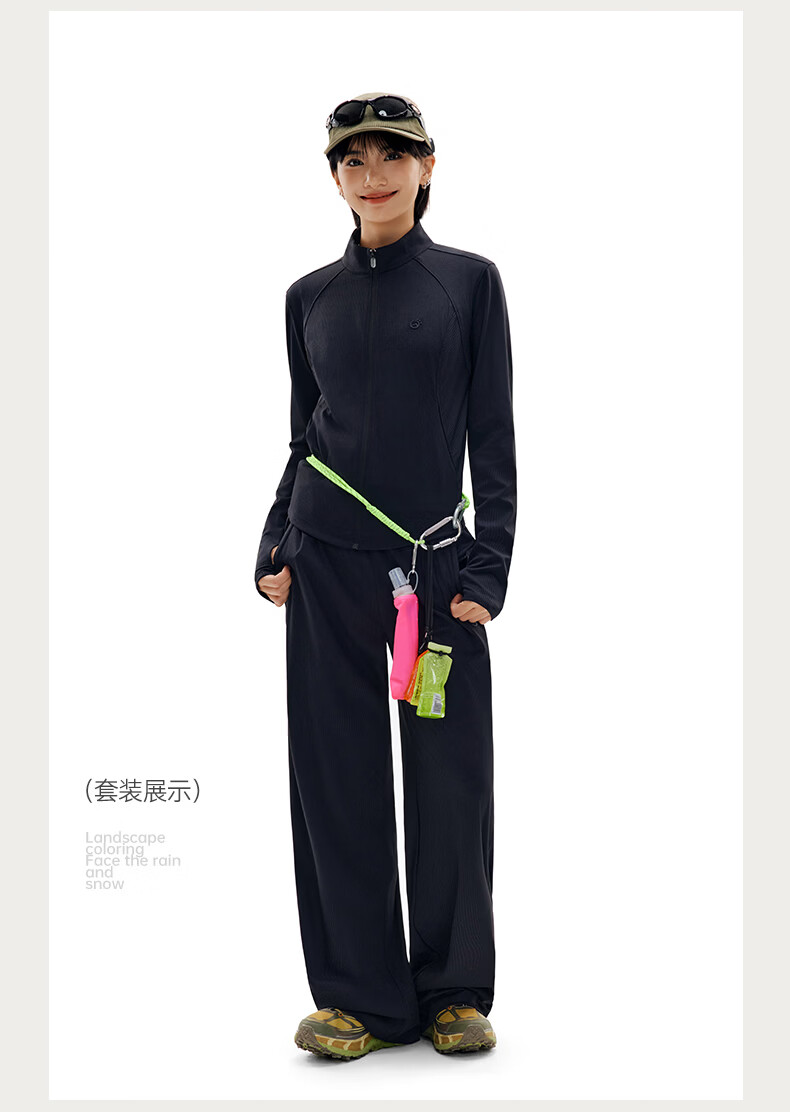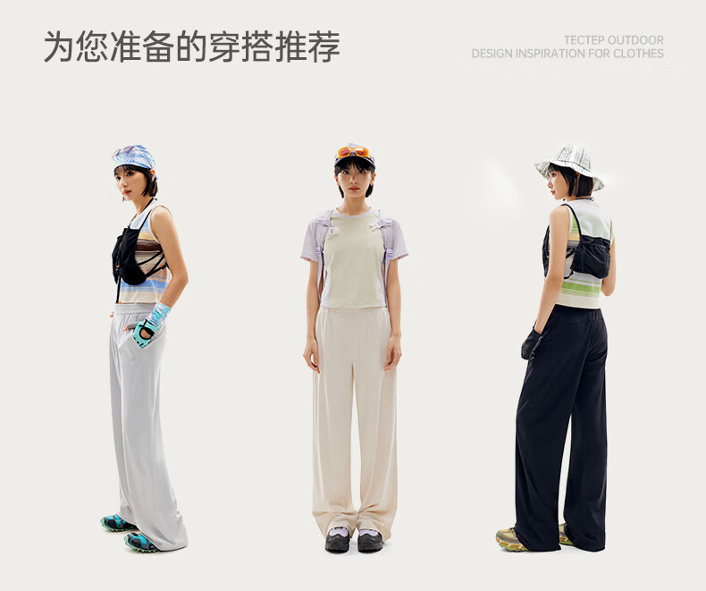 探拓(TECTOP)26新款防晒抗菌直筒长裤女休闲阔腿裤户外健身运动裤 云墨黑 S
