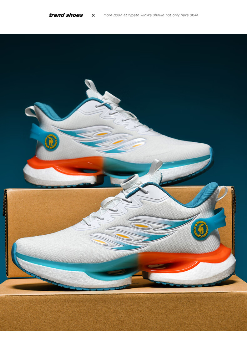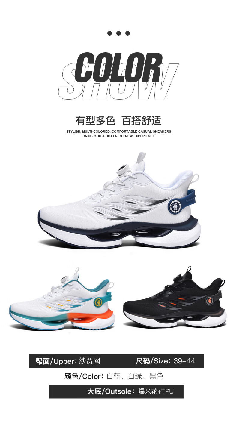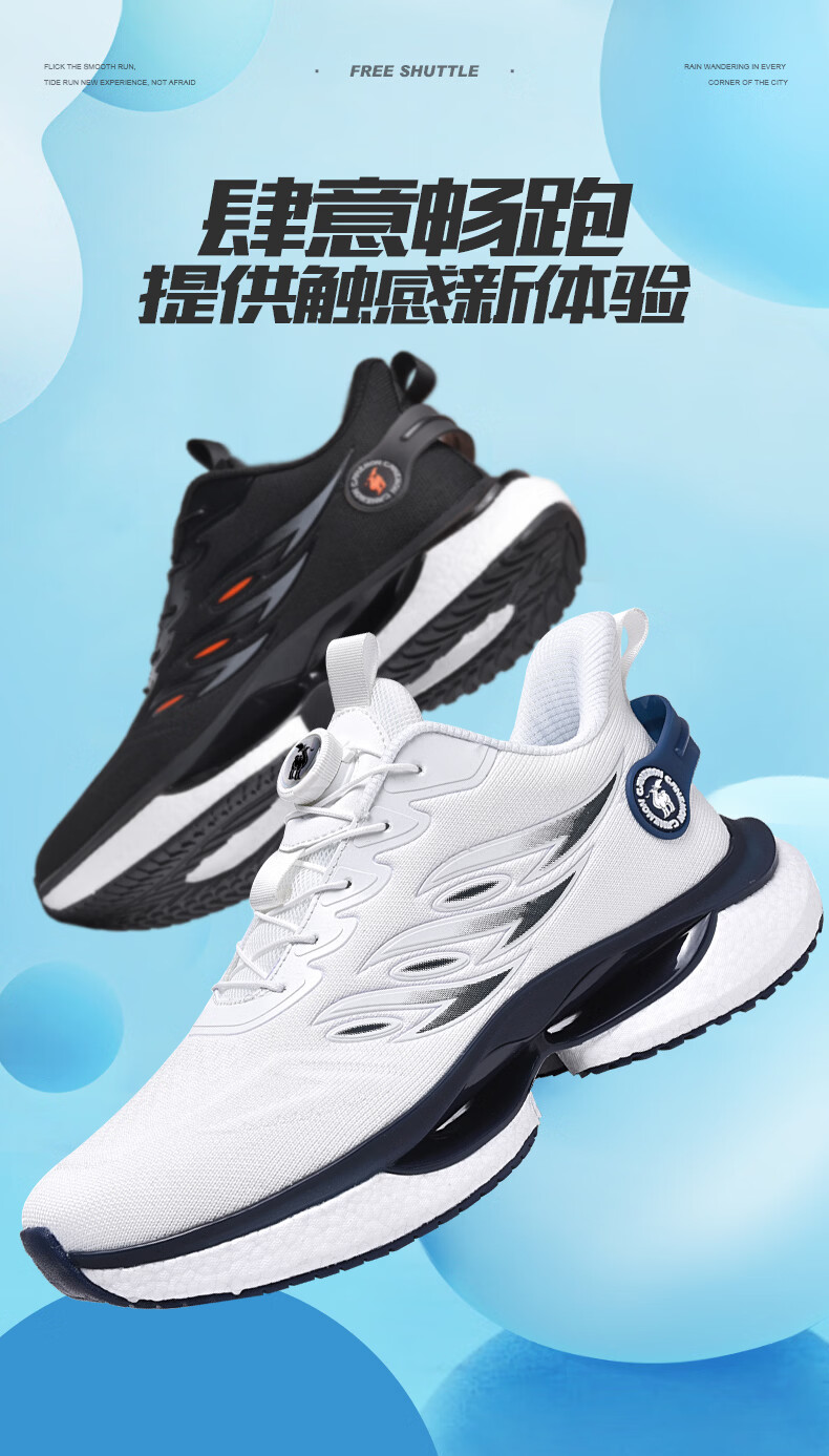保罗骆驼运动鞋男夏季新款透气跑步鞋男减震轻便跑鞋防滑耐磨休闲鞋男 白蓝 38
