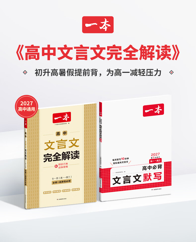 2027一本高中文言文完全解读高中语文文言文全解高中语文必背古诗文译注及赏析详解必备高一高二高三文言文全解一本通人教版必修选修全解全释全析古诗文翻译教辅图书 文言文全解+·文言文/古诗阅读训练(高1)