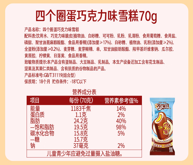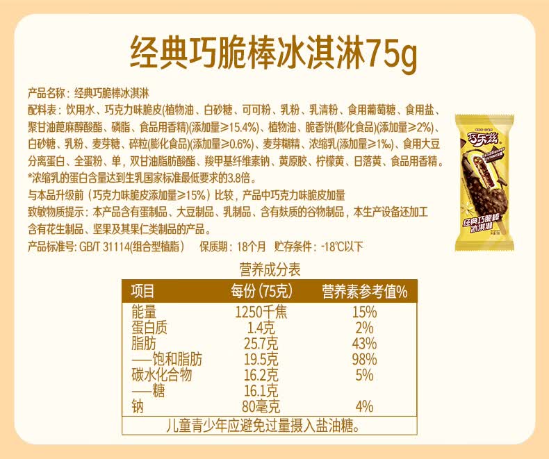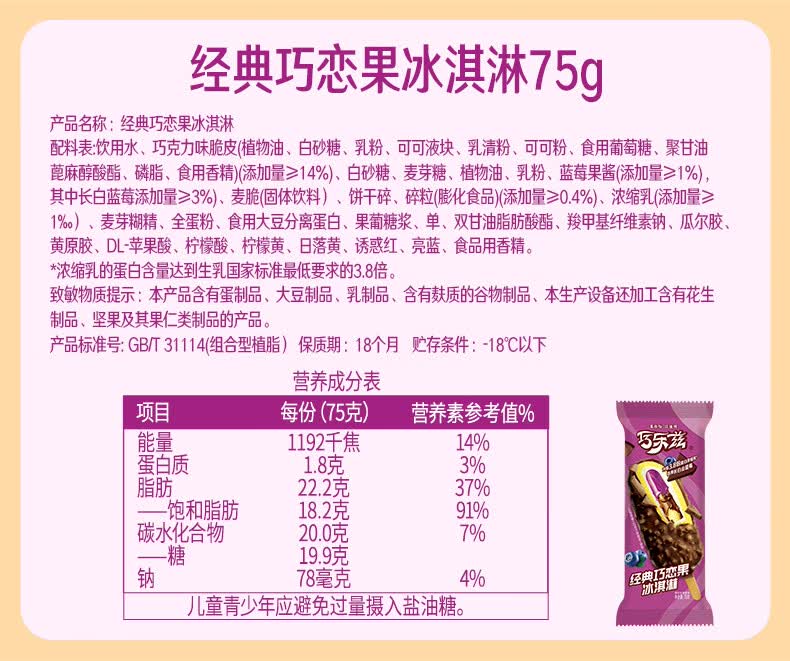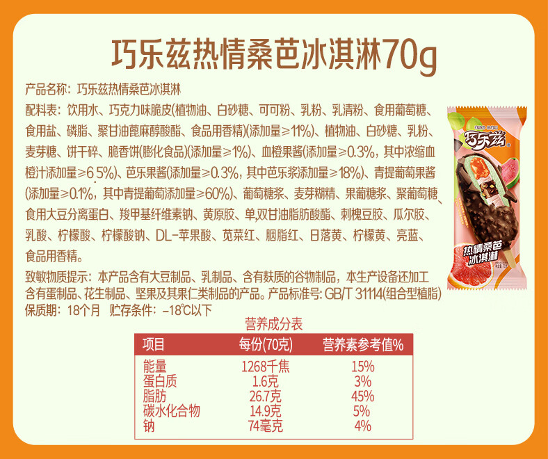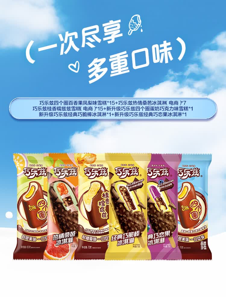 伊利王鹤棣同款 巧乐兹热情桑芭桂香糯兹兹巧脆棒巧恋果 冰淇淋雪糕 40支(2735g)