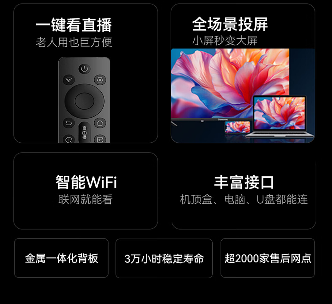 长虹电视43D55H-G1 43英寸 智能网络无线投屏 一键看直播 智能平板液晶电视机 一级能效 43英寸