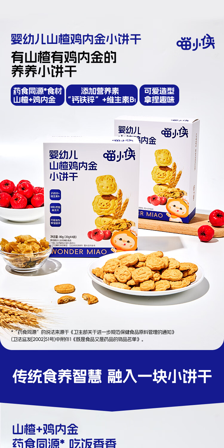 喵小侠婴幼儿山楂鸡内金小饼干80g婴标儿童零辅食手指饼干 婴幼儿山楂鸡内金小饼干80g*2盒