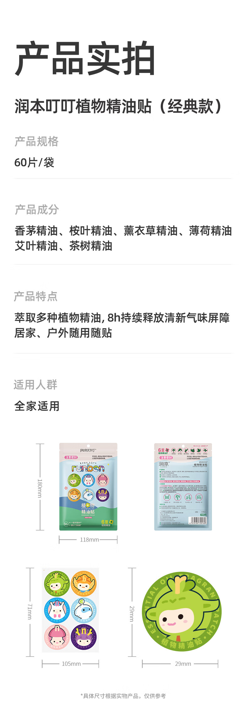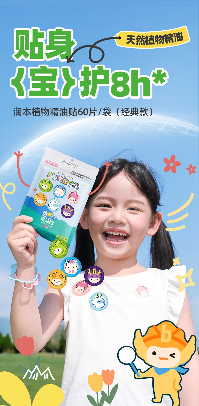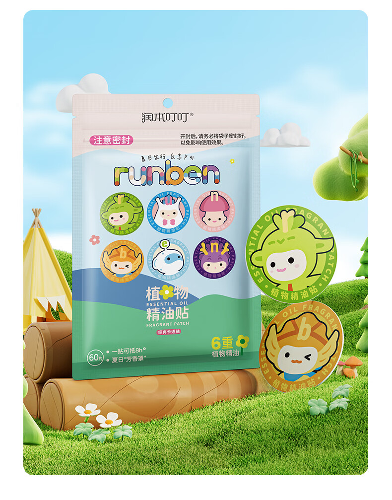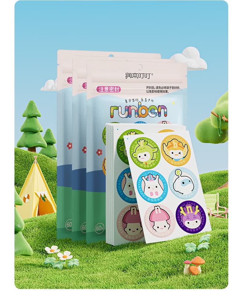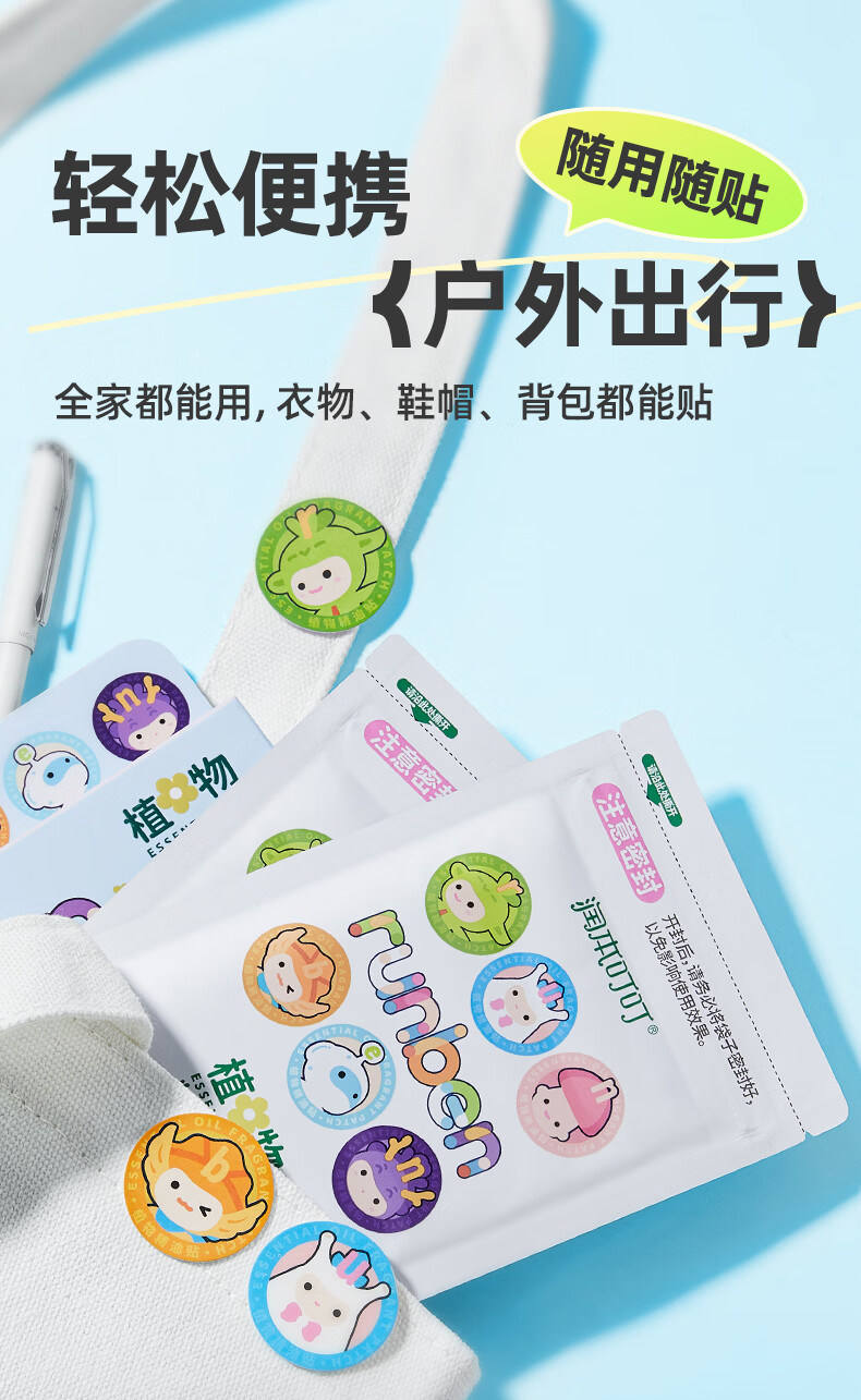 润本植物精油防护贴婴儿童卡通贴宝宝户外防护 60贴 1袋