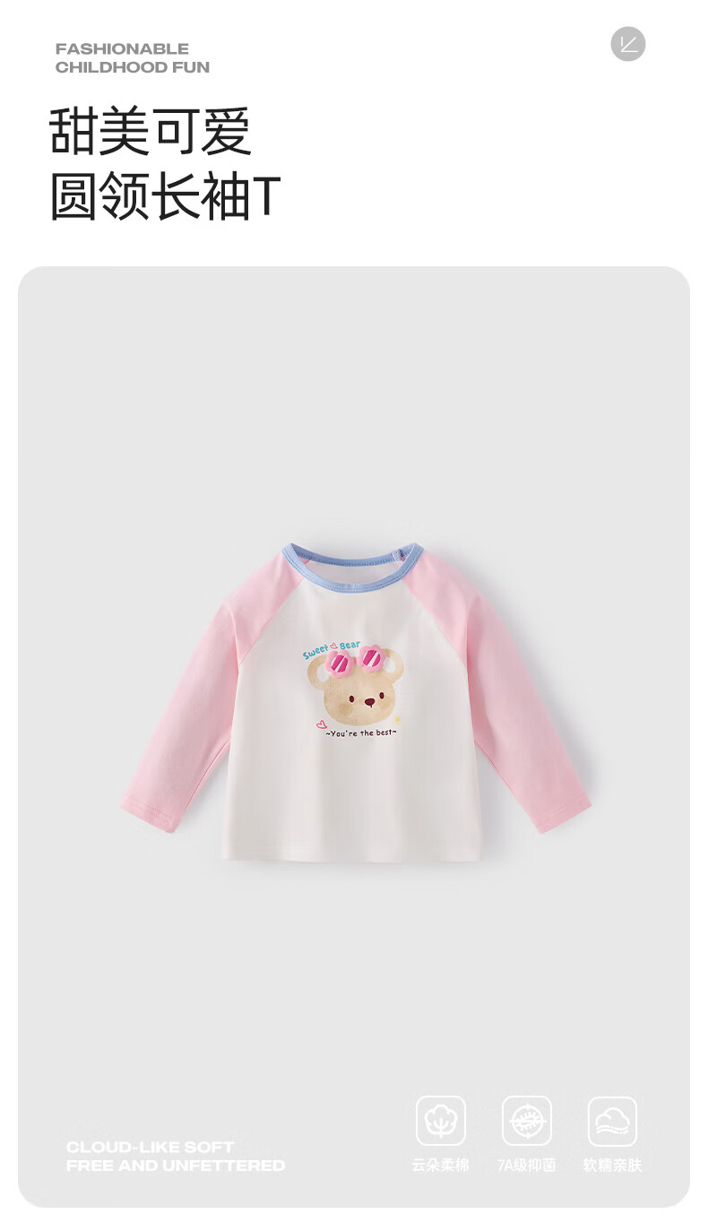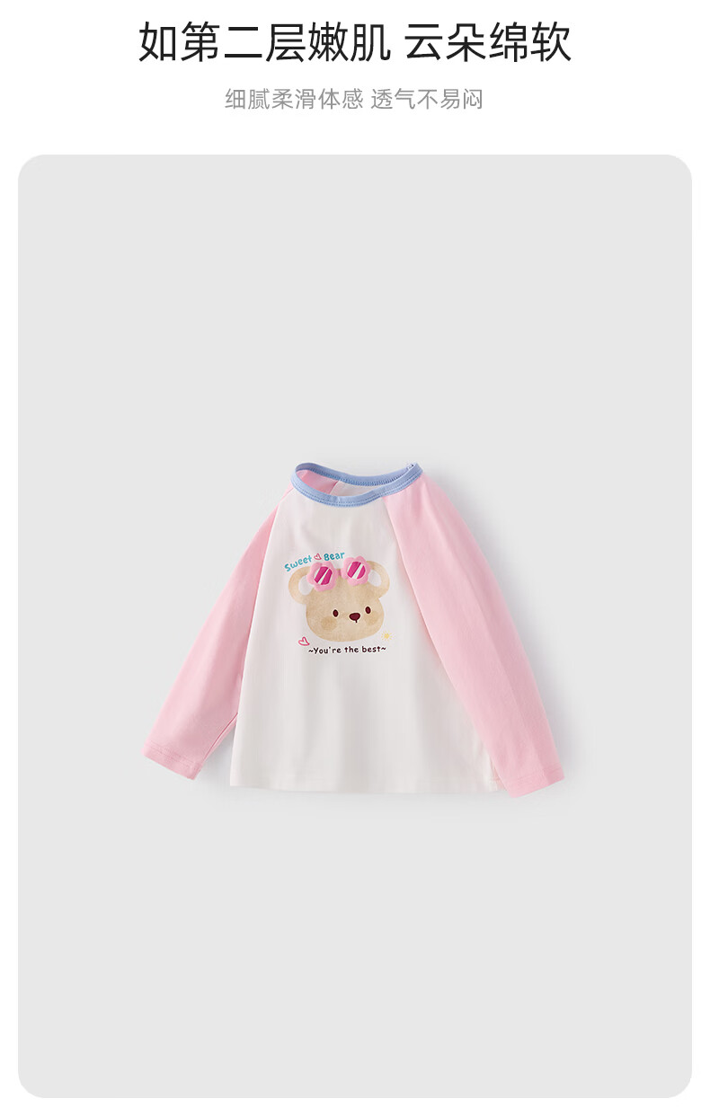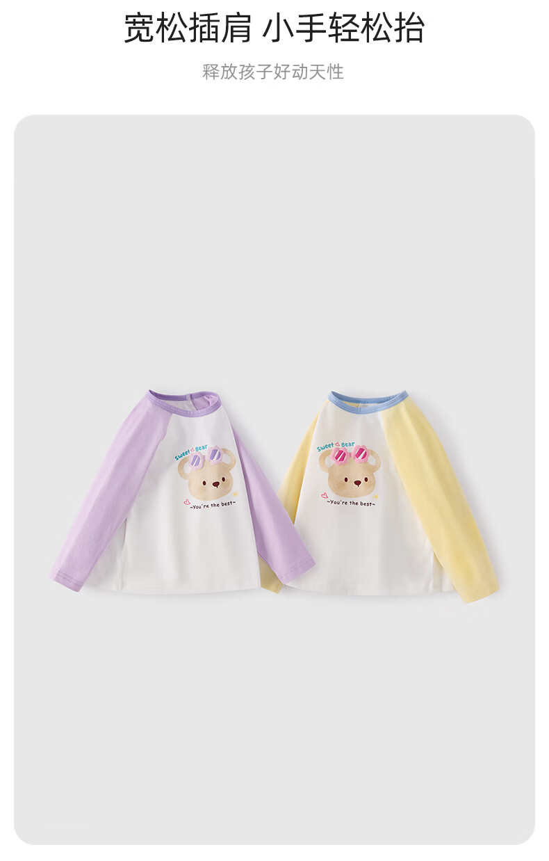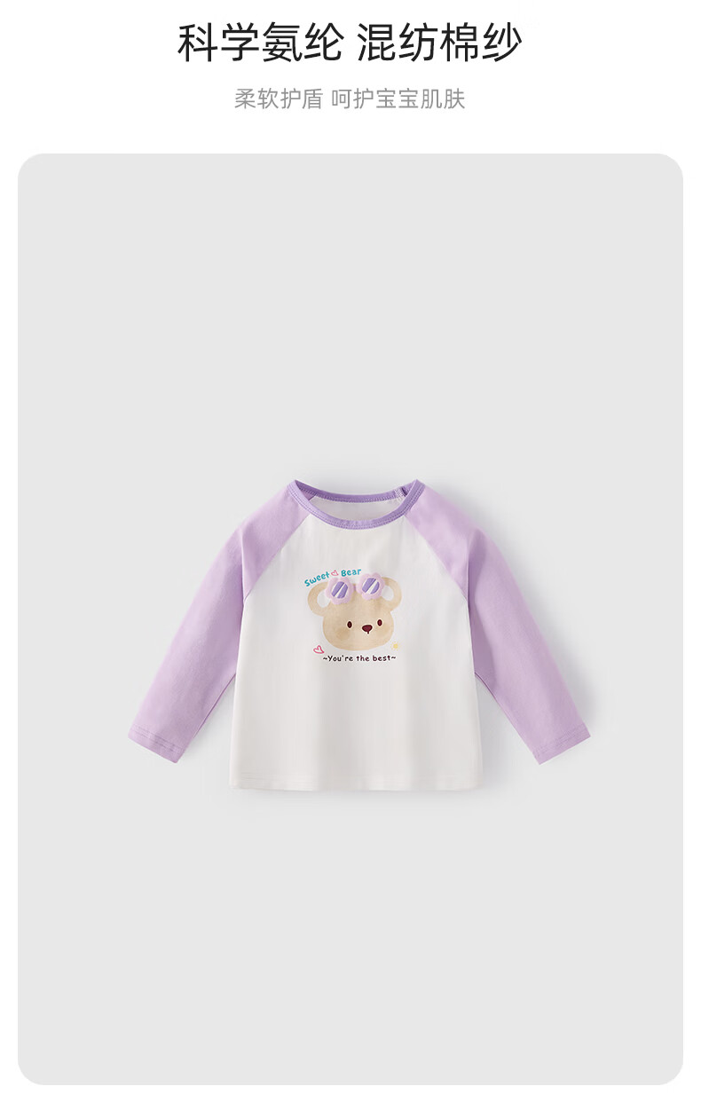 JELLYBABY【萌趣可爱熊熊撞色打底衫】26新品春款女童圆领T恤亲肤中童 紫色 100