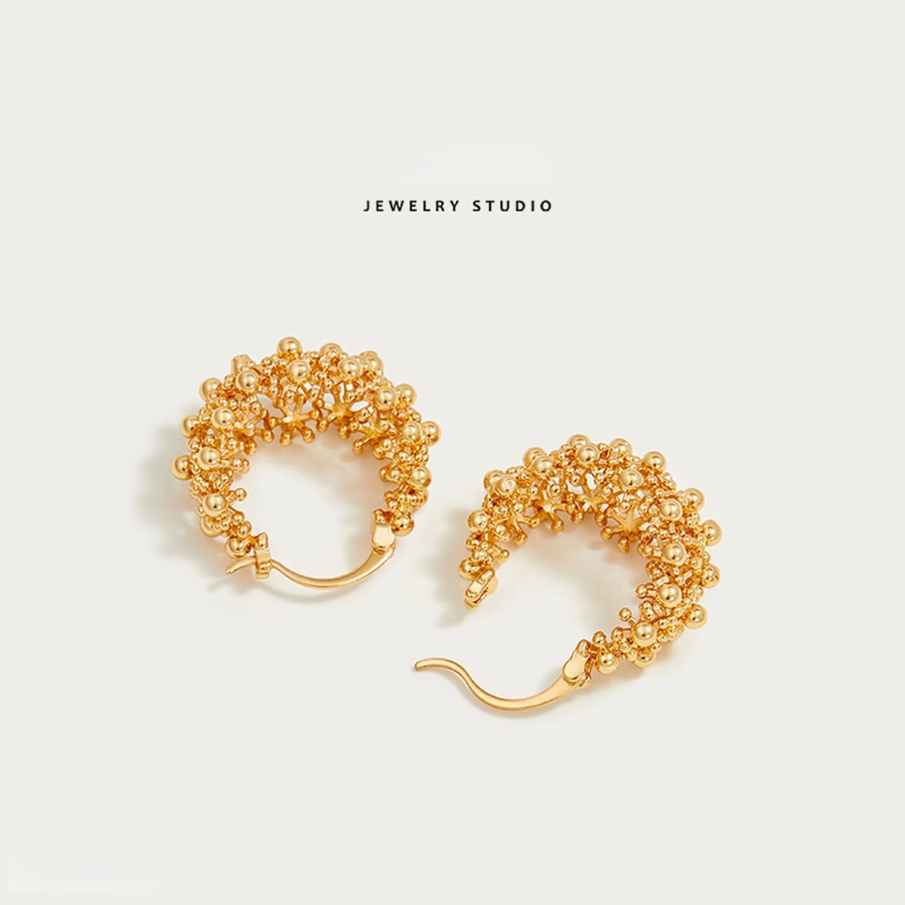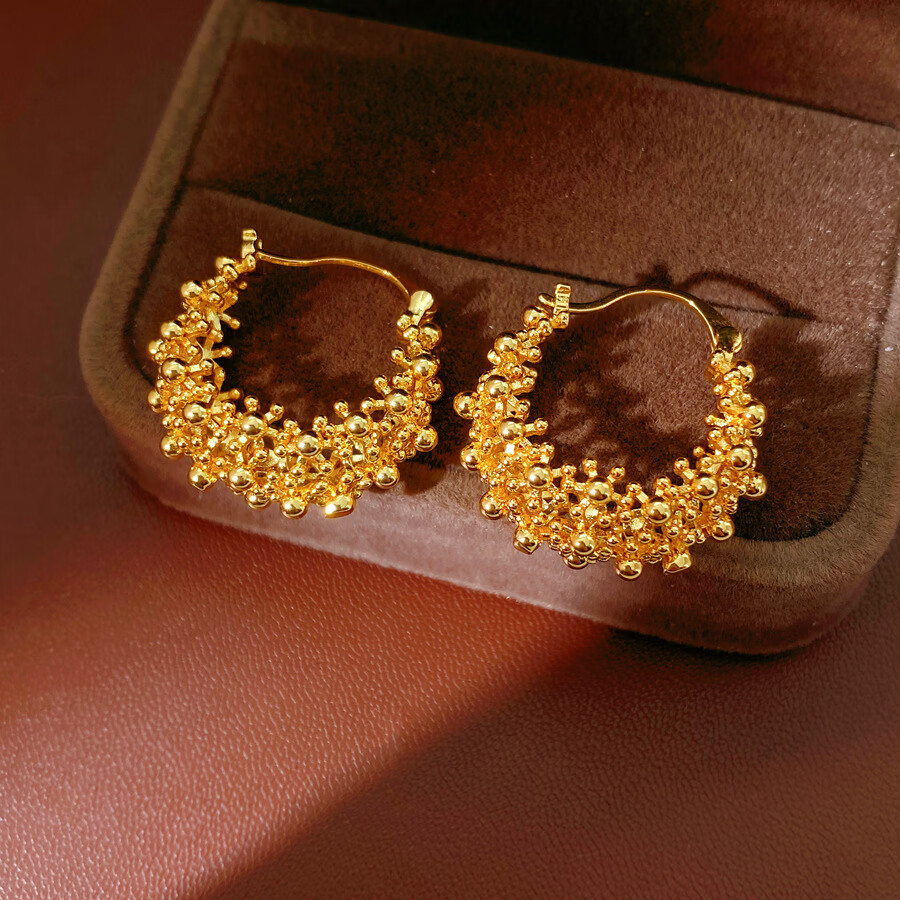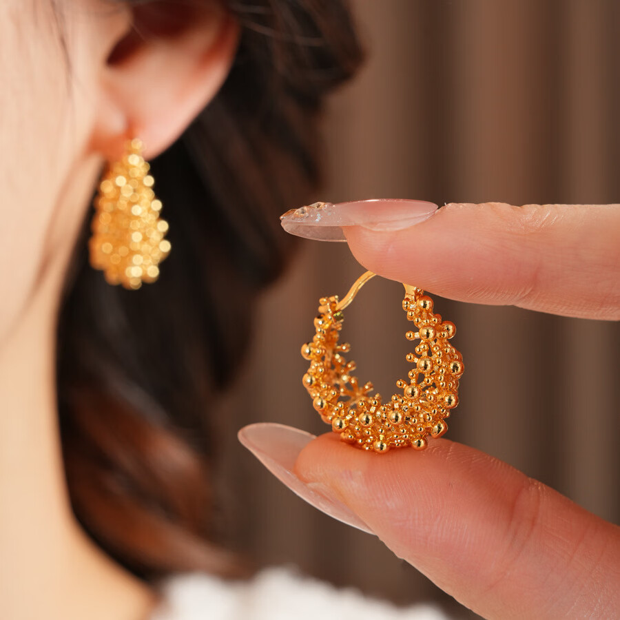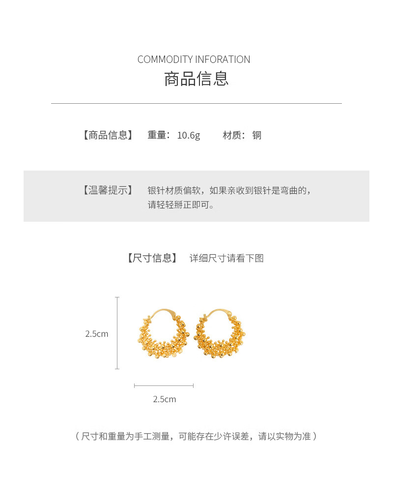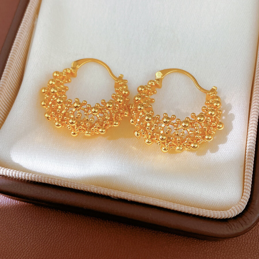 镂空圆形耳扣个性气质耳环轻奢高级感耳饰 气质金色