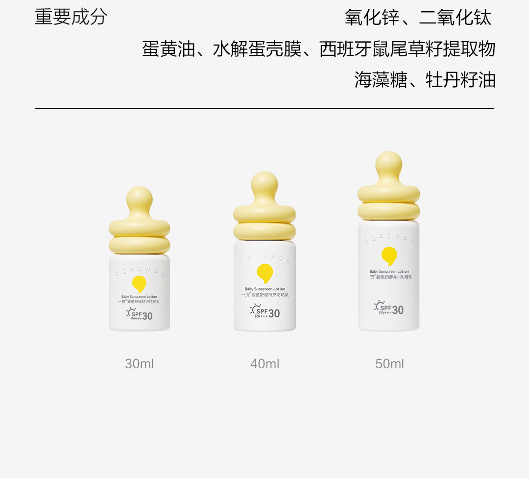 一页newpage儿童防晒乳宝宝户外物理防晒霜30mlSPF30 PA+++ 防紫外线 防晒乳30ml