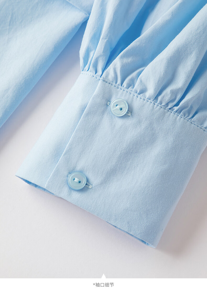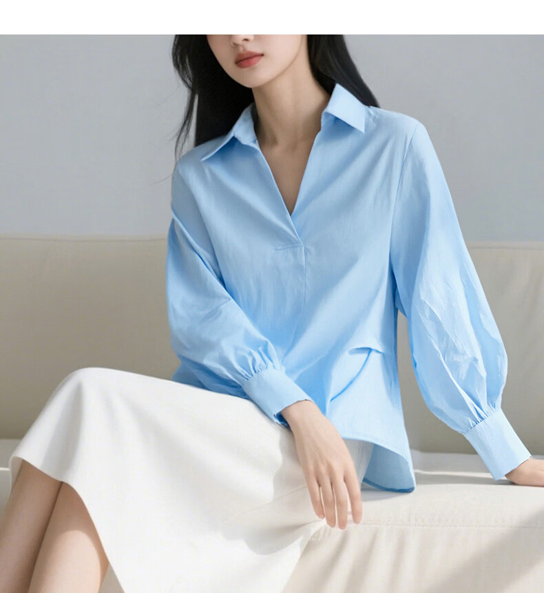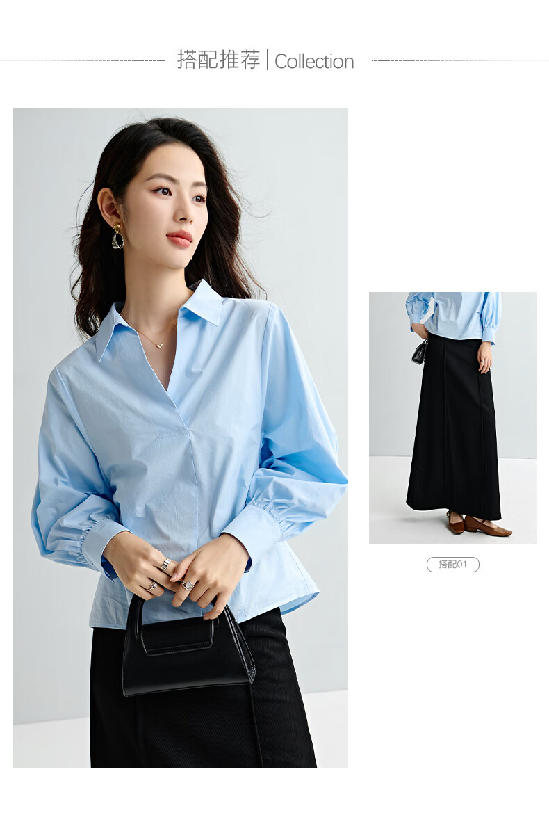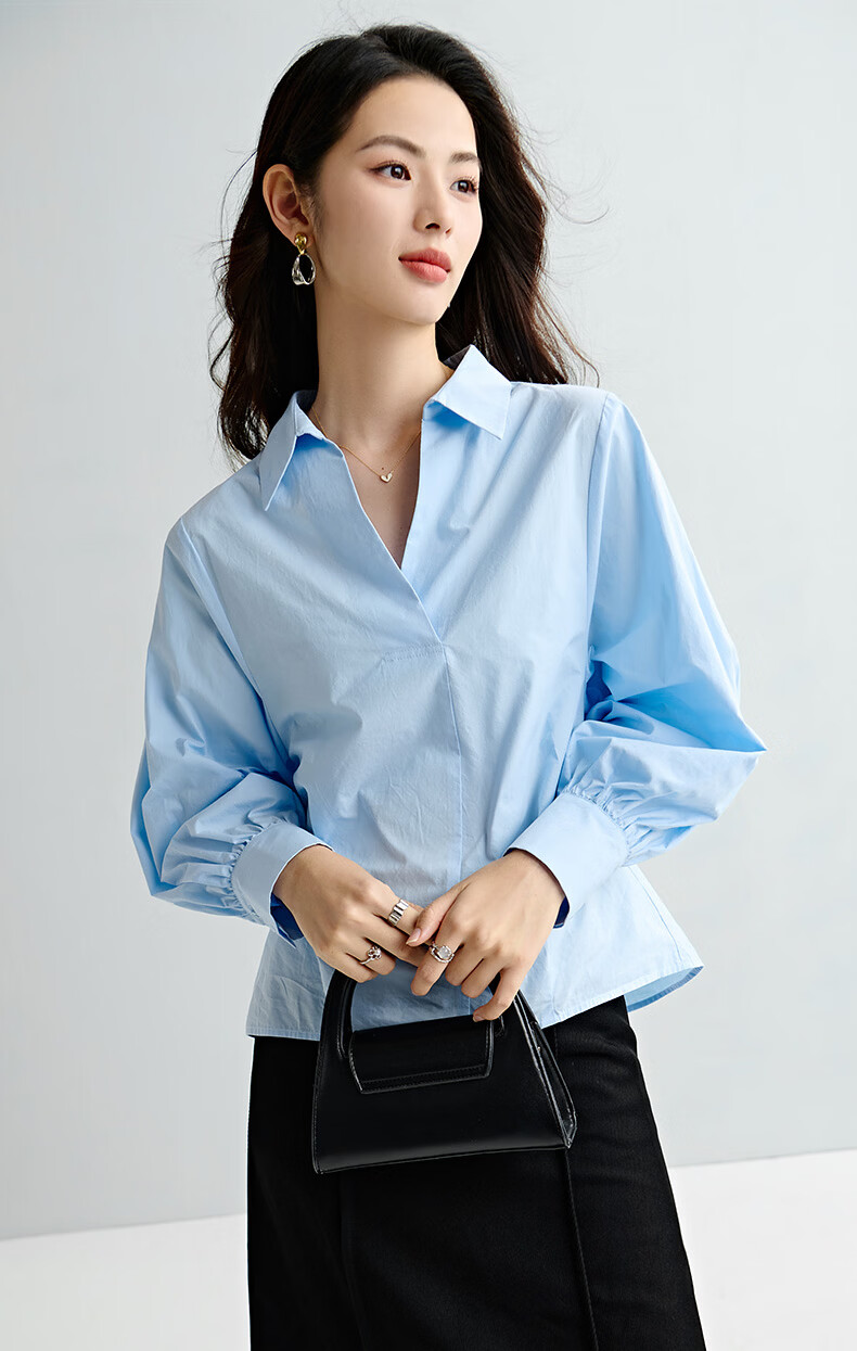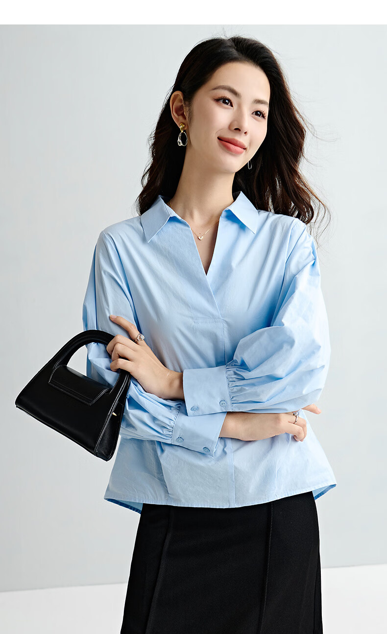 晚白2026年春款法式经典时尚V领全棉上衣干练气质大码百搭衬衫女 天蓝色 M