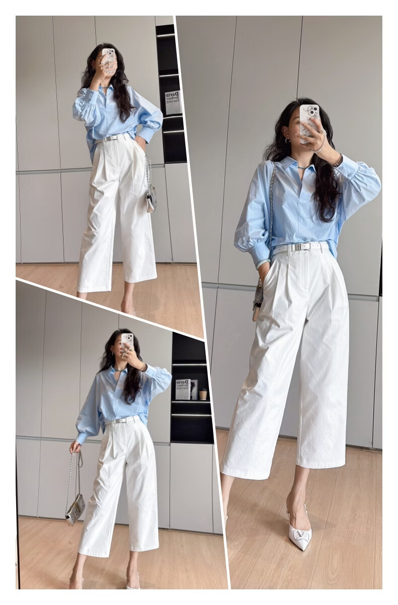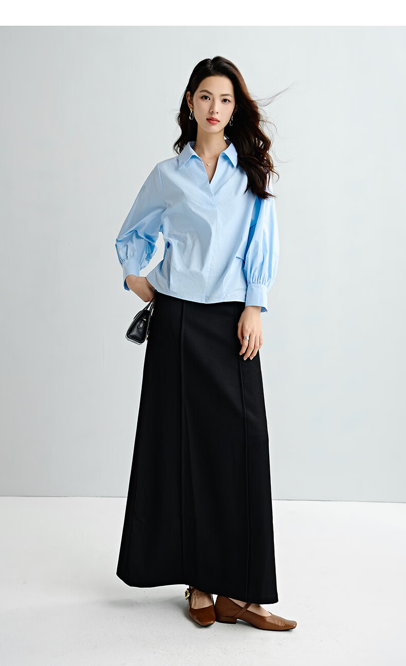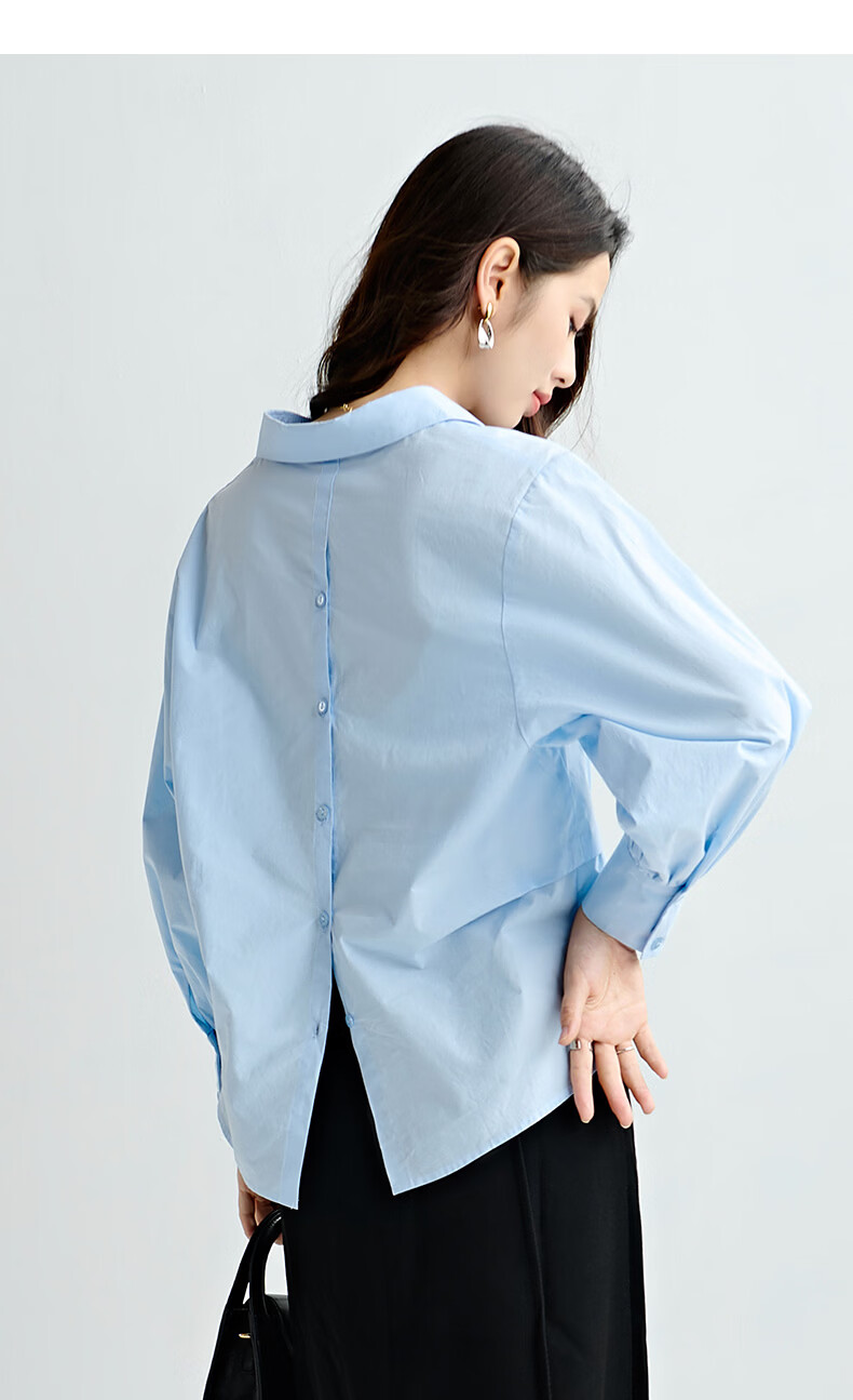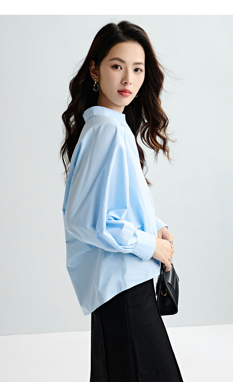 晚白2026年春款法式经典时尚V领全棉上衣干练气质大码百搭衬衫女 天蓝色 M