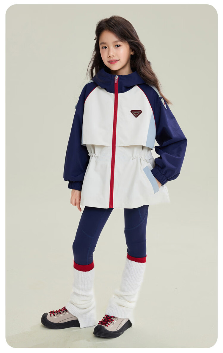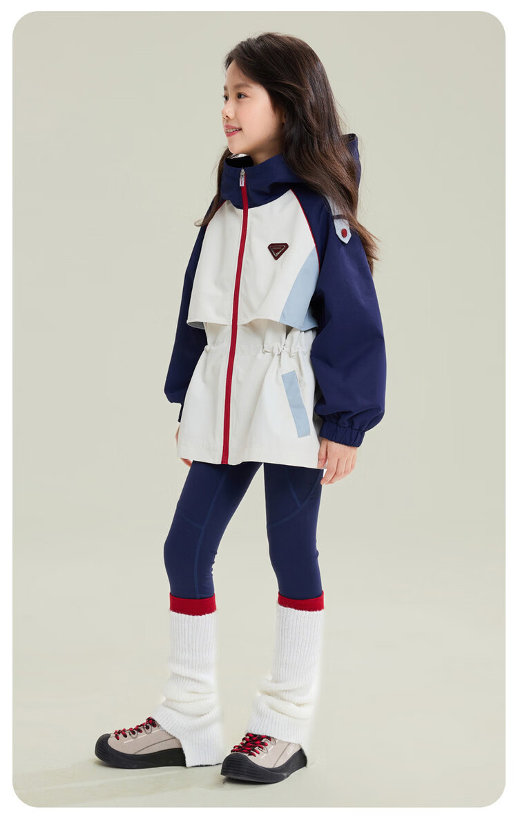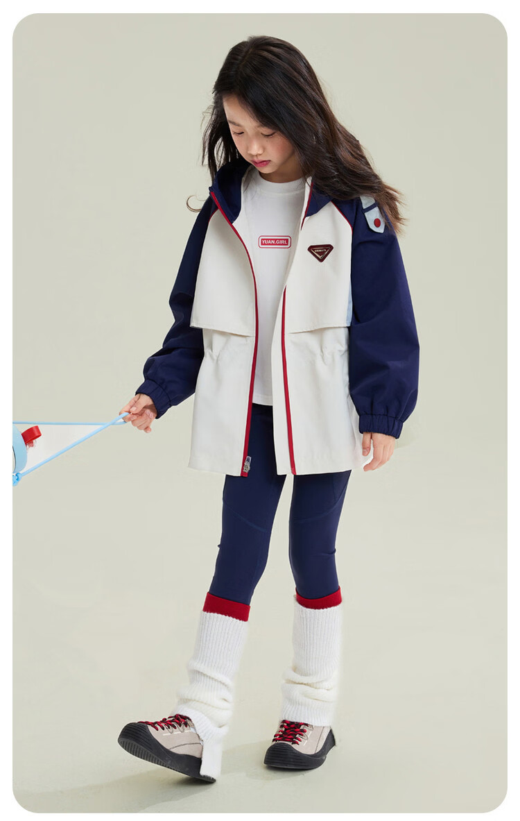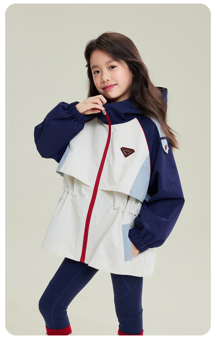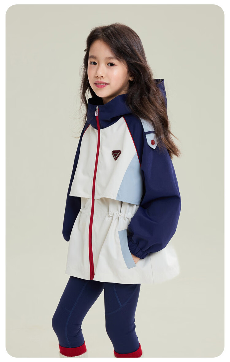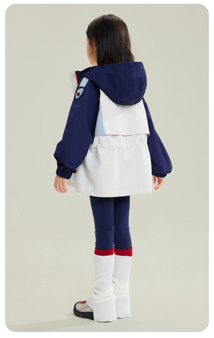 媛媛公主儿童外套25秋冬新装女童夹棉连帽风衣中大童防风软壳户外运动服 藏青色(夹棉加厚款) 110