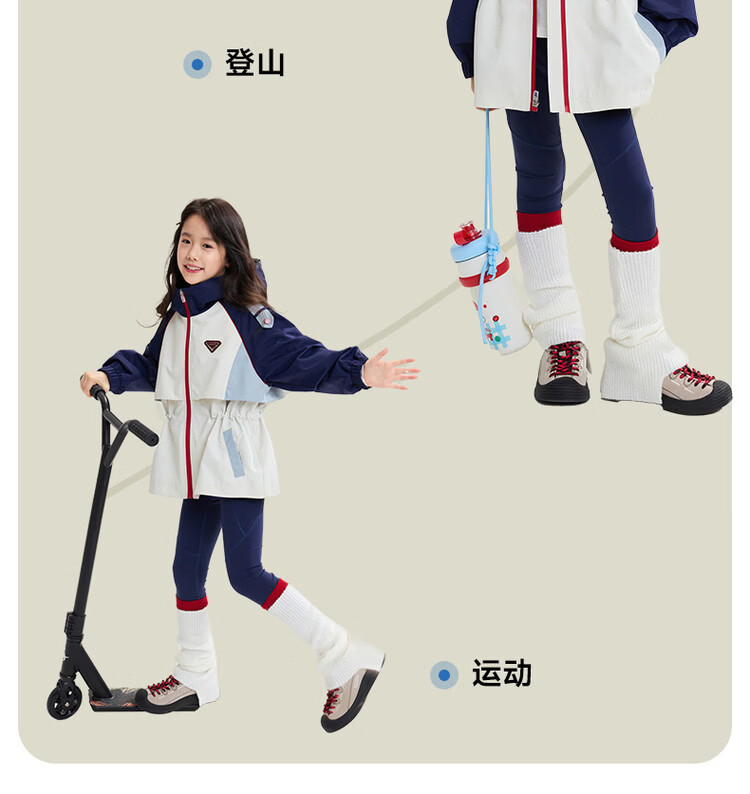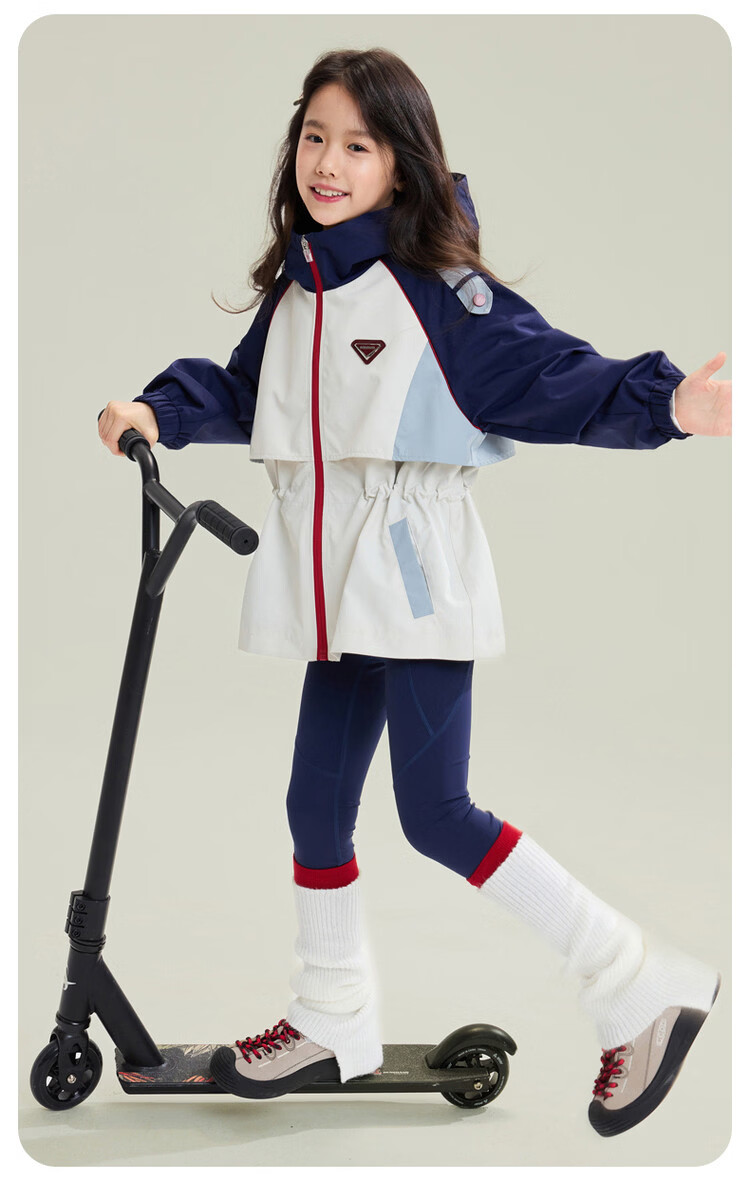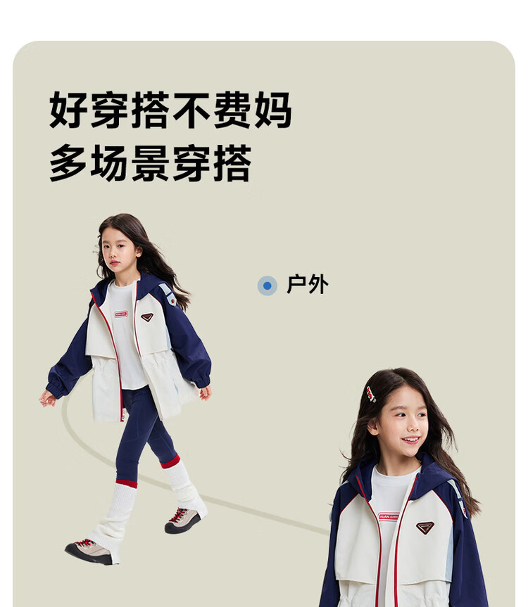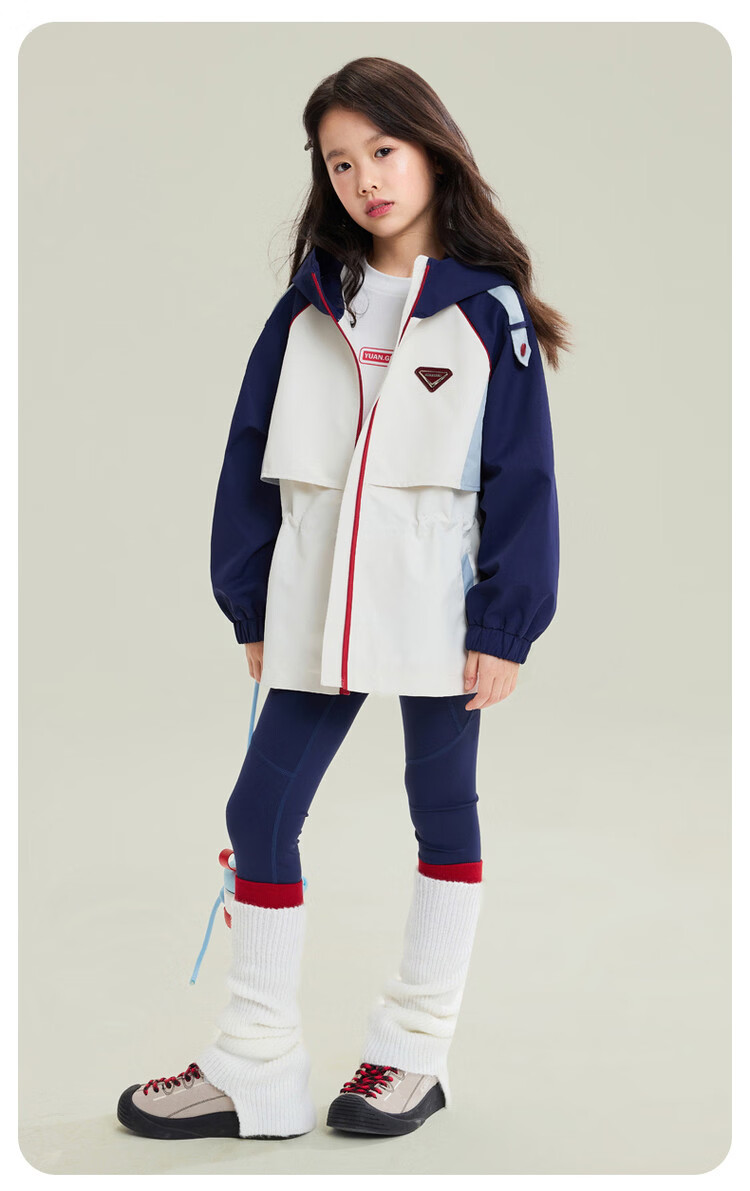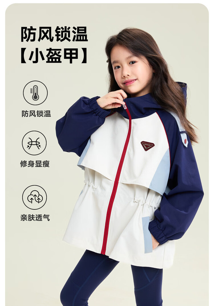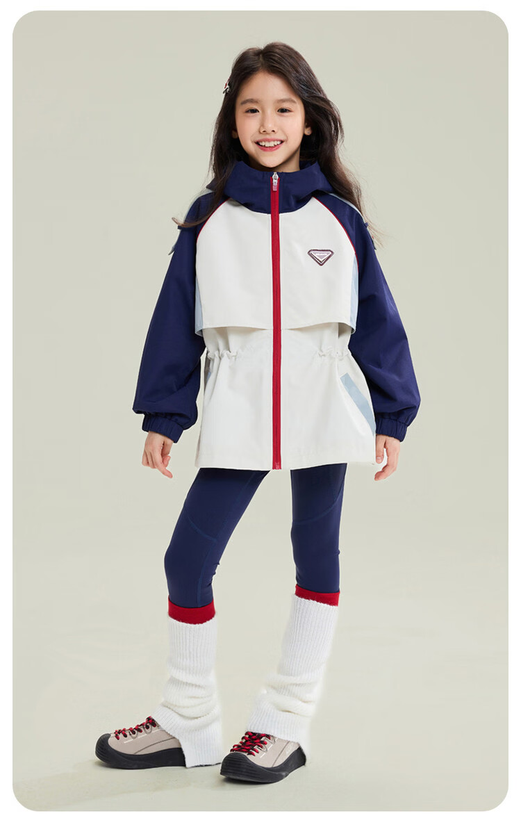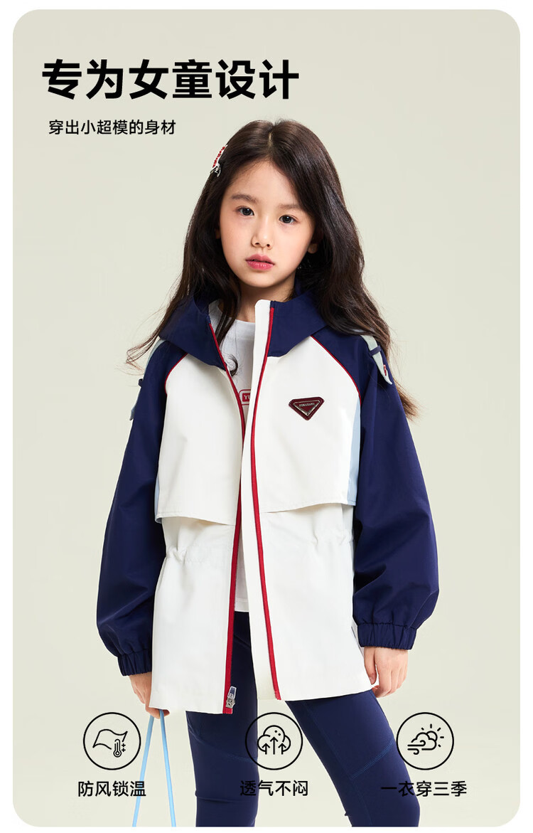 媛媛公主儿童外套25秋冬新装女童夹棉连帽风衣中大童防风软壳户外运动服 藏青色(夹棉加厚款) 110