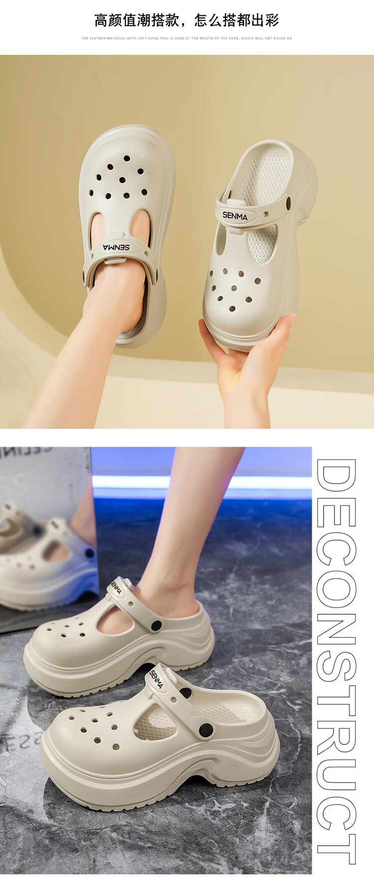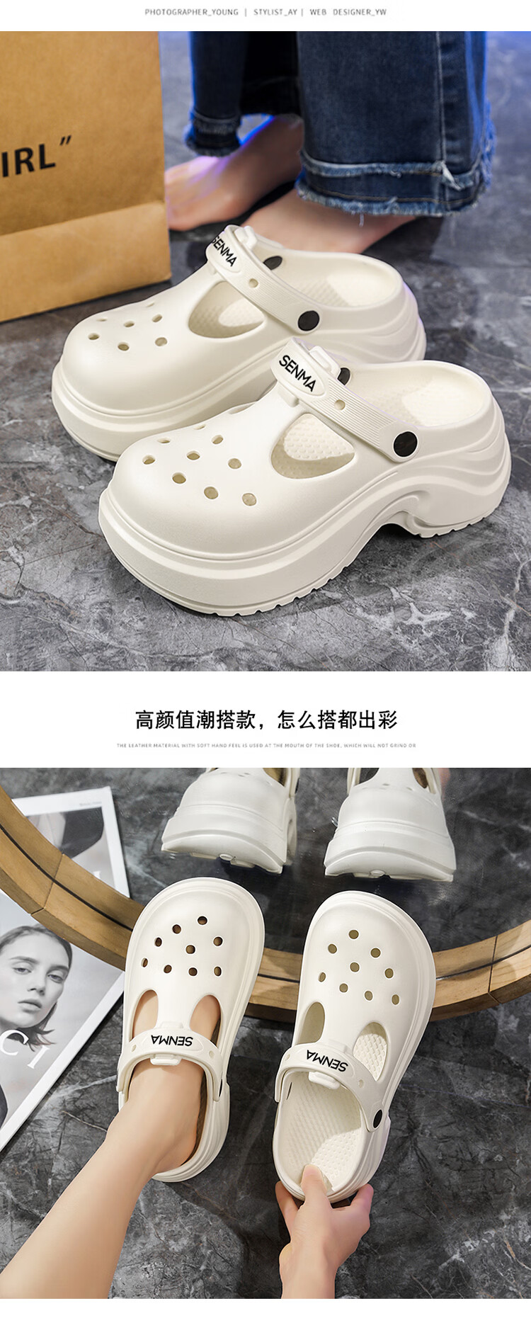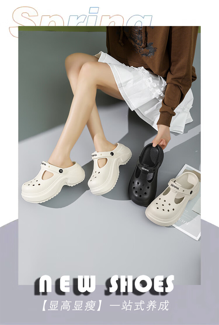 森馬洞洞鞋女2026夏季新款外穿防滑软底女生海边两用开车运动沙滩凉鞋 白色【基础款】 35-36 【现货秒发】