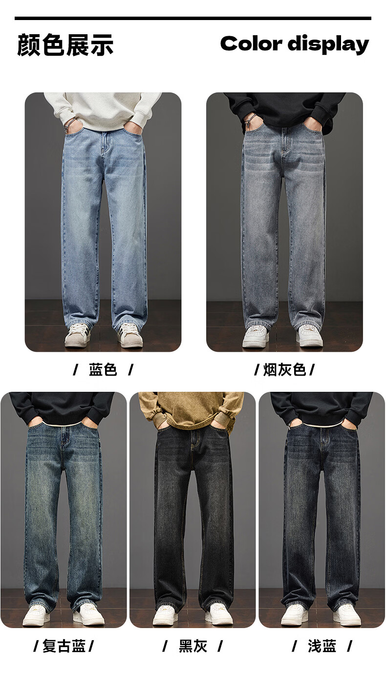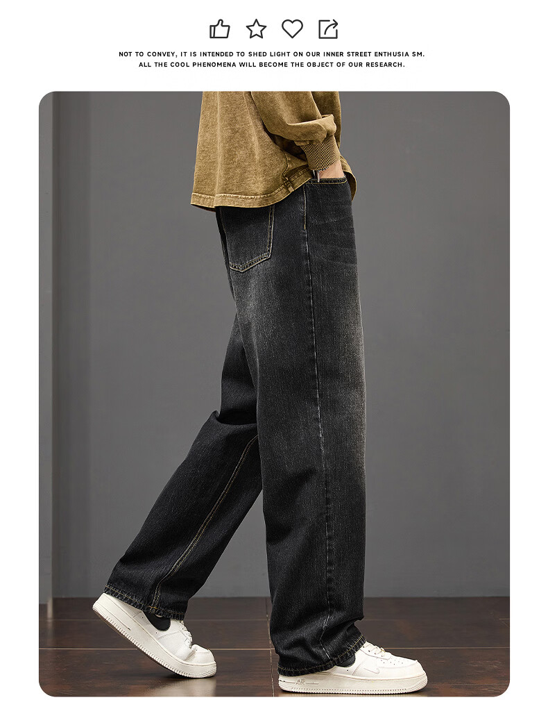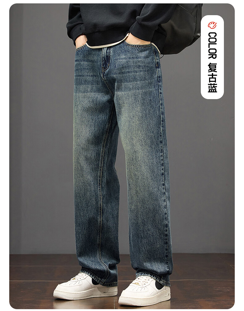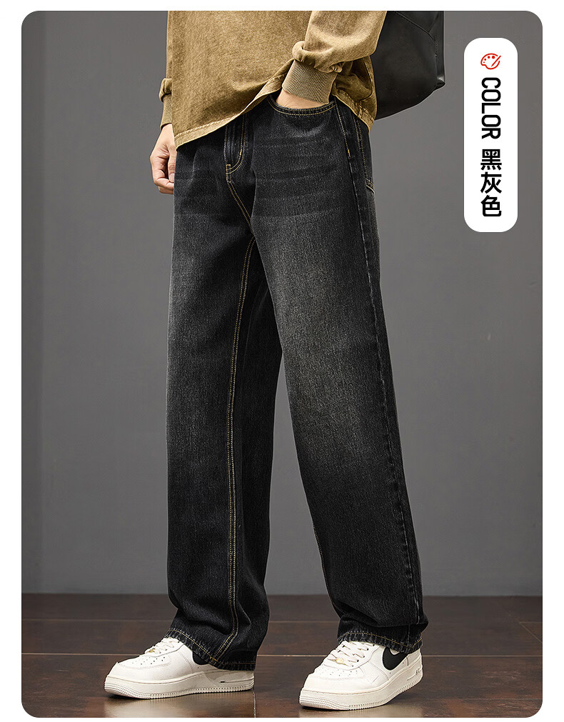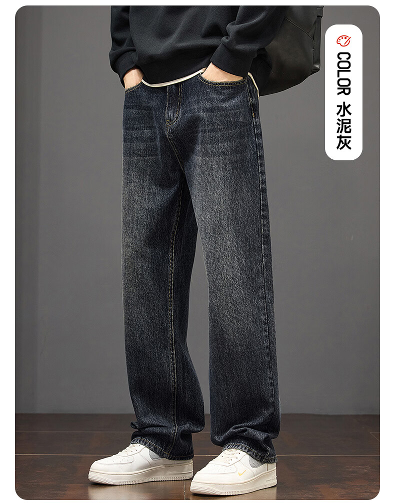 真维斯秋冬新款美式复古牛仔裤男潮流加绒加厚垂感阔腿休闲直筒裤 水泥灰 28